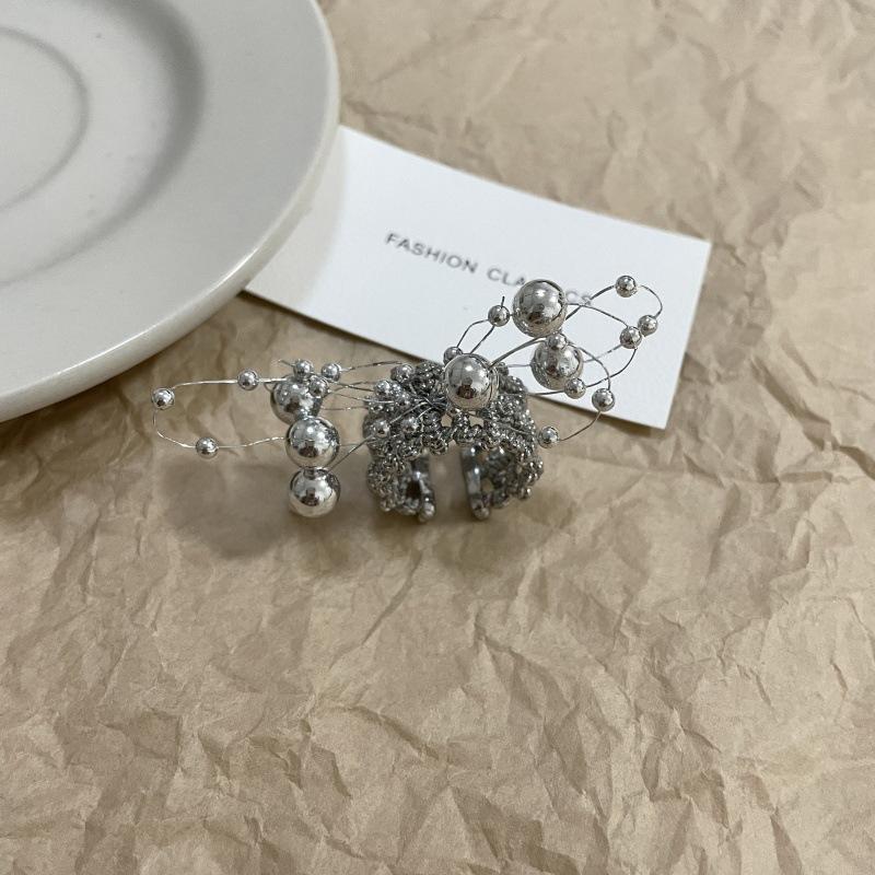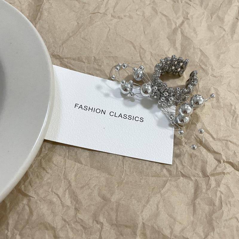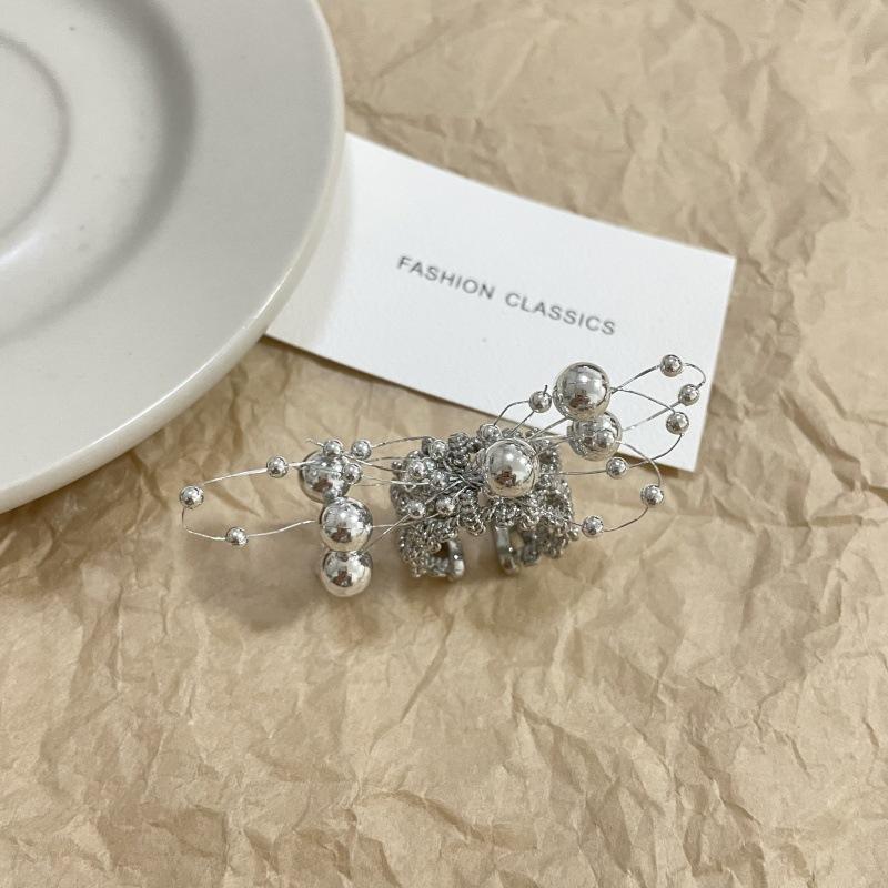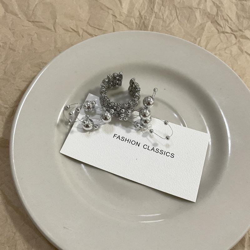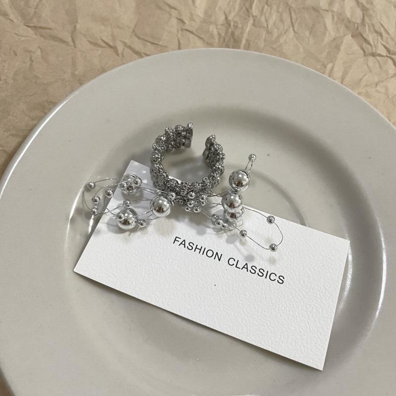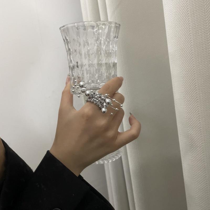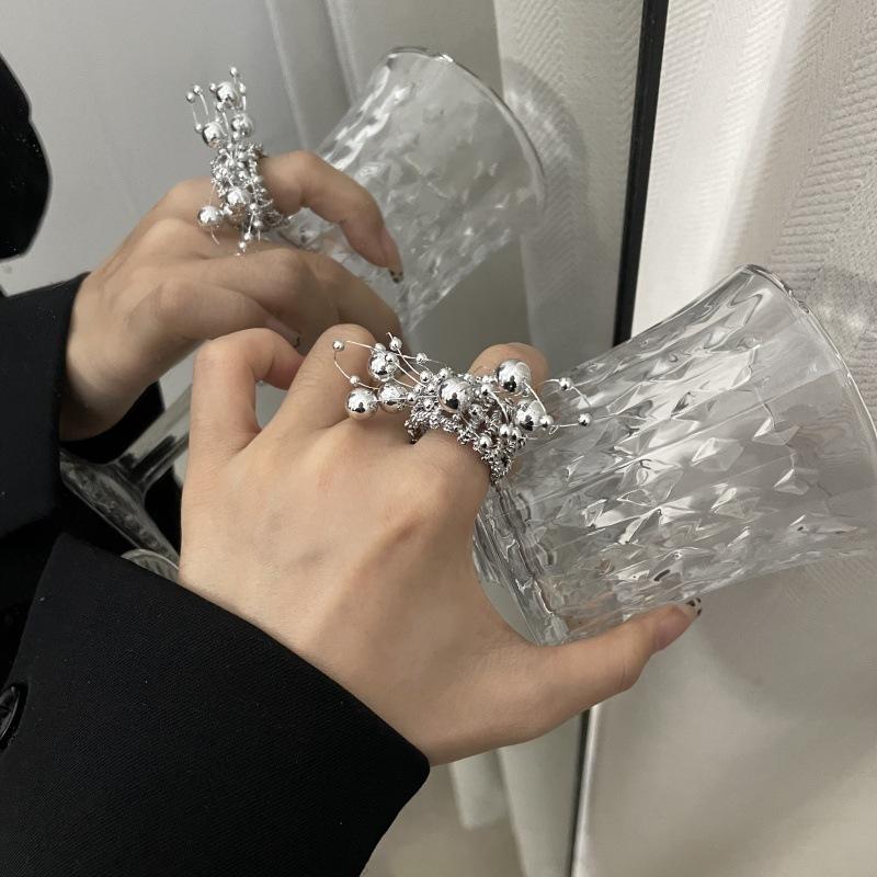 Anillo de Dedo Ajustable para Dieta con Abertura con Cuentas de Metal y Sentido del Diseño Exagerado de Temperamento de Lujo Ligero, Anillo de Dedo Nicho de Temperamento a la Moda