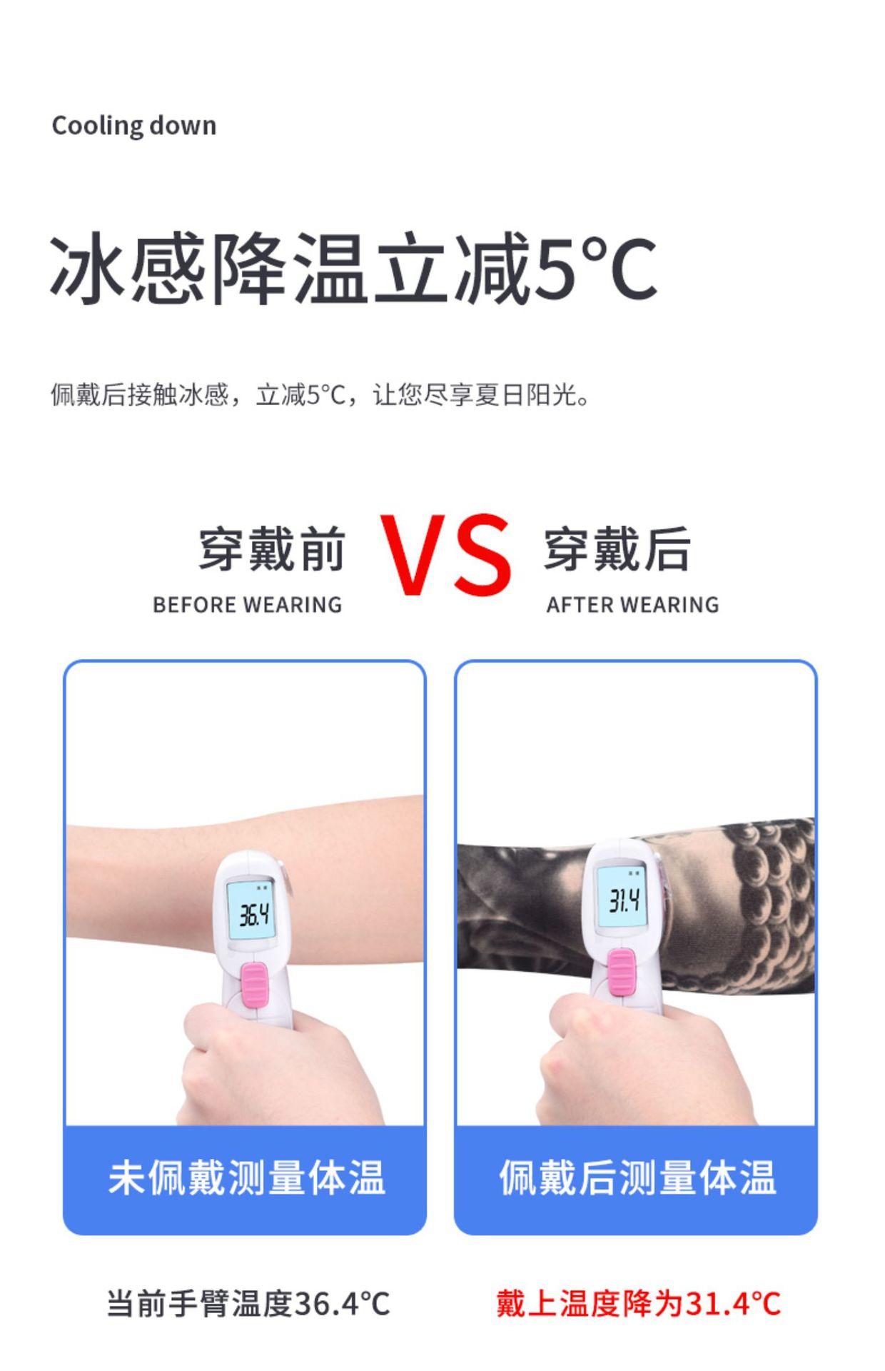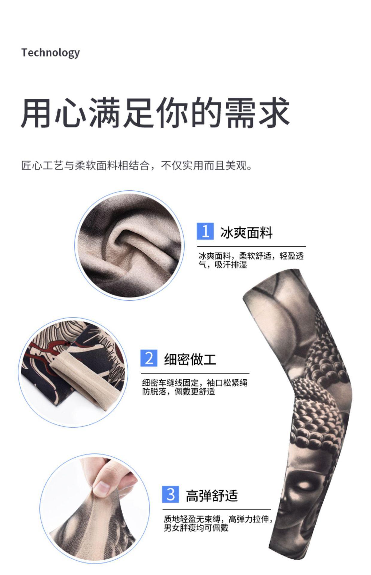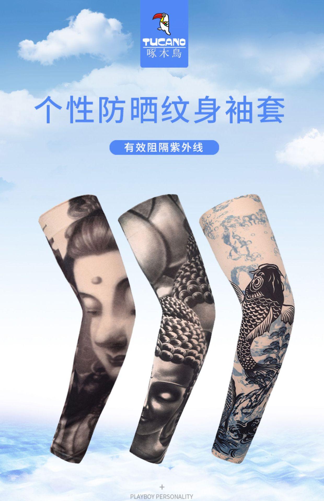 Manga de tatuaje de pájaro carpintero para hombre, protector solar de flores, manga de seda helada, parasol de verano para montar, protector de brazo de hielo