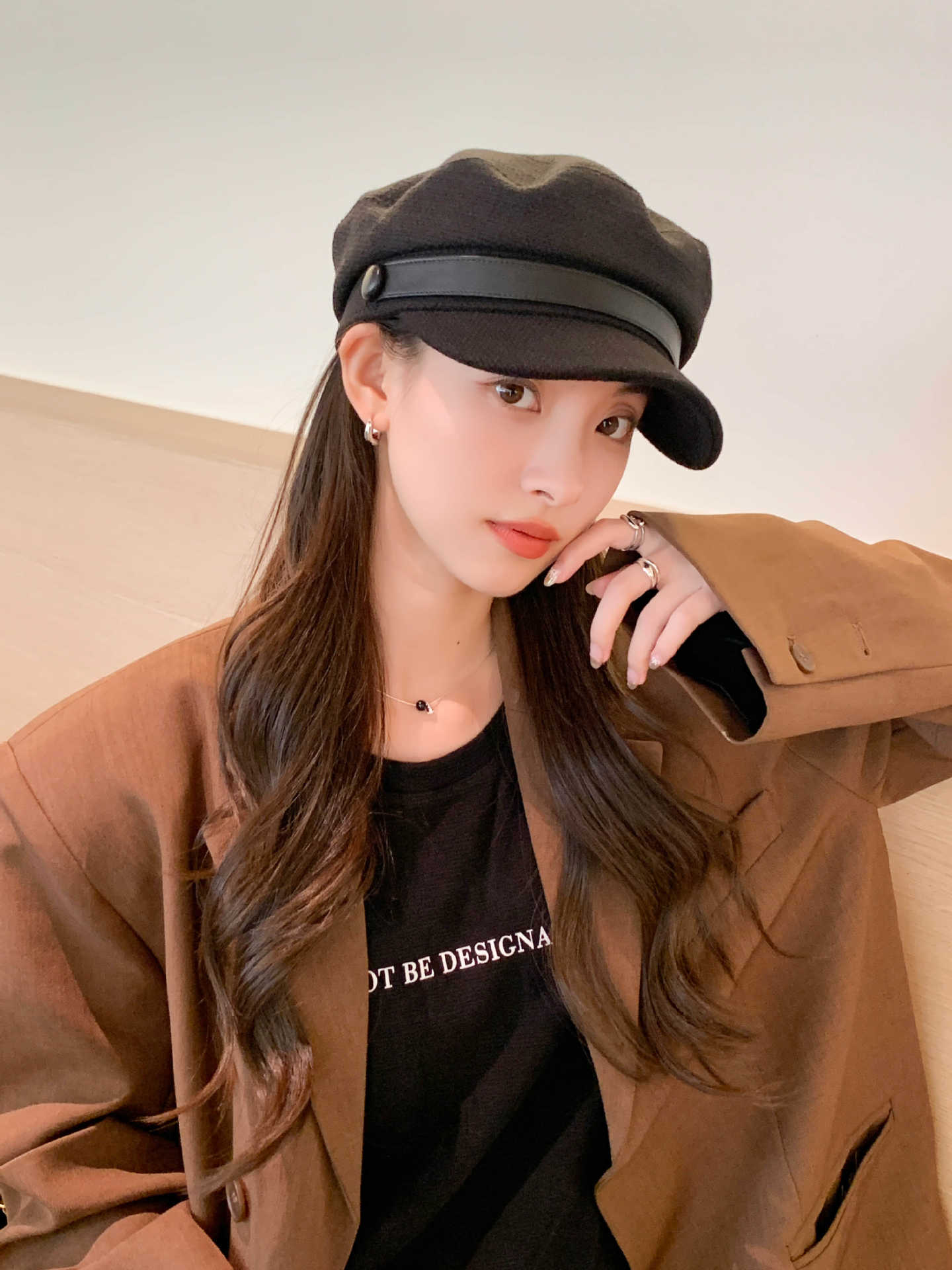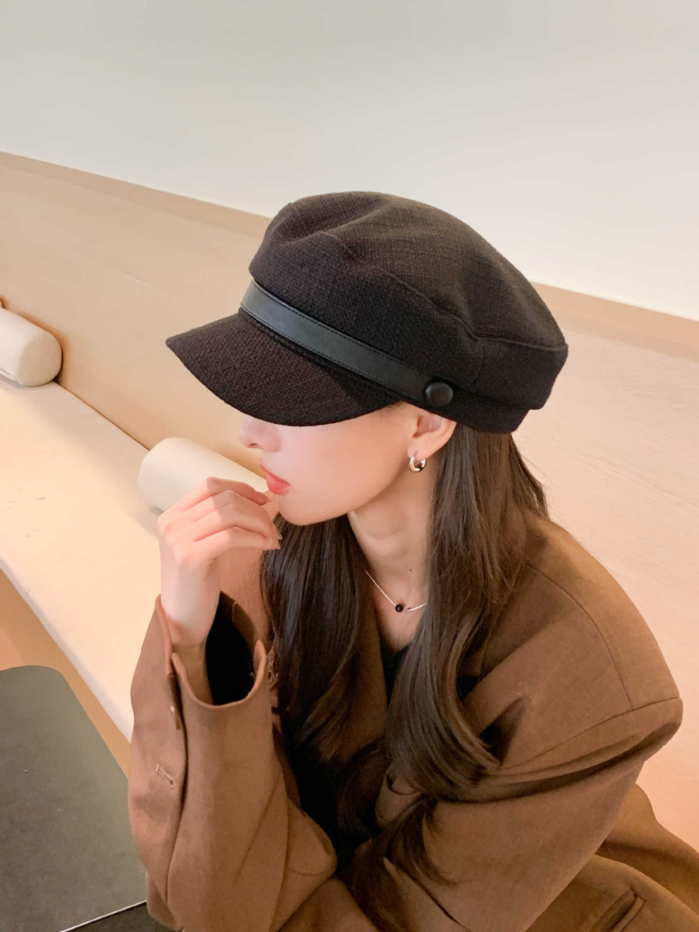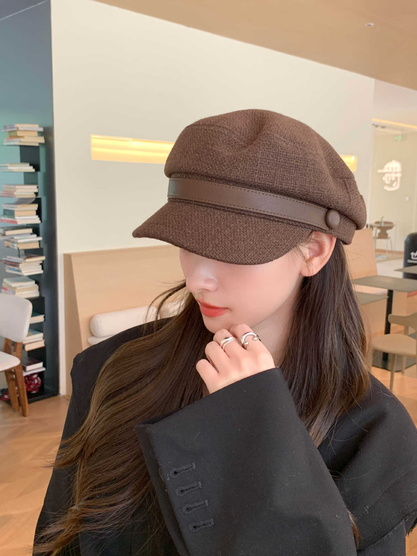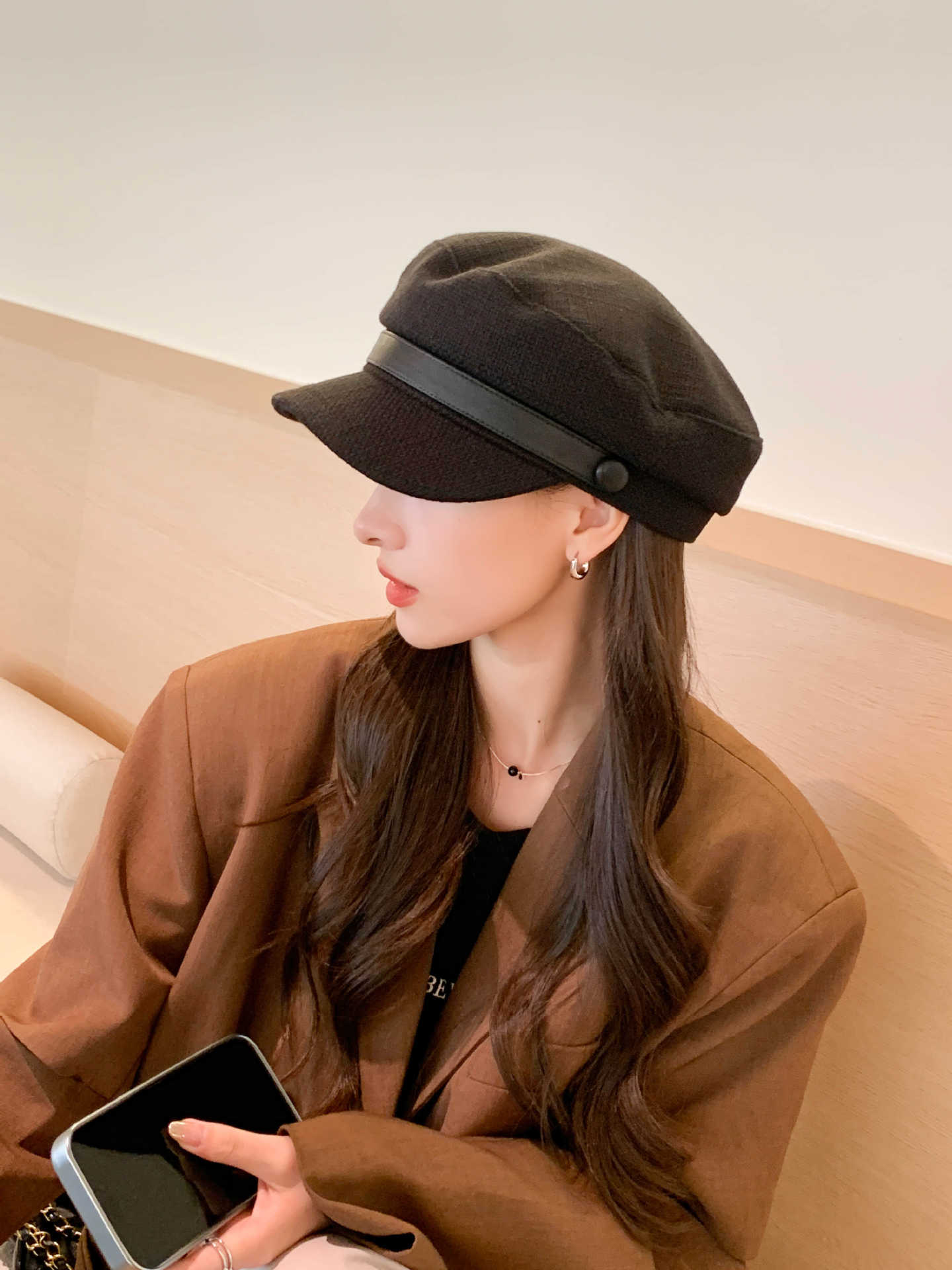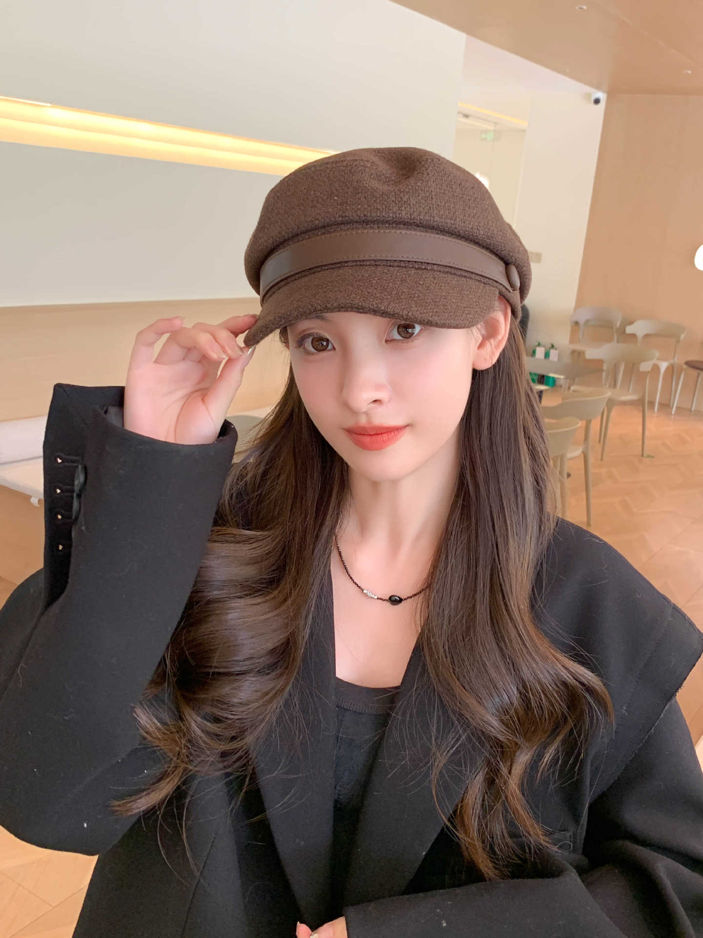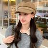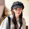 Sombrero Azul Marino para Mujer Otoño e Invierno Combinable Muestra el Rostro Sombrero Octogonal de Lengua de Patito Estilo Coreano Moda de Compras Sombrero de Pintor de Moda
