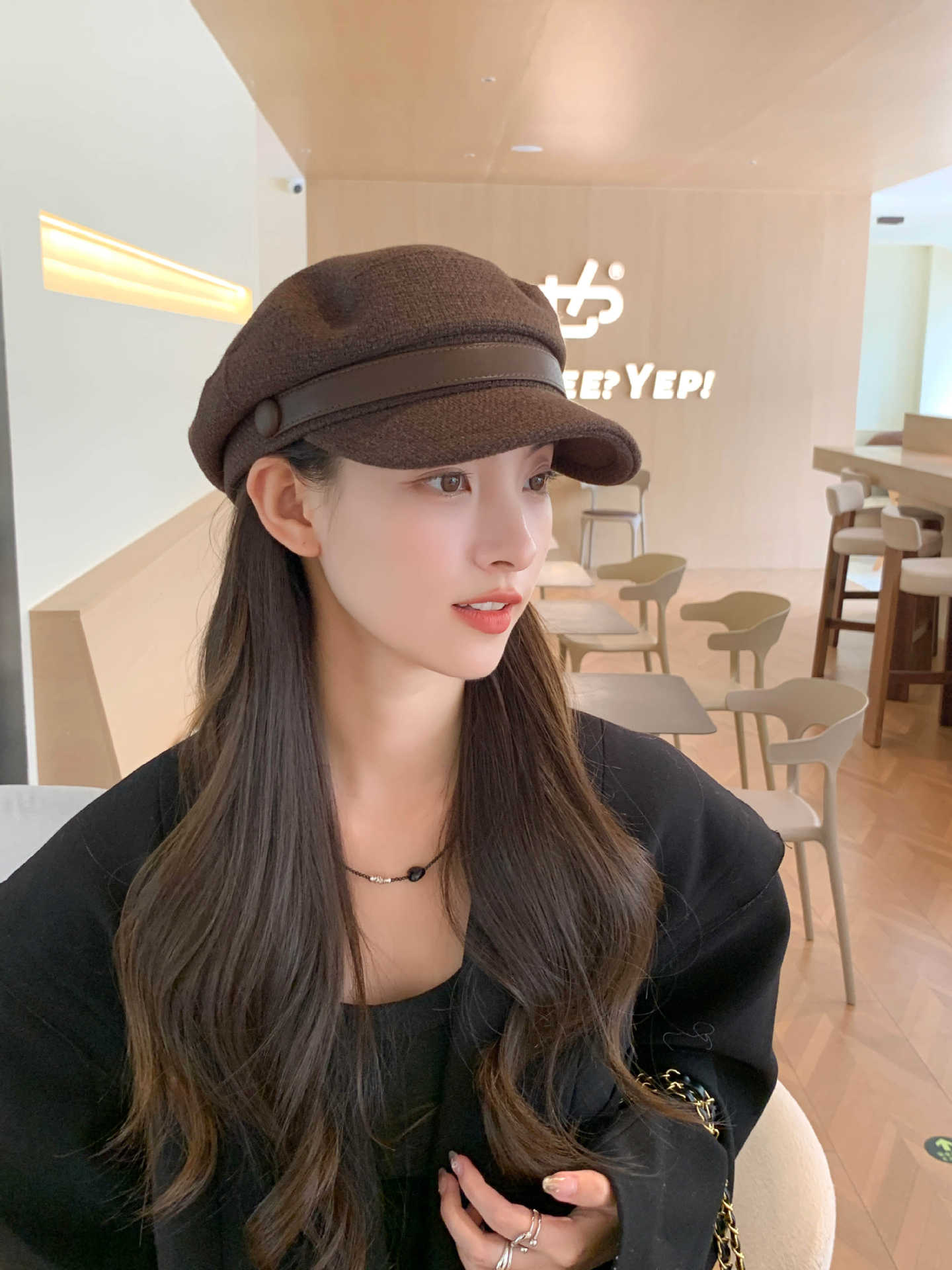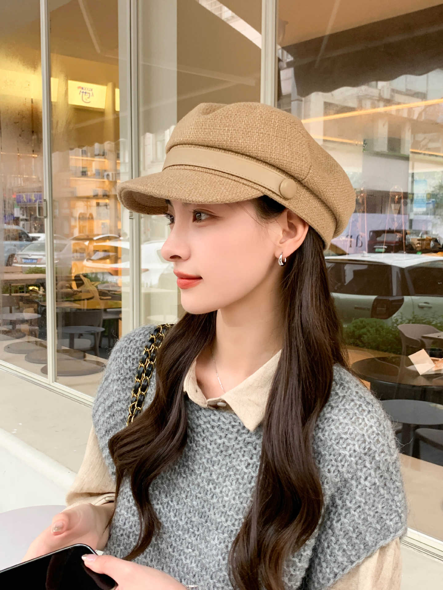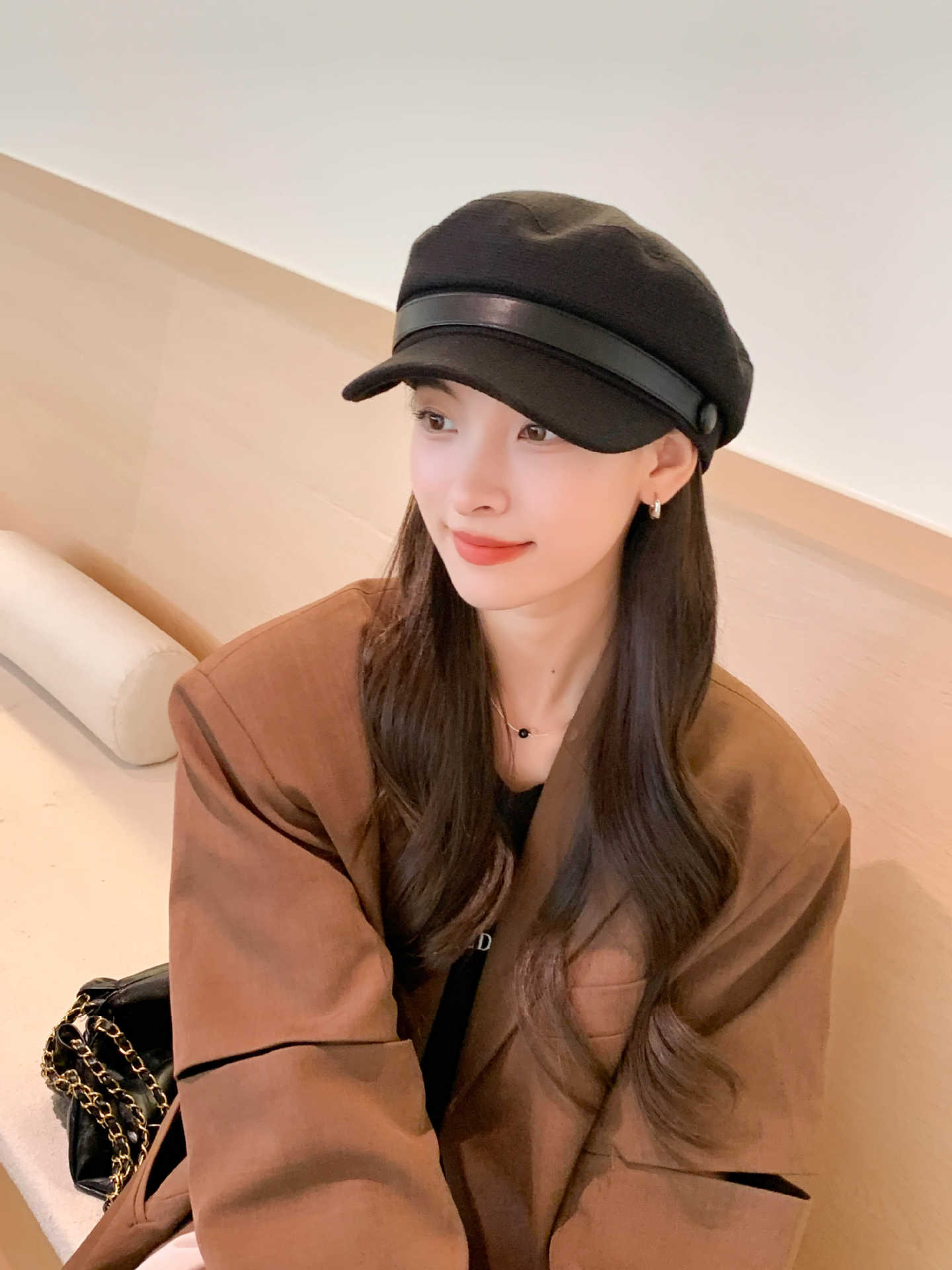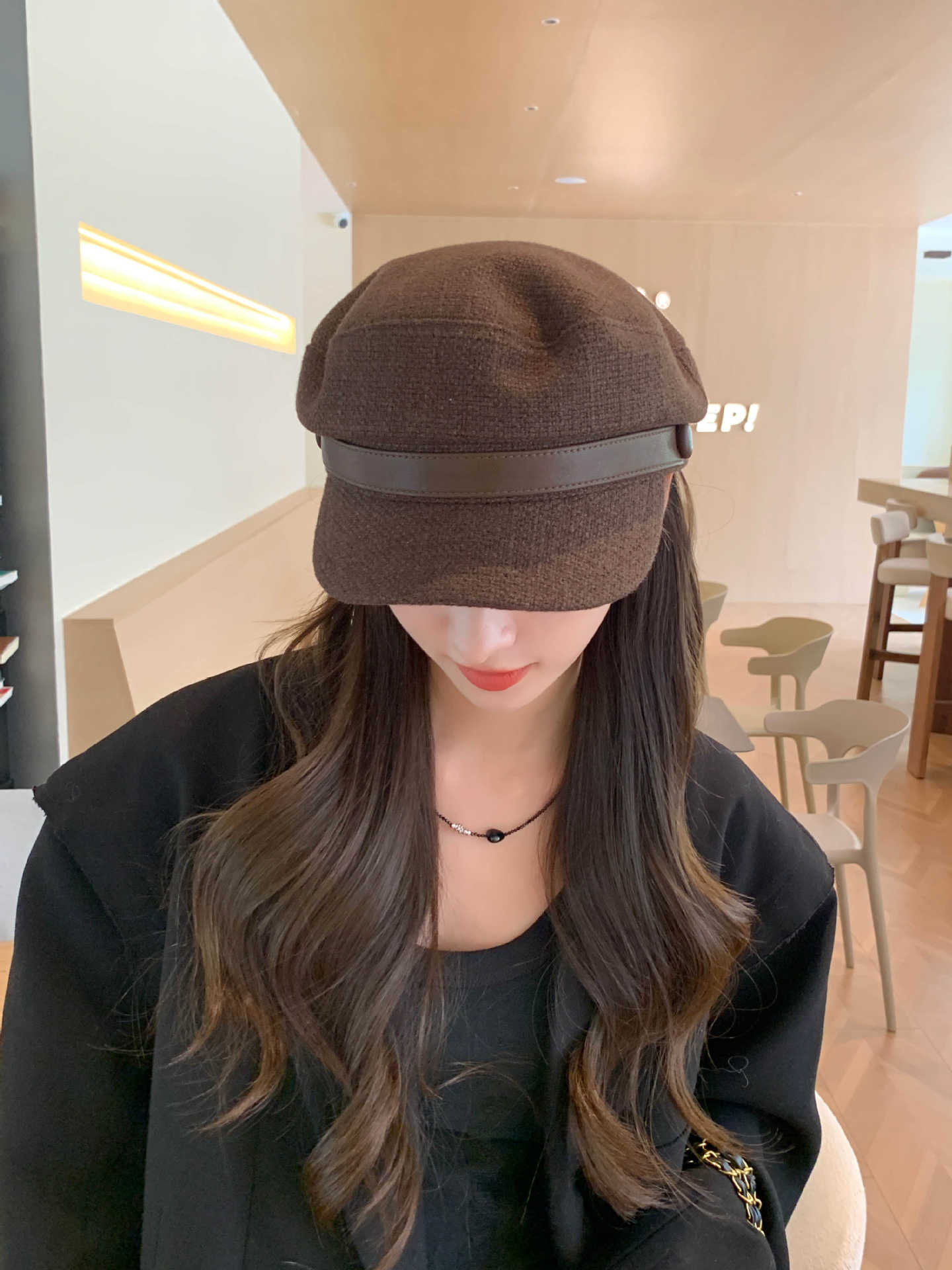Sombrero Azul Marino para Mujer Otoño e Invierno Combinable Muestra el Rostro Sombrero Octogonal de Lengua de Patito Estilo Coreano Moda de Compras Sombrero de Pintor de Moda