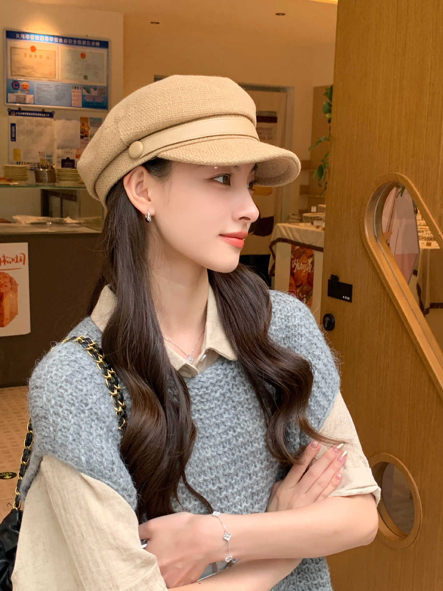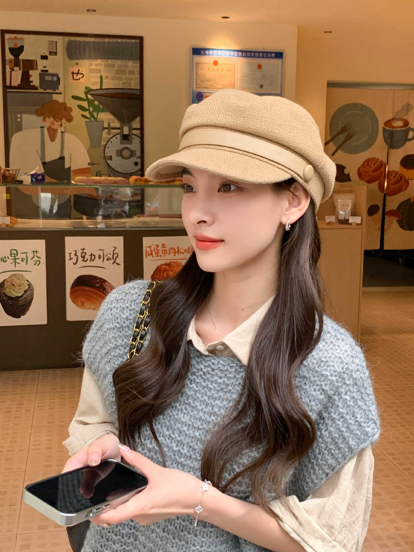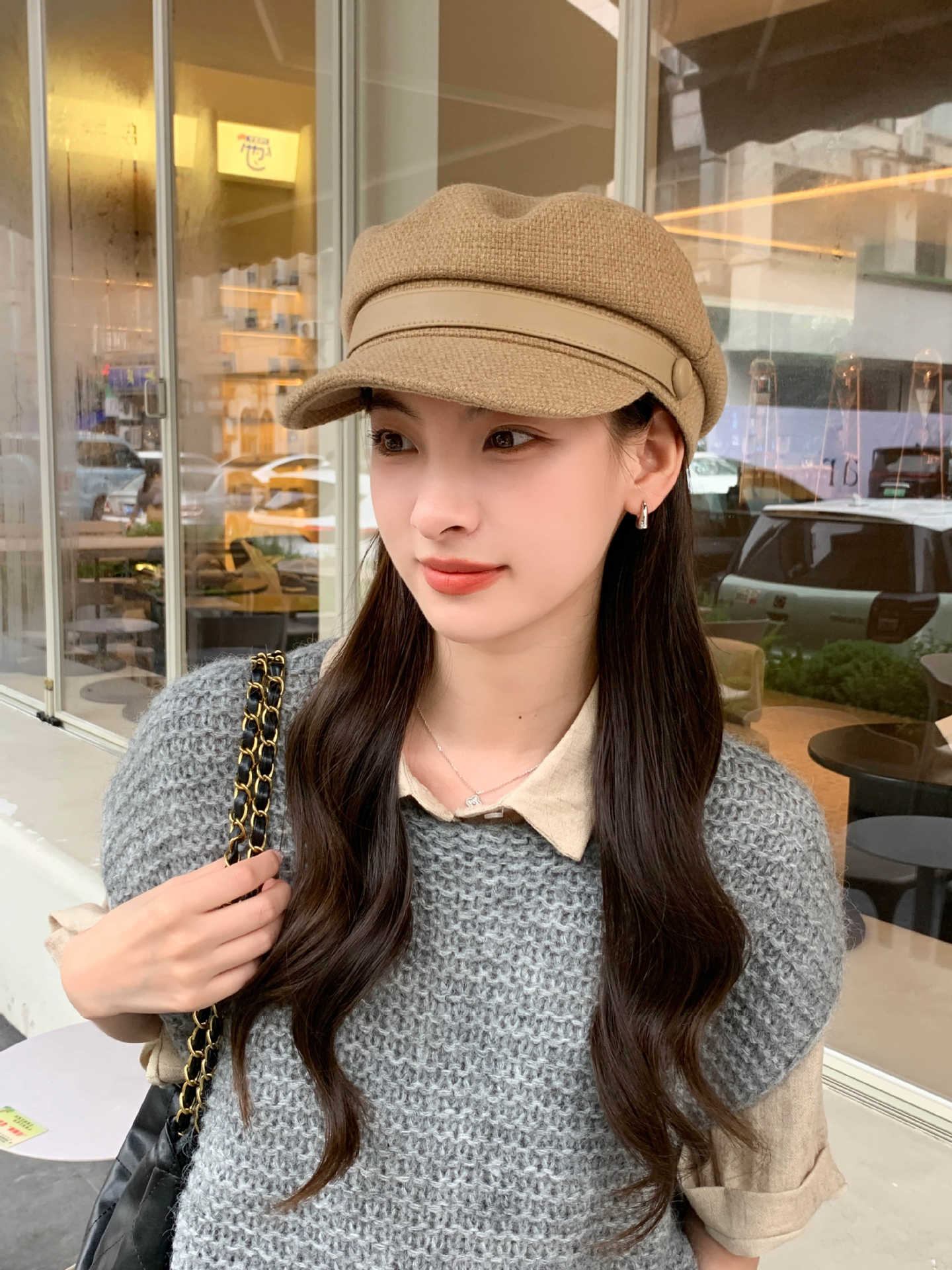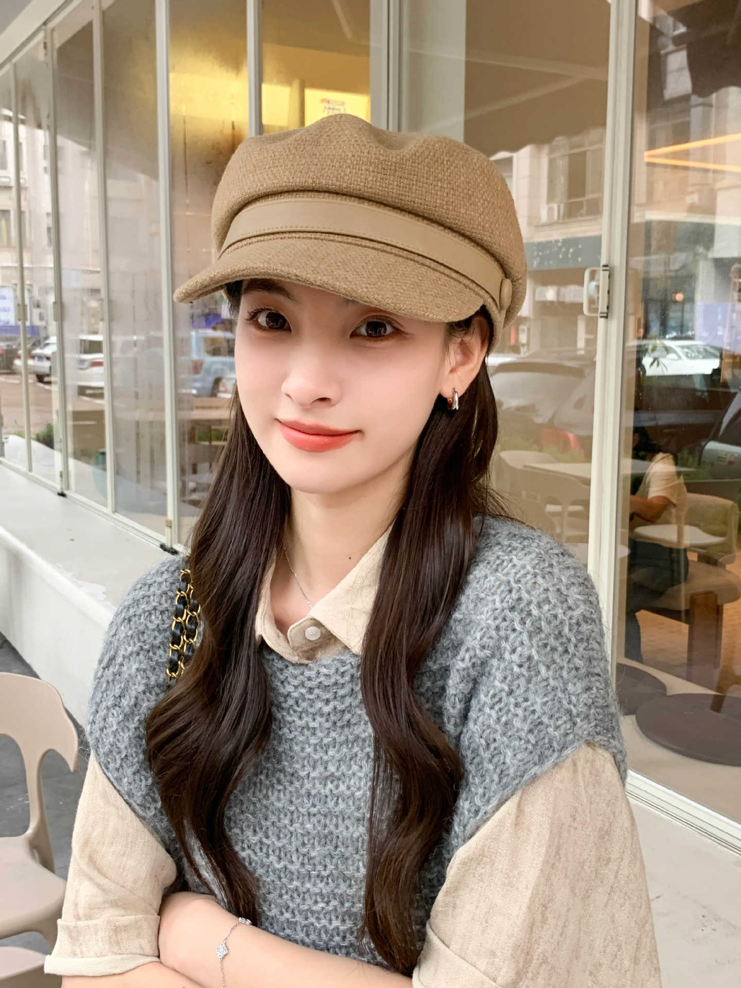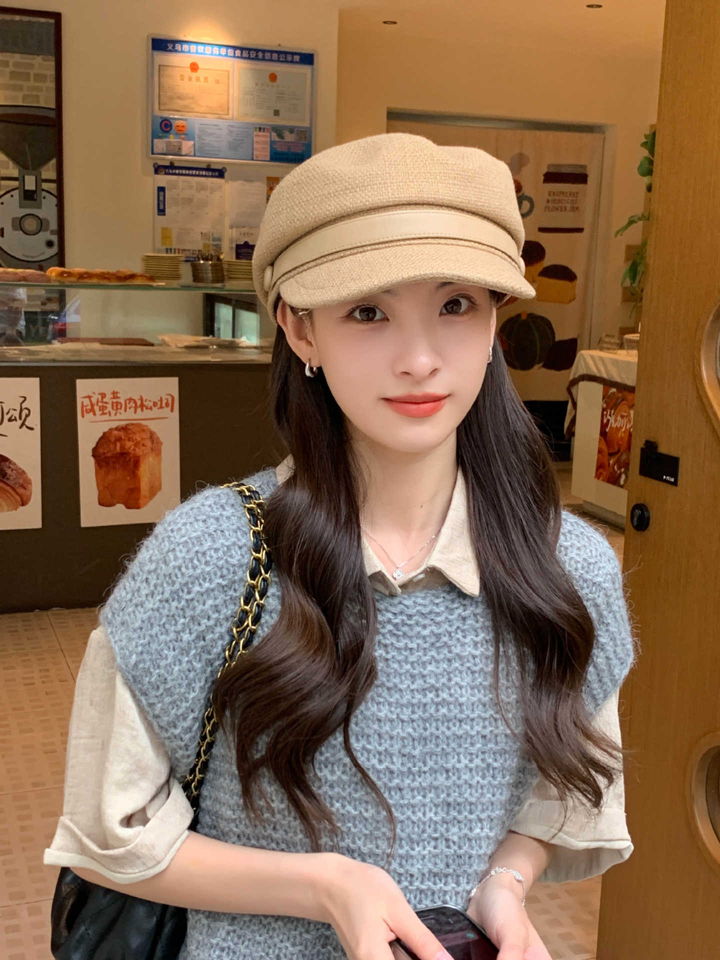 Sombrero Azul Marino para Mujer Otoño e Invierno Combinable Muestra el Rostro Sombrero Octogonal de Lengua de Patito Estilo Coreano Moda de Compras Sombrero de Pintor de Moda
