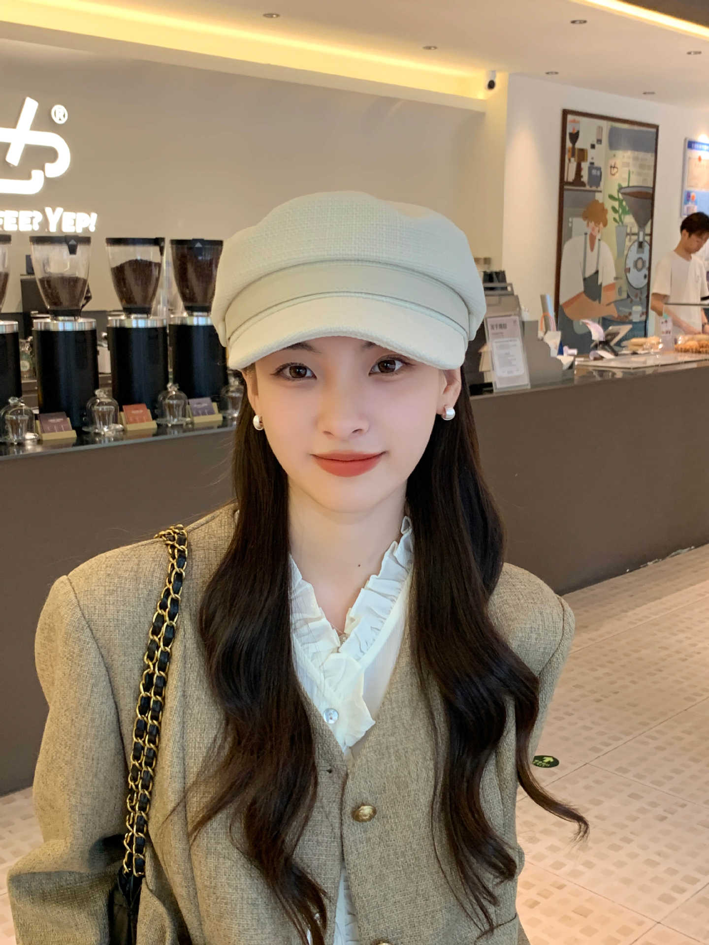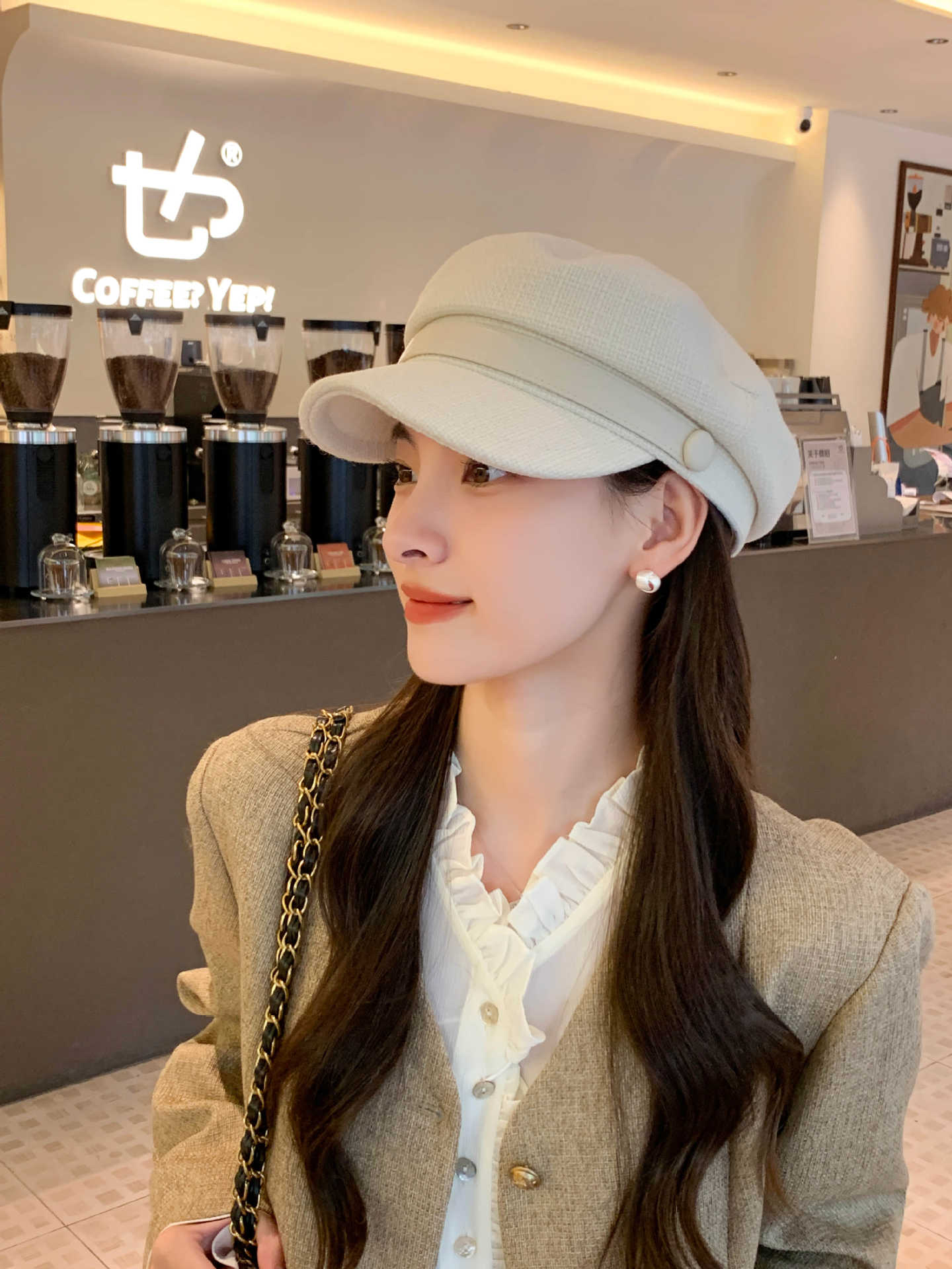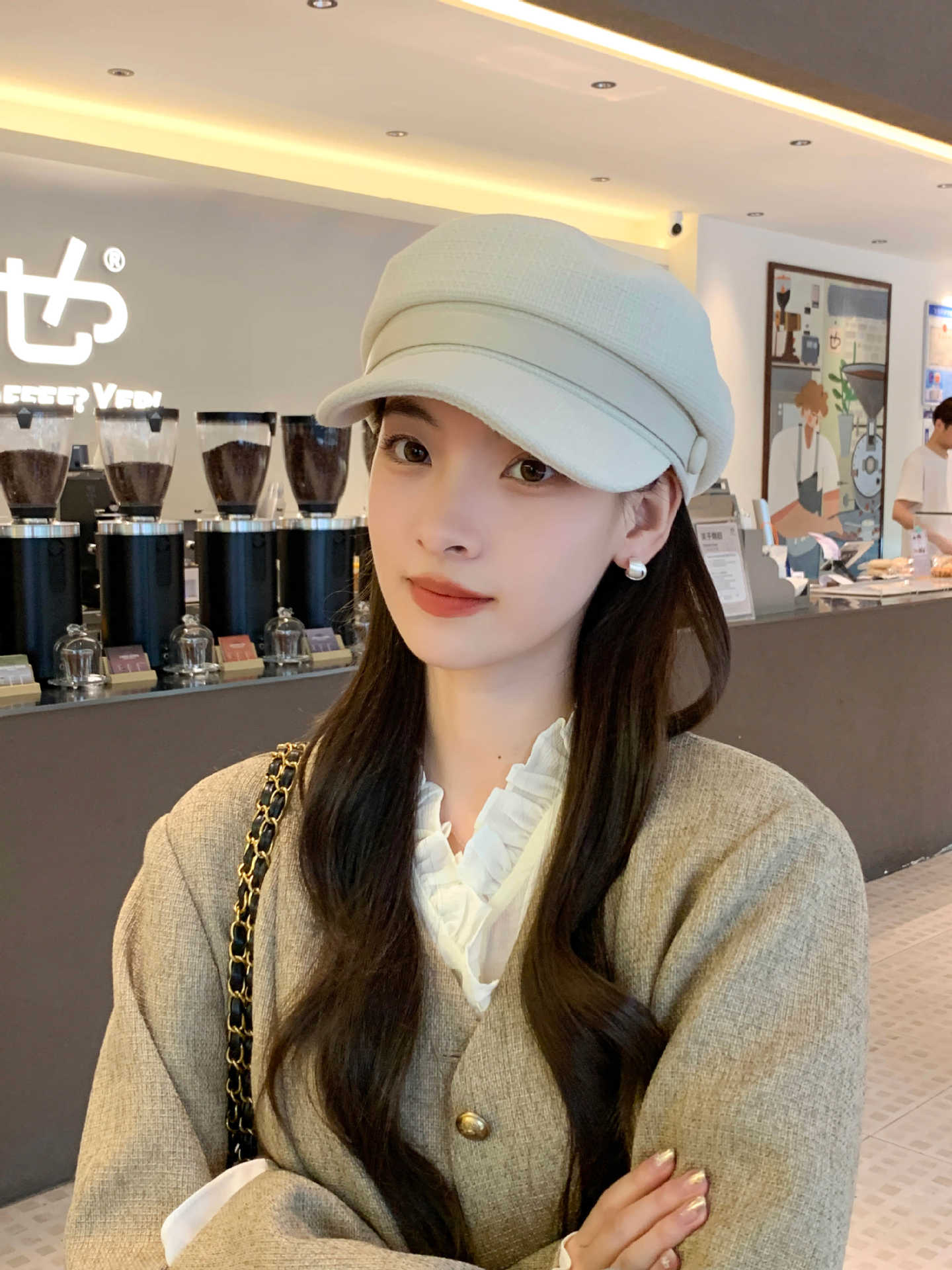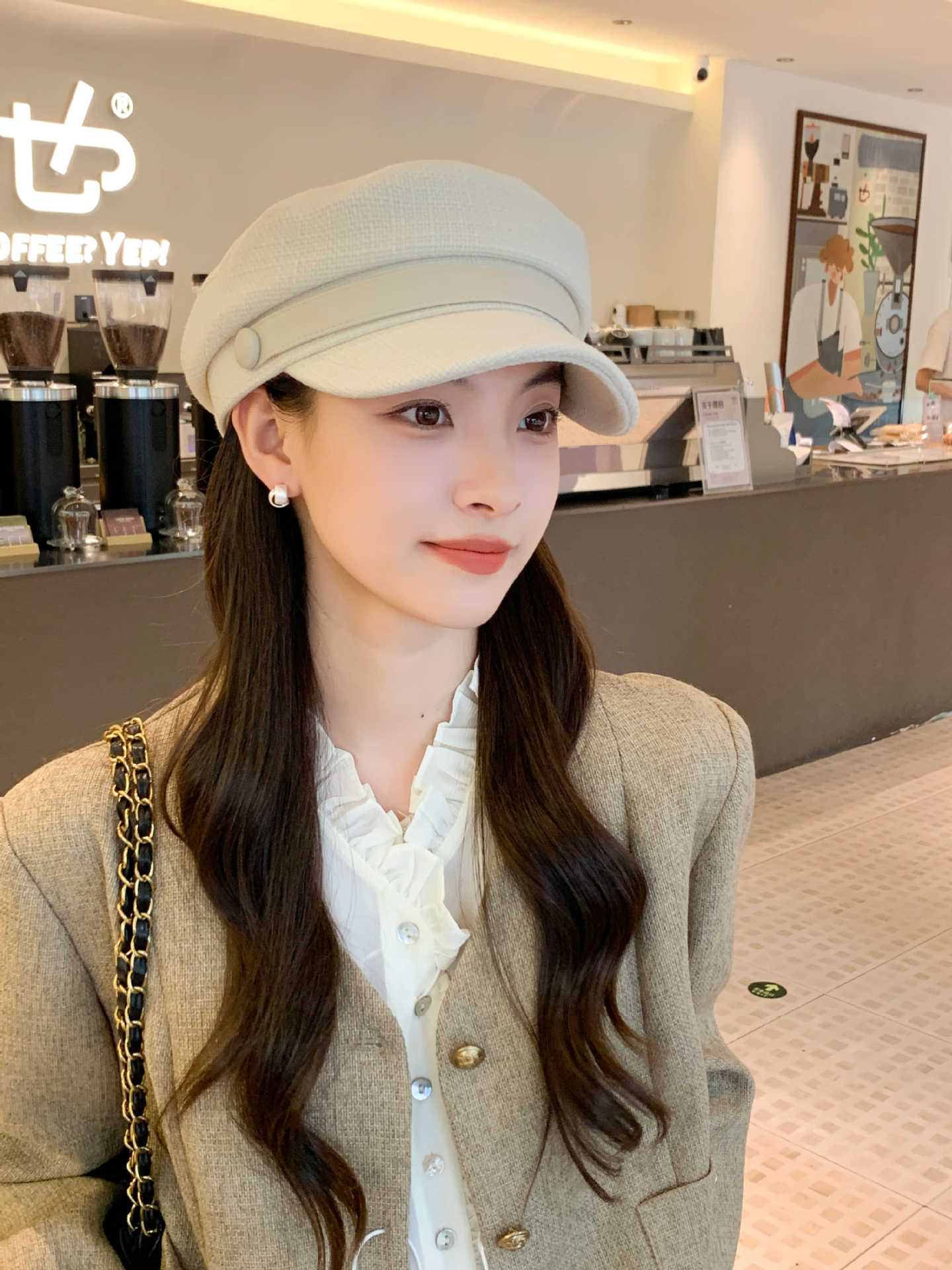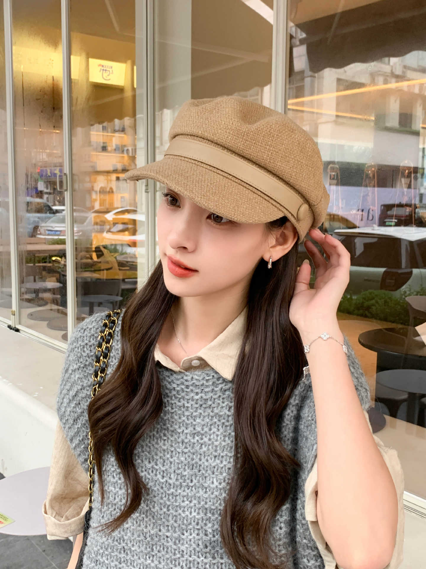 Sombrero Azul Marino para Mujer Otoño e Invierno Combinable Muestra el Rostro Sombrero Octogonal de Lengua de Patito Estilo Coreano Moda de Compras Sombrero de Pintor de Moda