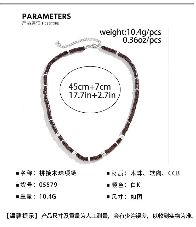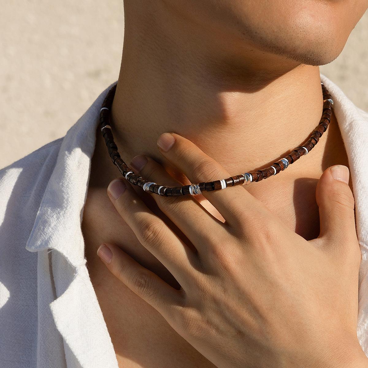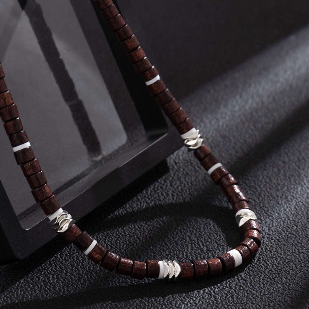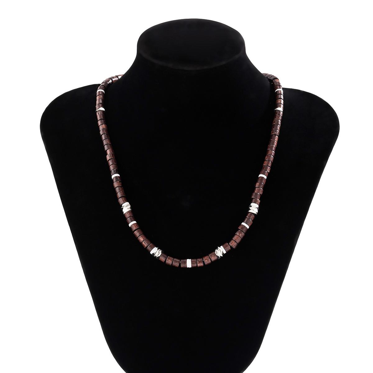 Collar de cuentas de madera estilo surfista bohemio europeo y americano para hombre, estilo hip-hop, cadena de clavícula con cuentas sencillas, joyería transfronteriza.