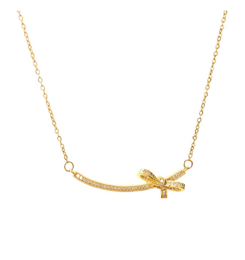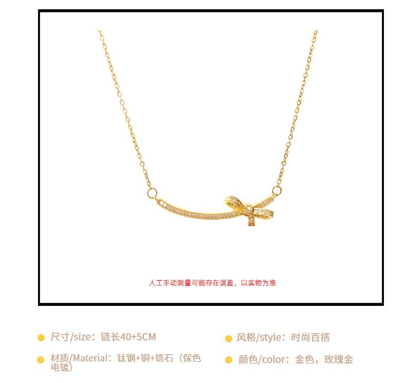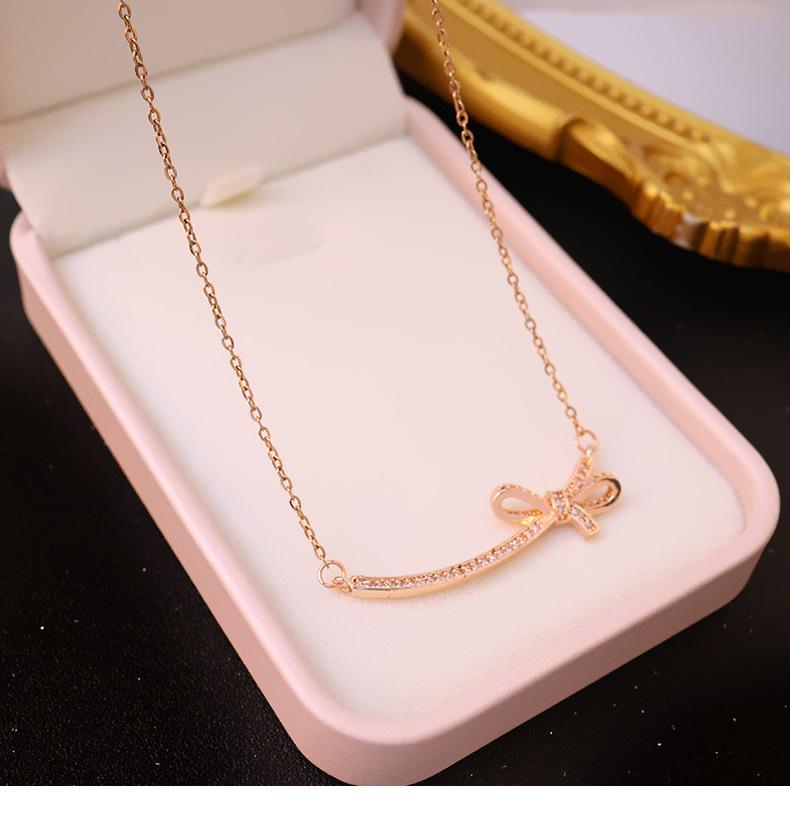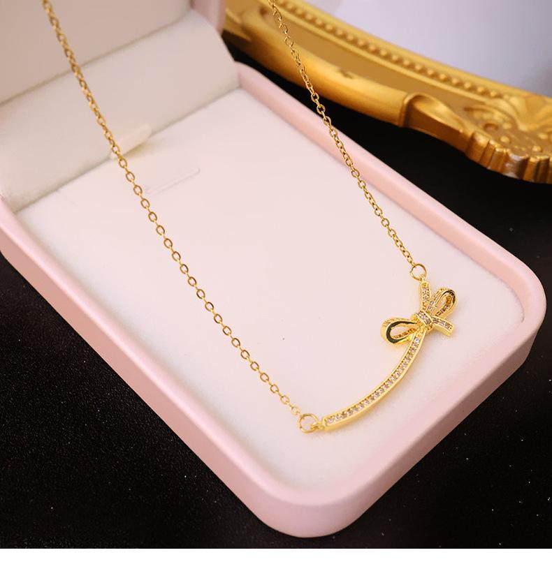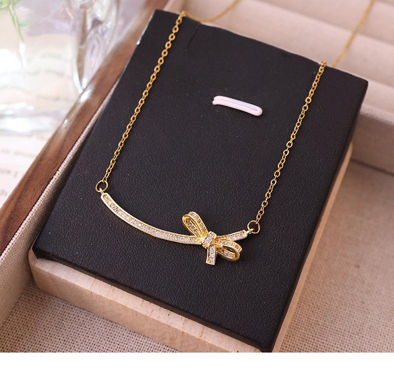 Collar con colgante de lazo de sonrisa de circonita y diamantes de lujo, estilo temperamento ligero, diseño de nicho para mujer, cadena de clavícula de acero de titanio de alta calidad, venta al por mayor