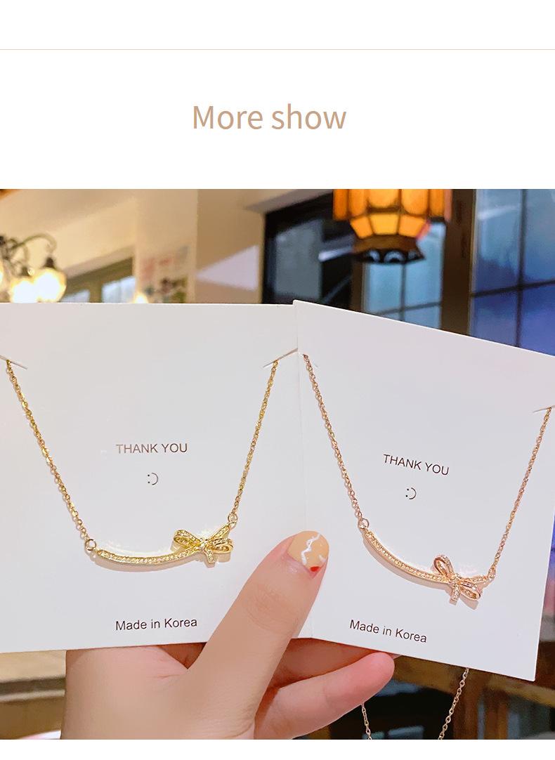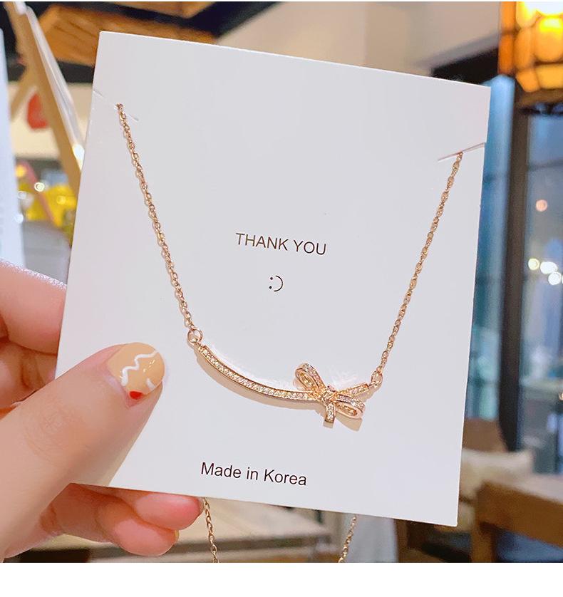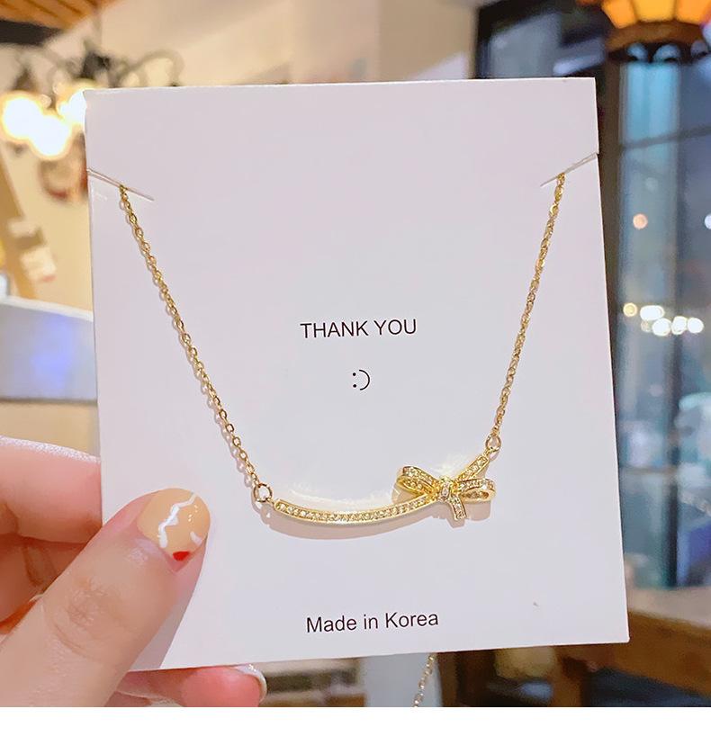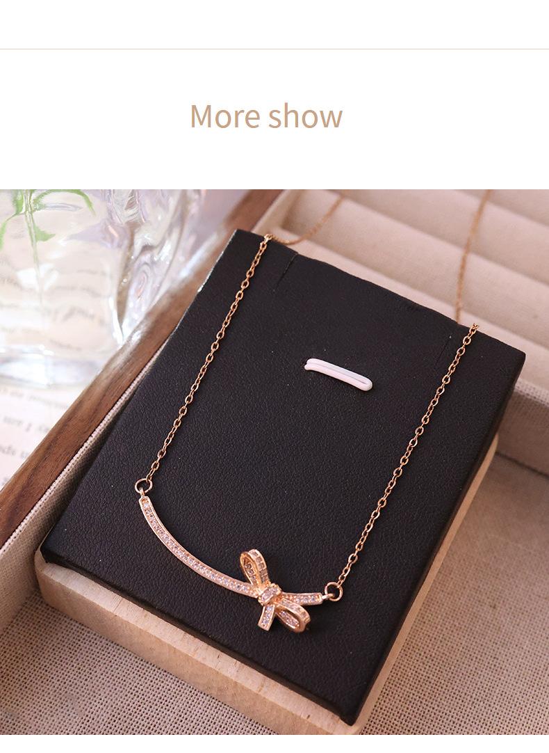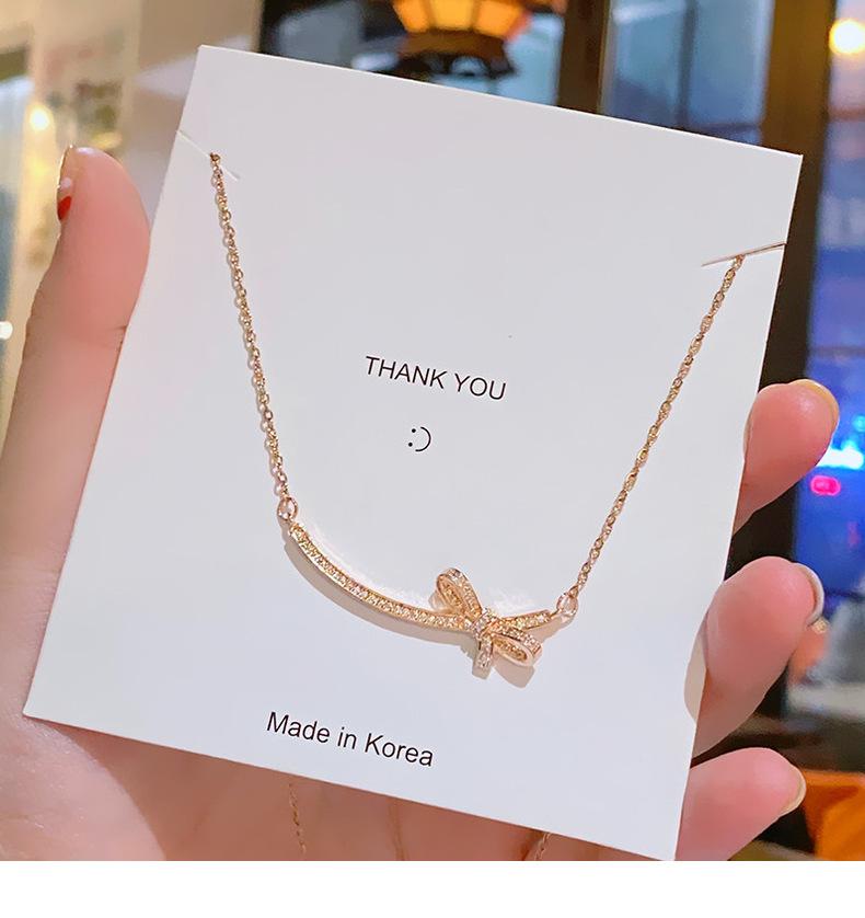Collar con colgante de lazo de sonrisa de circonita y diamantes de lujo, estilo temperamento ligero, diseño de nicho para mujer, cadena de clavícula de acero de titanio de alta calidad, venta al por mayor
