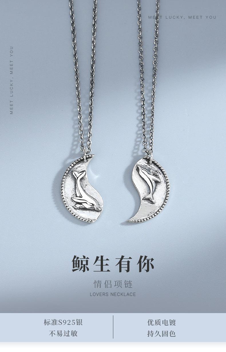 Ballena te tiene collar de pareja de plata esterlina para hombre y mujer diseño de nicho amor a larga distancia conmemorativo regalo de cumpleaños Navidad