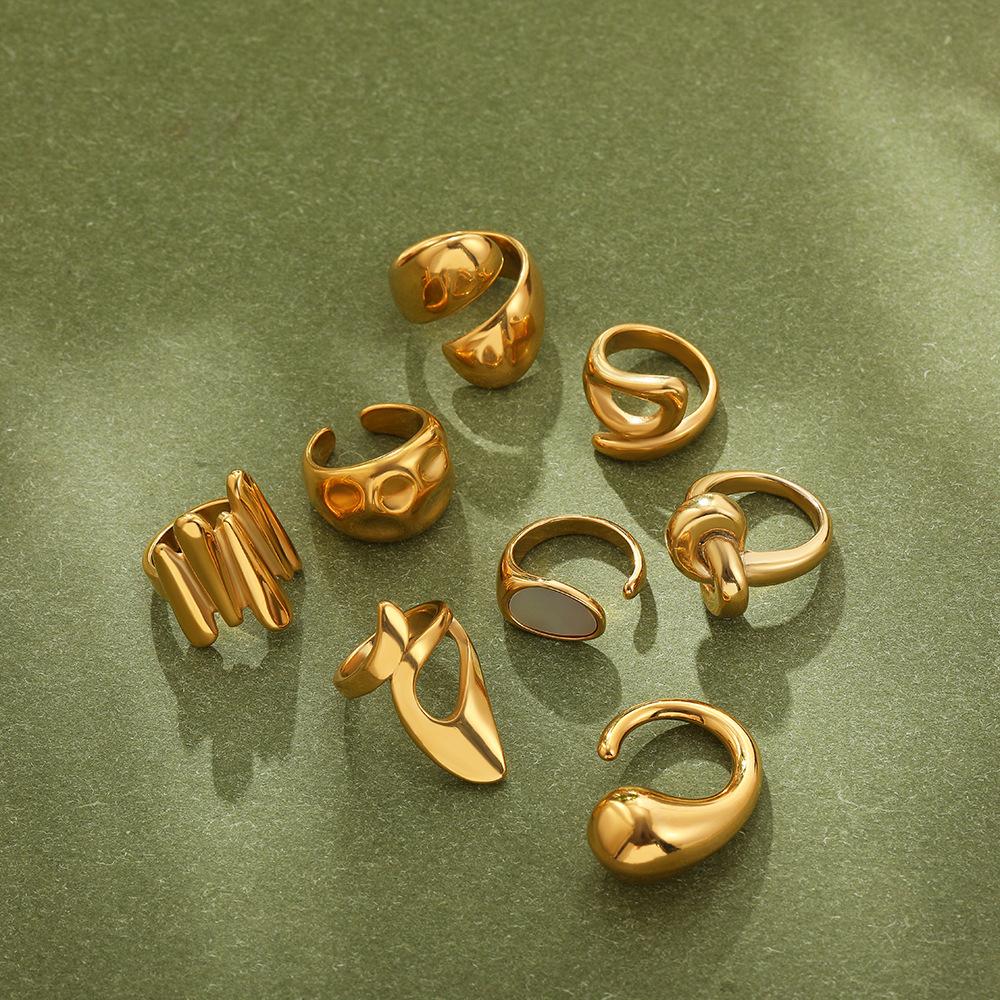 Anillo Transfronterizo Europeo y Americano de 18K Exagerado Gota de Agua Cuerda Anillo Abierto Anudado Asimétrico Geométrico Anillo Decorativo Anillo para Dedo Índice