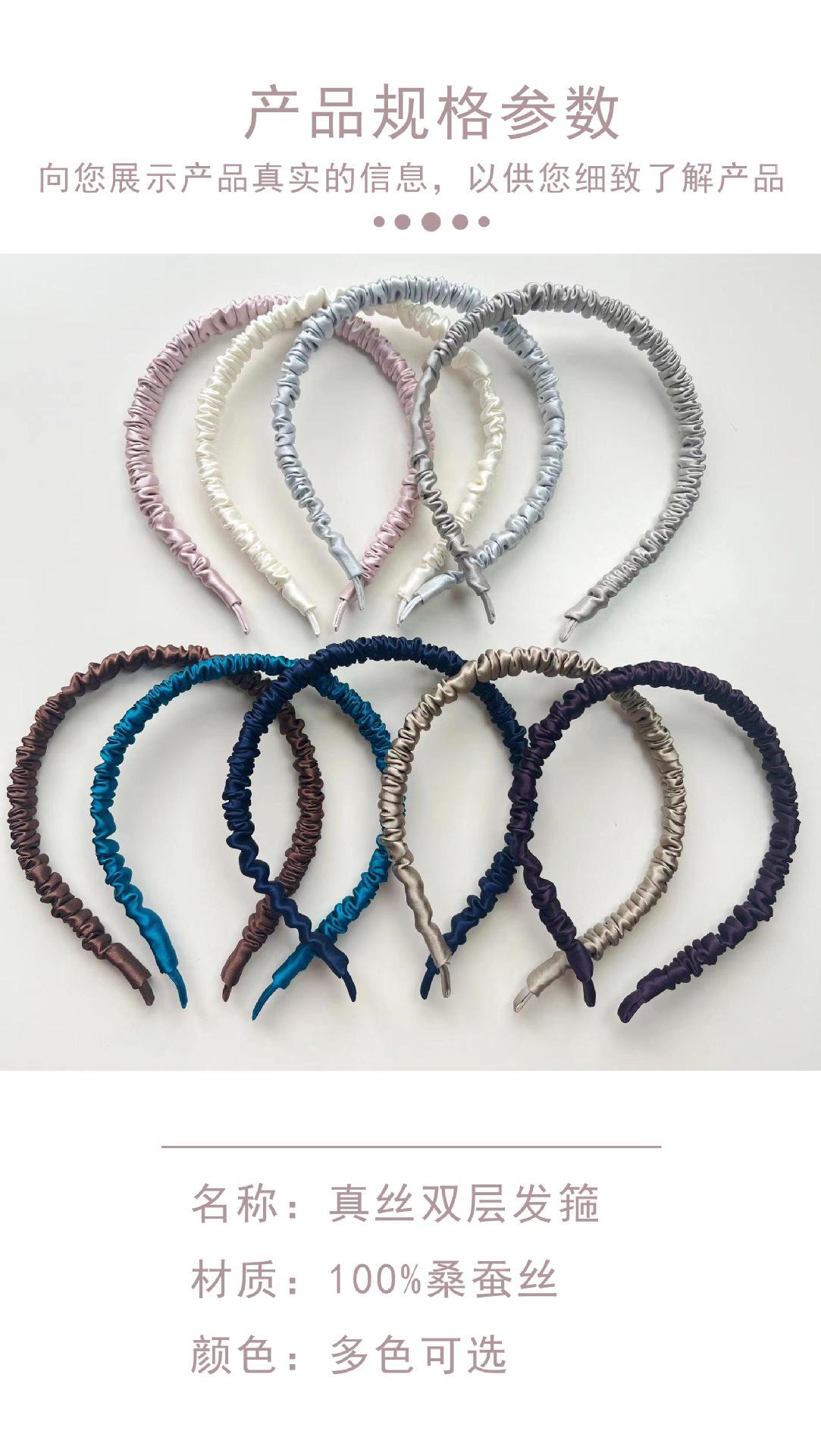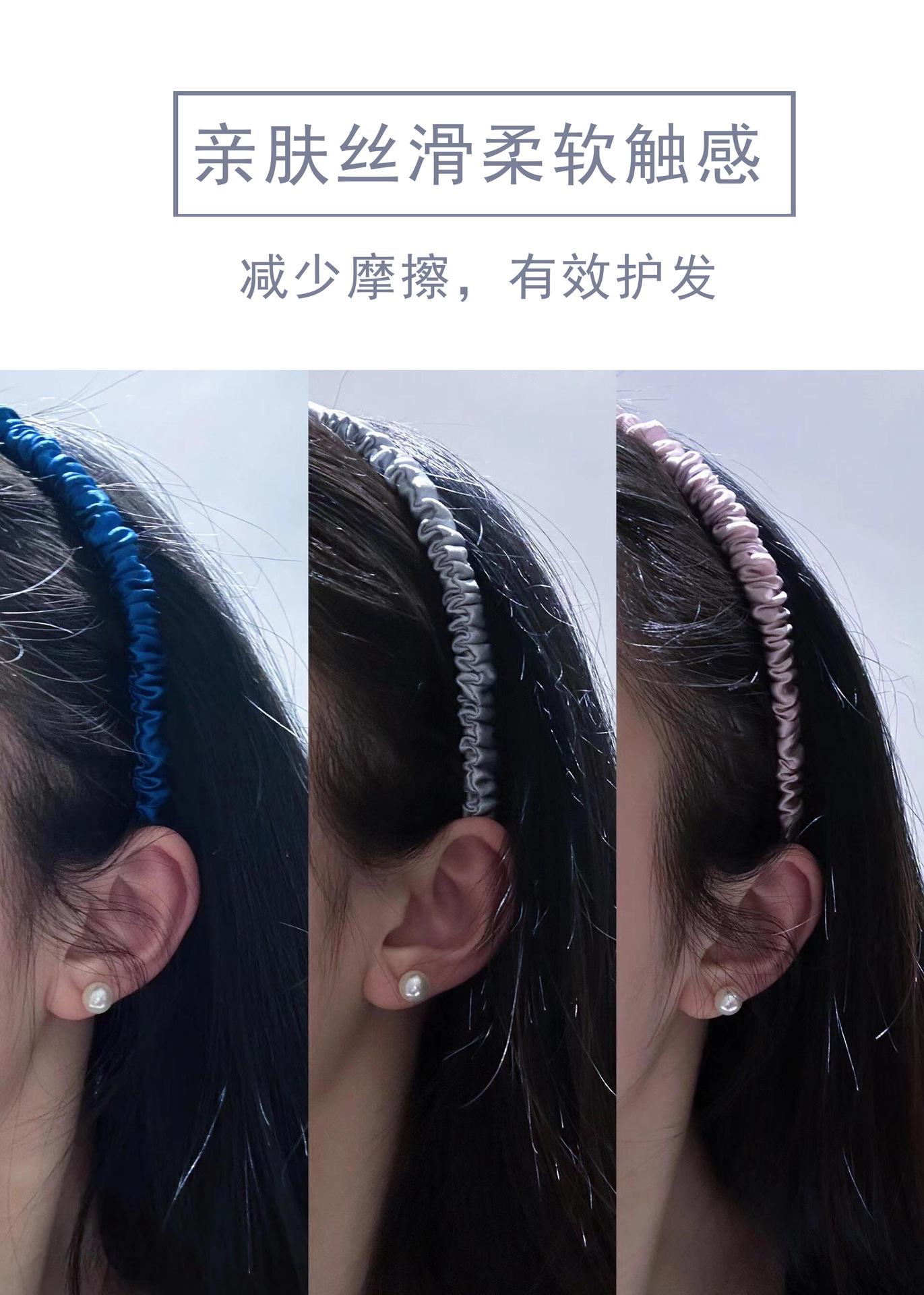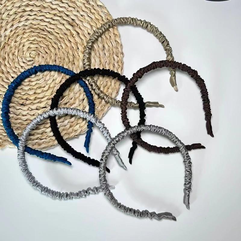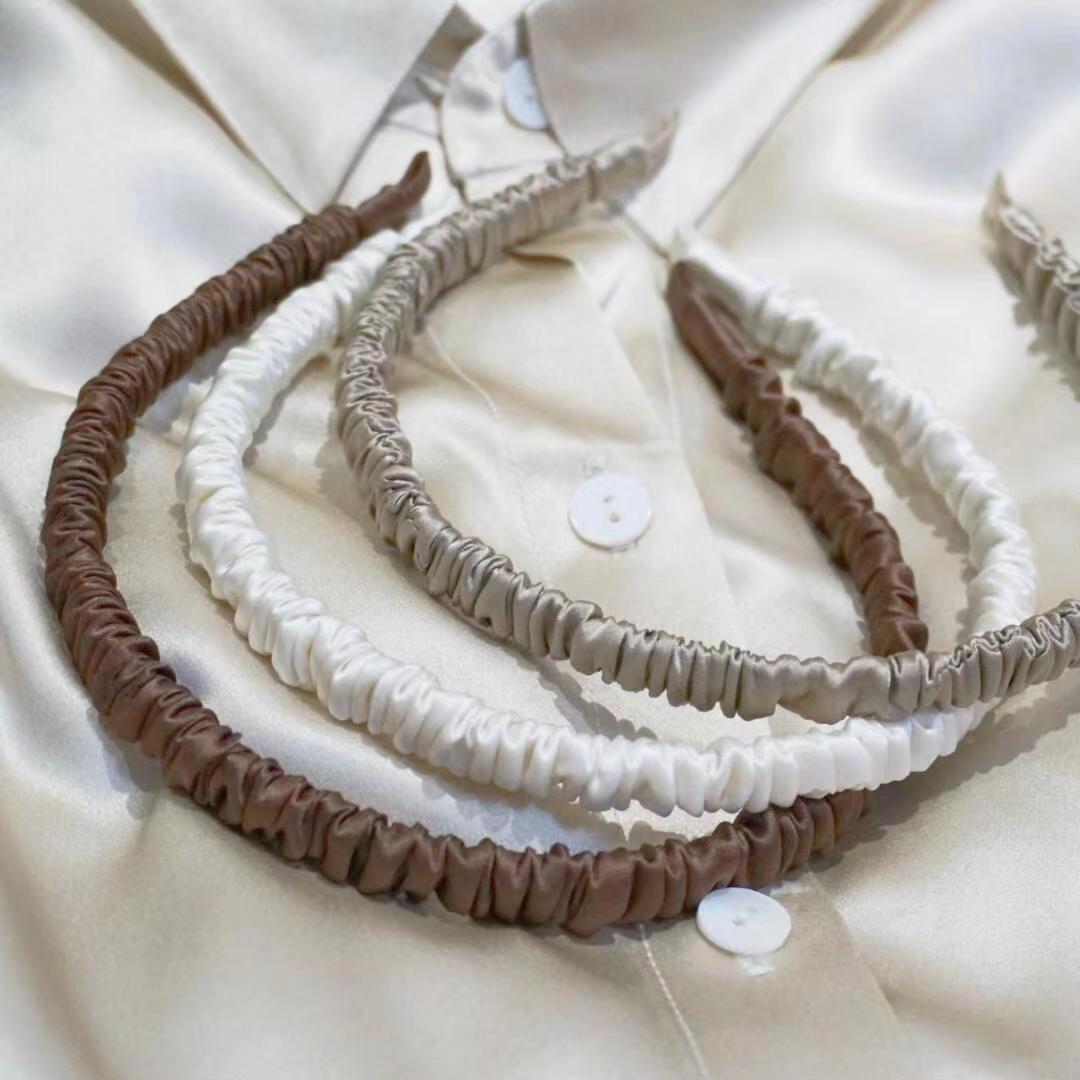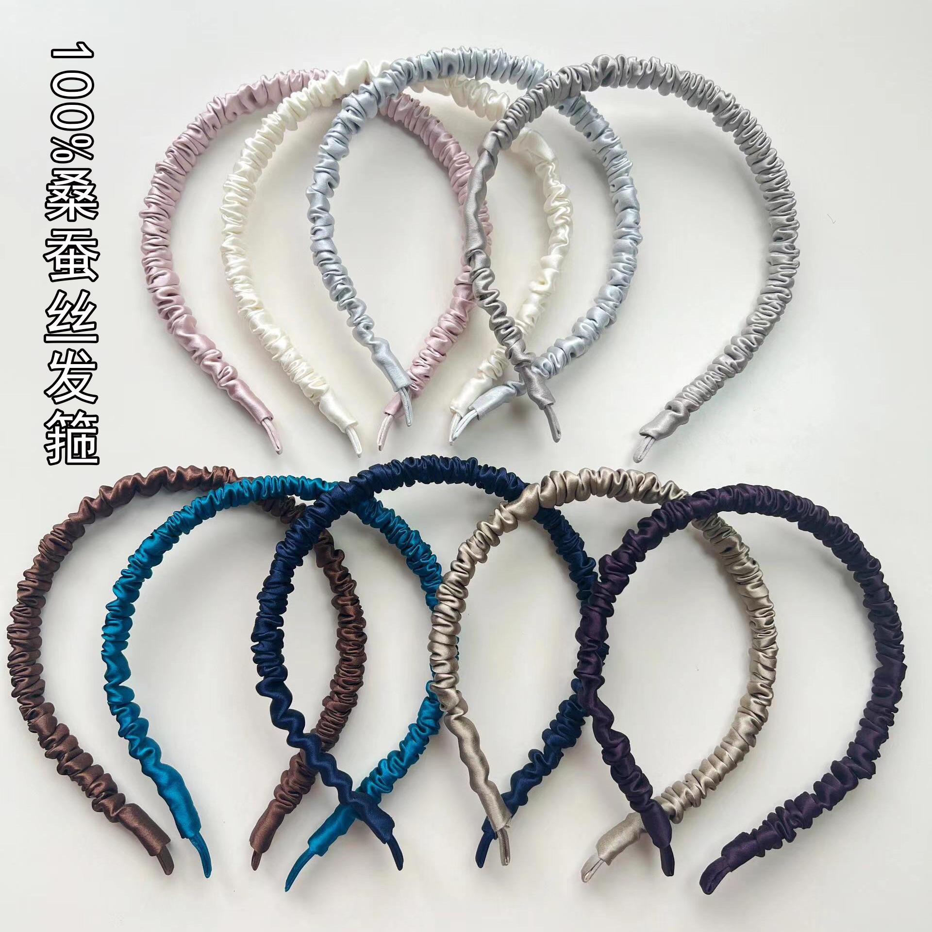 Banda para el cabello 100% seda morera, diadema de seda auténtica, plisada, combinable con todo, accesorio para el cabello, banda para el cabello con borde fino y elegante para lavarse la cara.