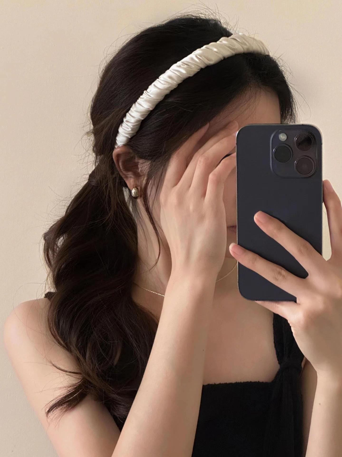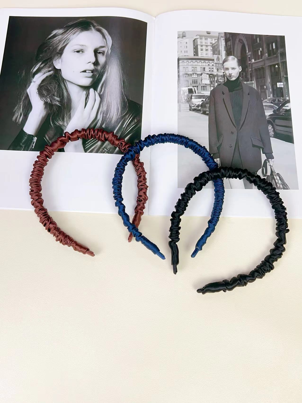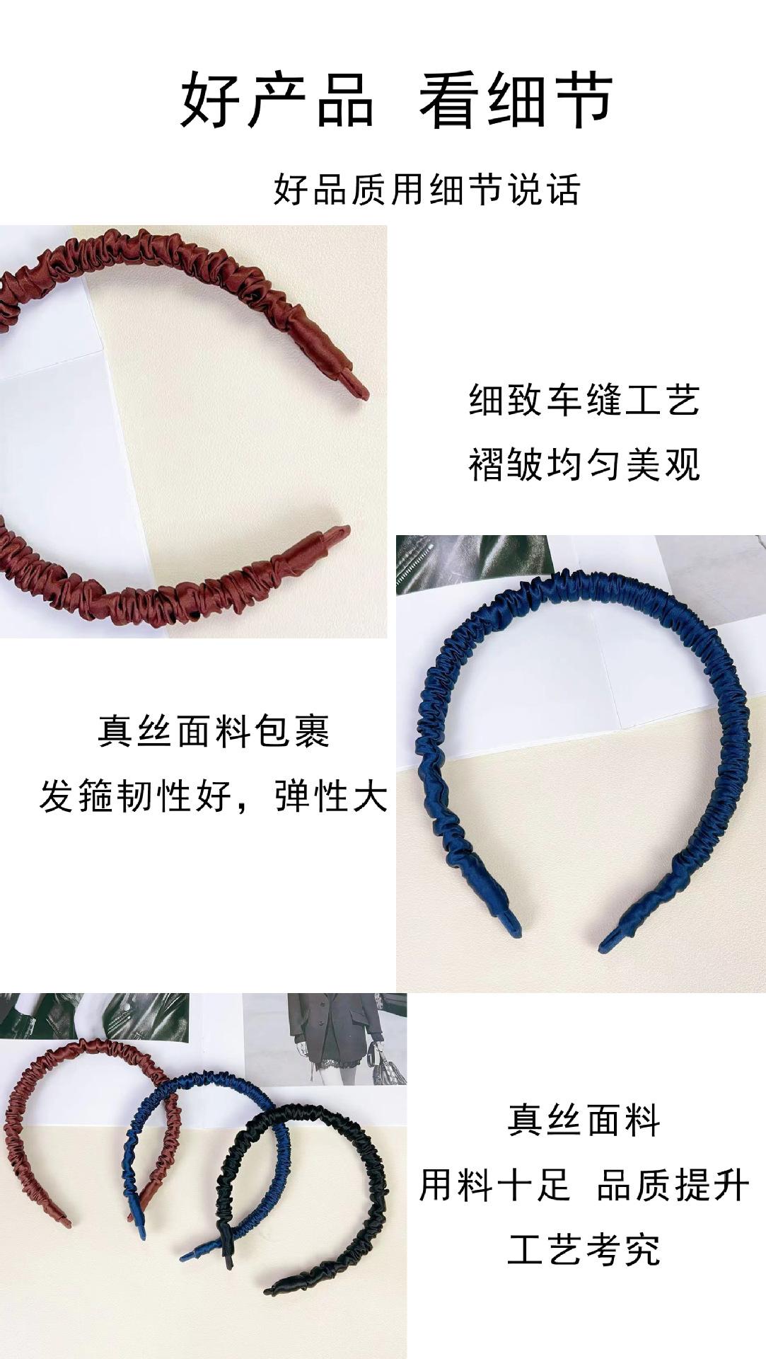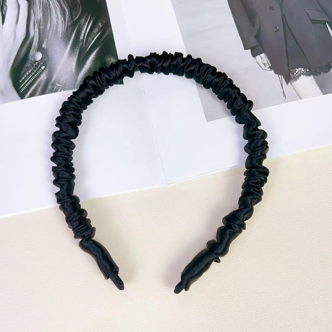 Banda para el cabello 100% seda morera, diadema de seda auténtica, plisada, combinable con todo, accesorio para el cabello, banda para el cabello con borde fino y elegante para lavarse la cara.