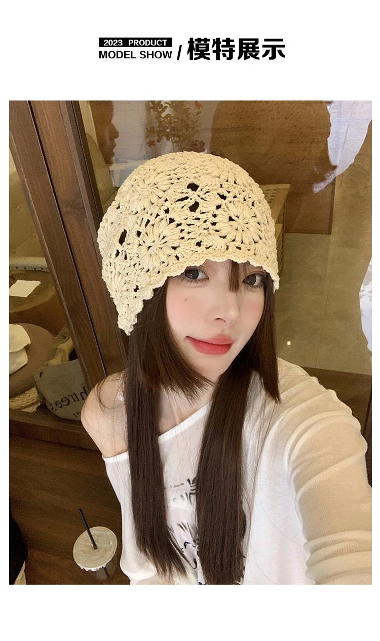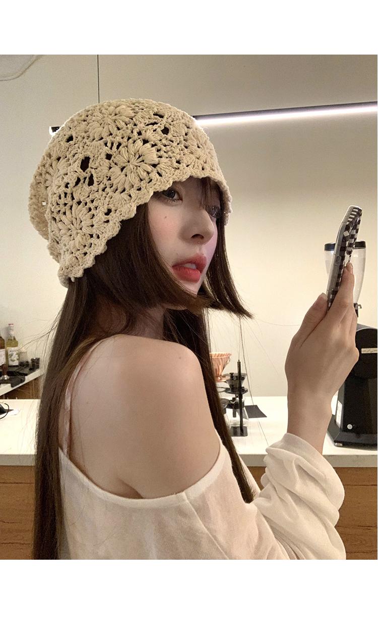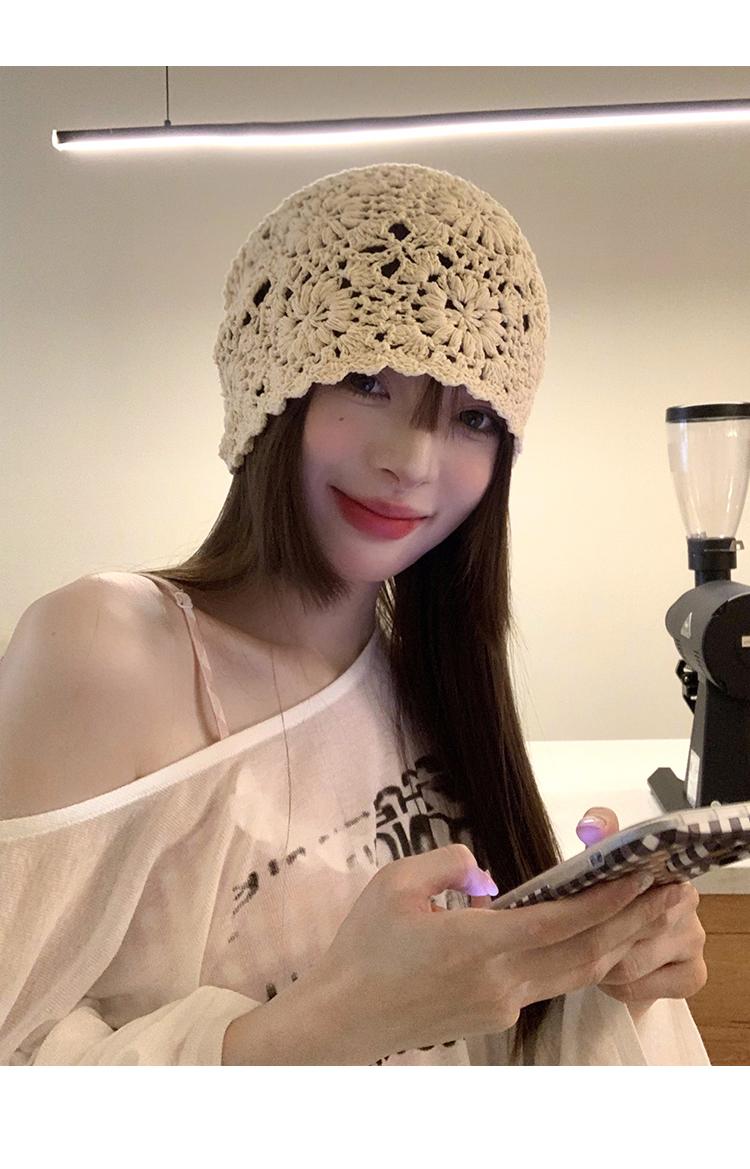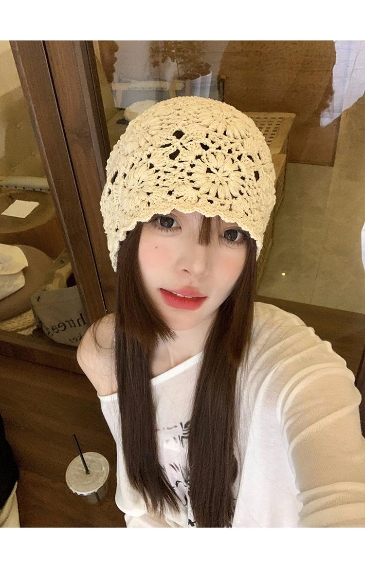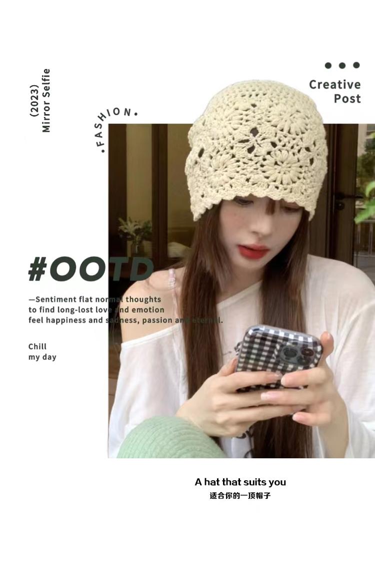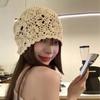 Gorro Baotou tejido a mano estilo japonés para mujer, gorro de lana con corte fino para primavera y otoño, gorro de punto literario retro, gorro de pelo.