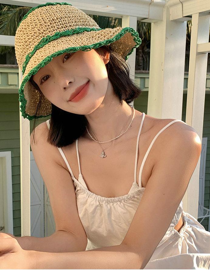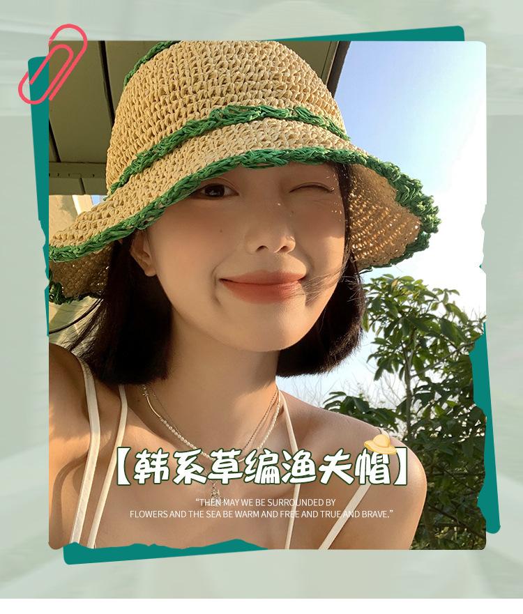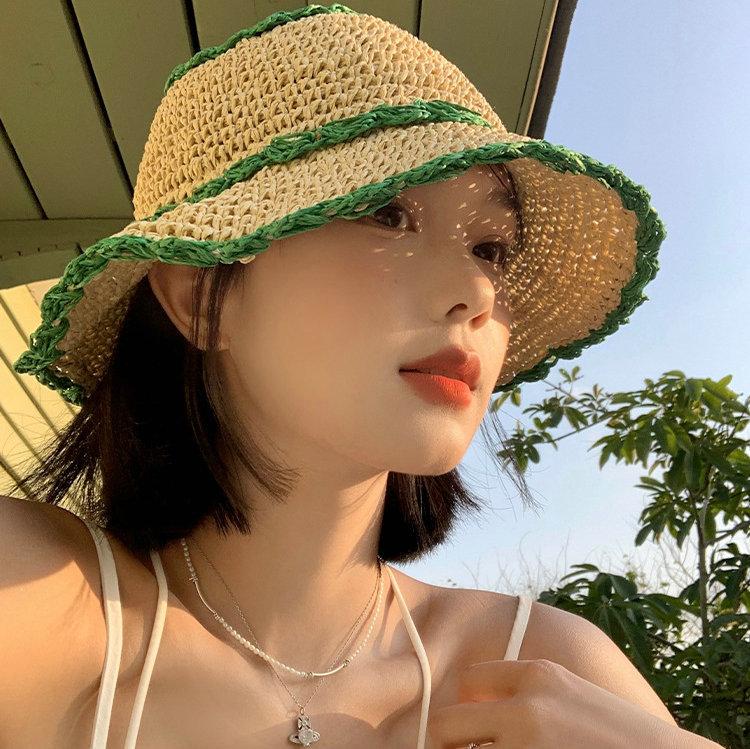 Sombrero de pescador de paja para mujer, estilo japonés, para verano, con protección solar, transpirable, para viajes, versátil, a la moda.