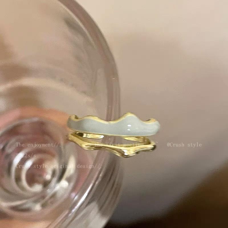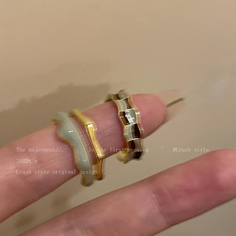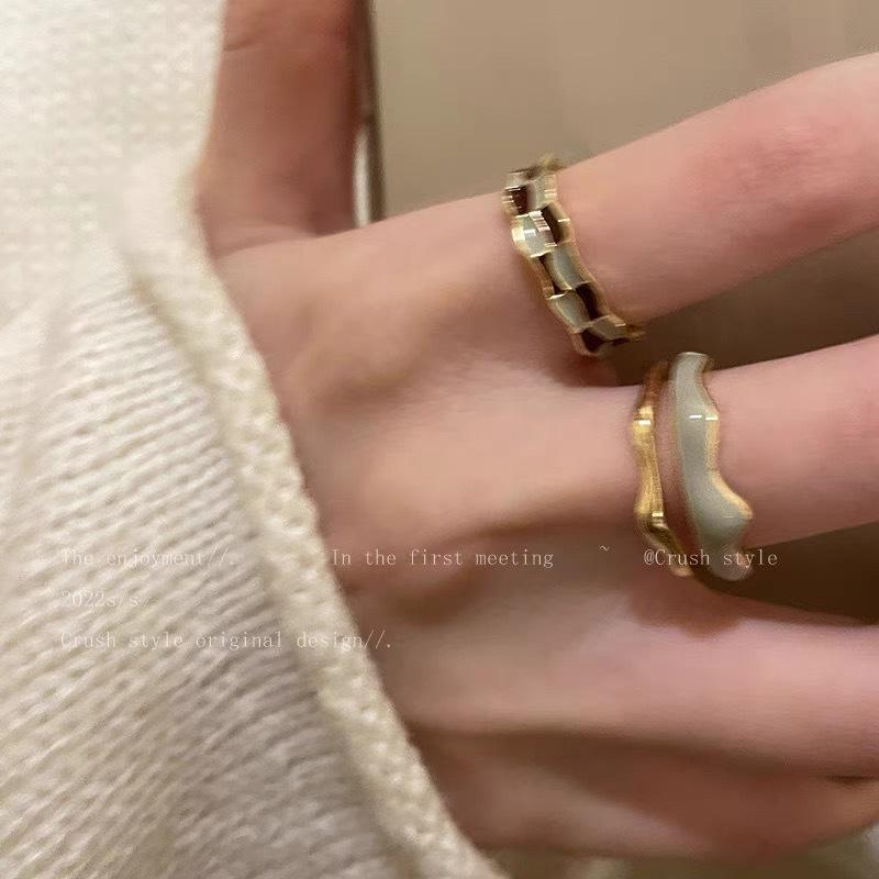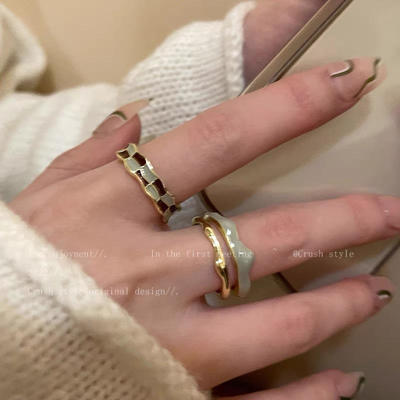 Anillo de Dedo de Diseño Nuevo 2023 Anillo Abierto de Tablero de Ajedrez de Doble Capa Anillo de Nicho Retro de Moda para Mujer