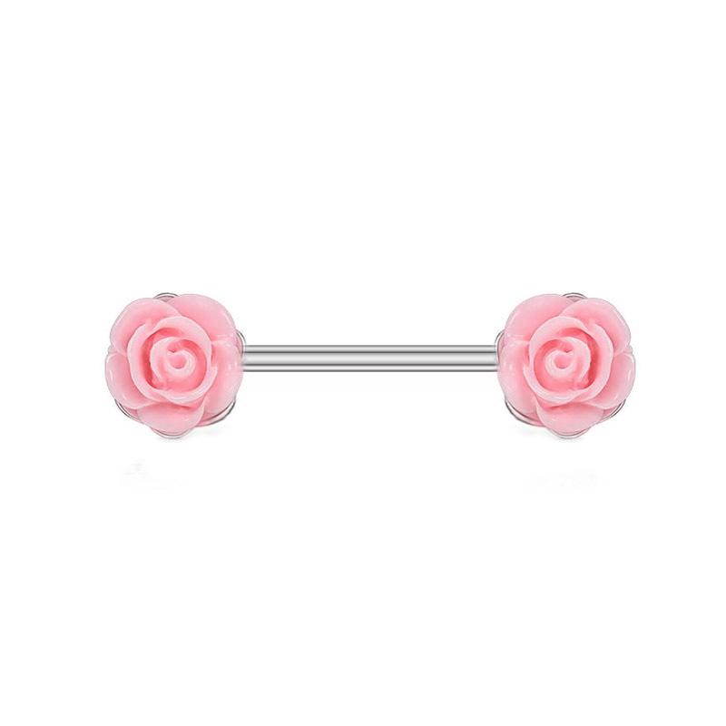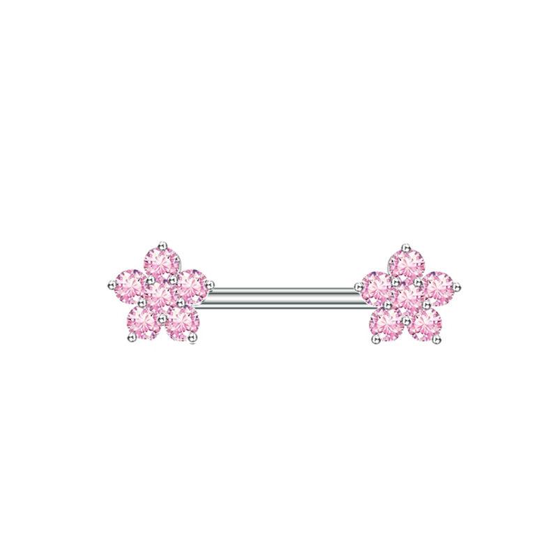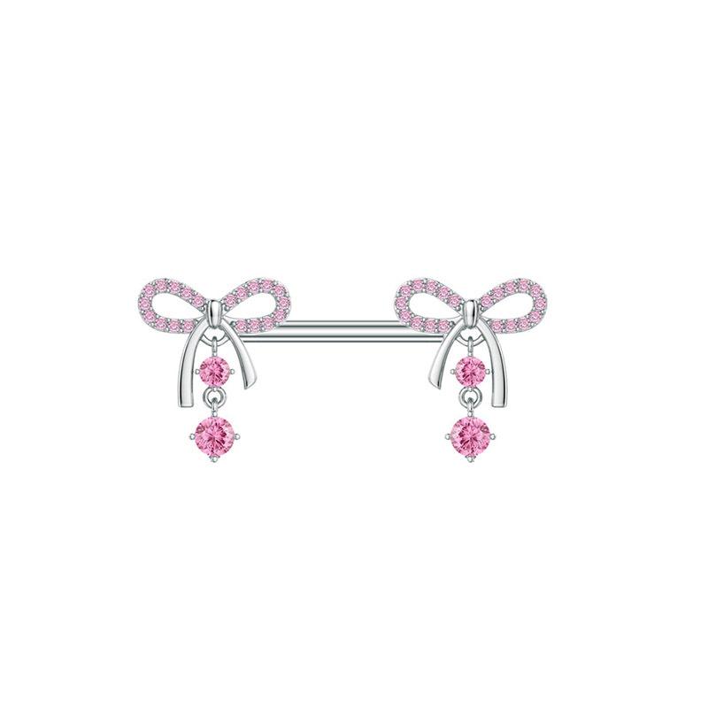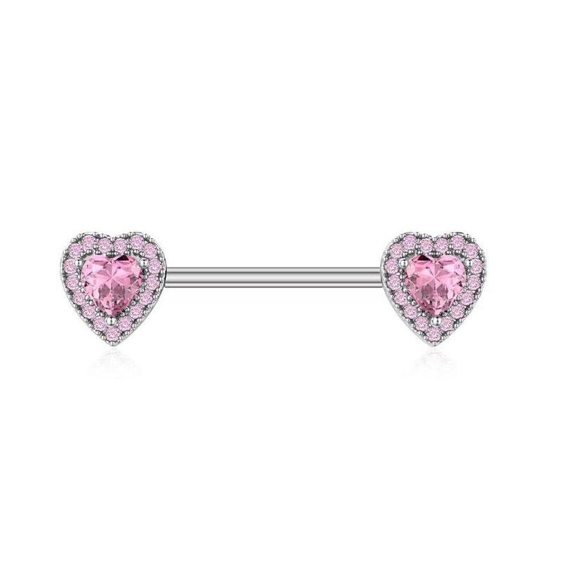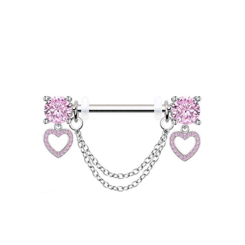 Nuevos Piercings para Pezón de Acero Inoxidable Rosa al por Mayor Simples y Exquisitos Corazón de Durazno Rosa Perforación Corporal Circonita Colgante Anillo para Pezón