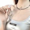 Collar de acero de titanio con una sola perla de agua dulce y espinela negra, sencillo y elegante, estilo celebridad de Internet, cadena de clavícula de viento frío para mujer