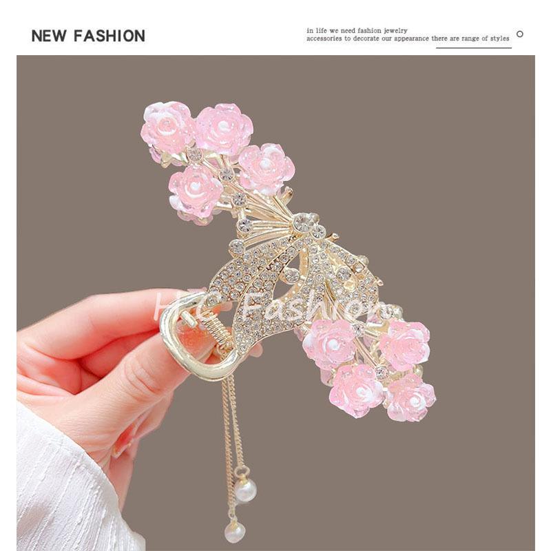 Pinza para el cabello con borlas de flores Advanced Sense, nueva y elegante pinza para la cabeza en forma de mariposa, elegante y grande, con diseño de tiburón que combina con todo.