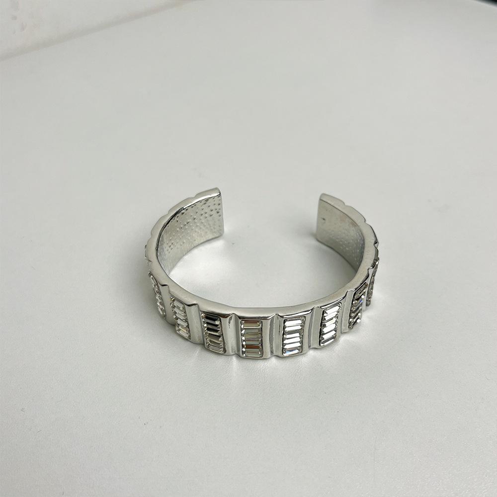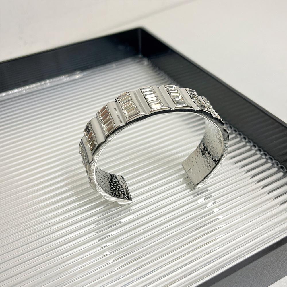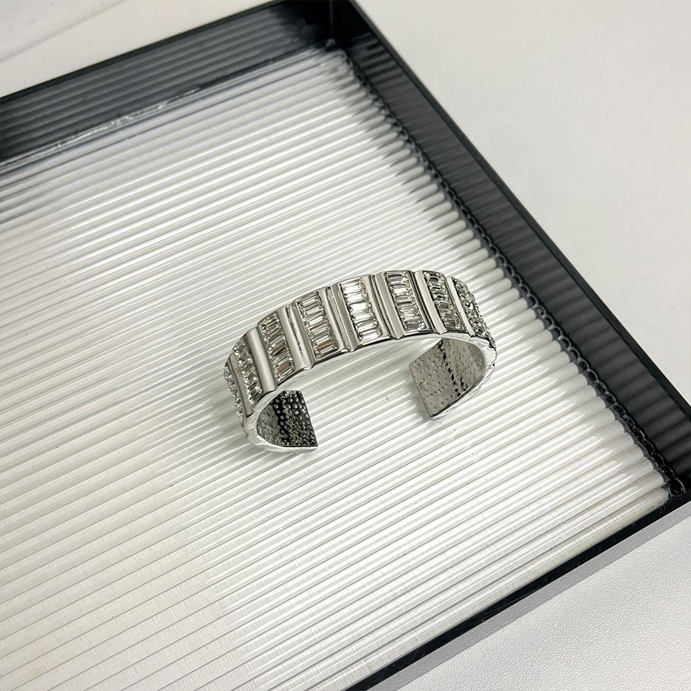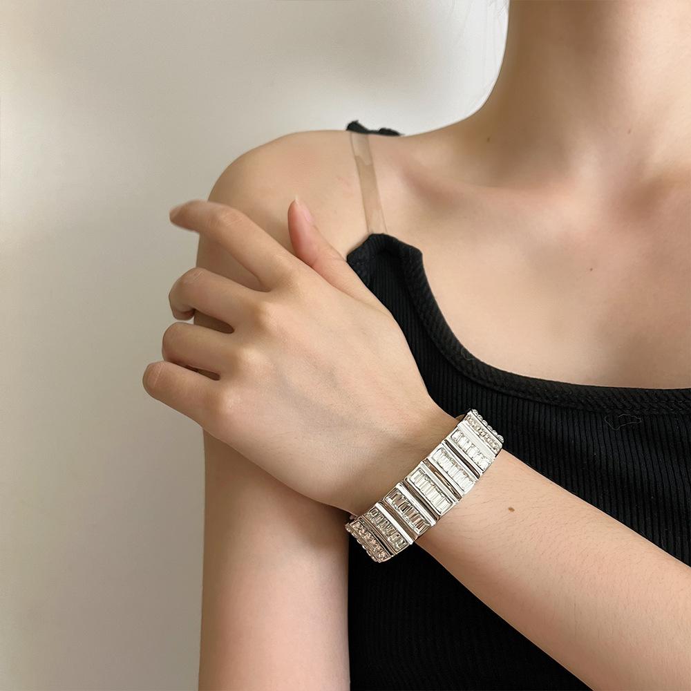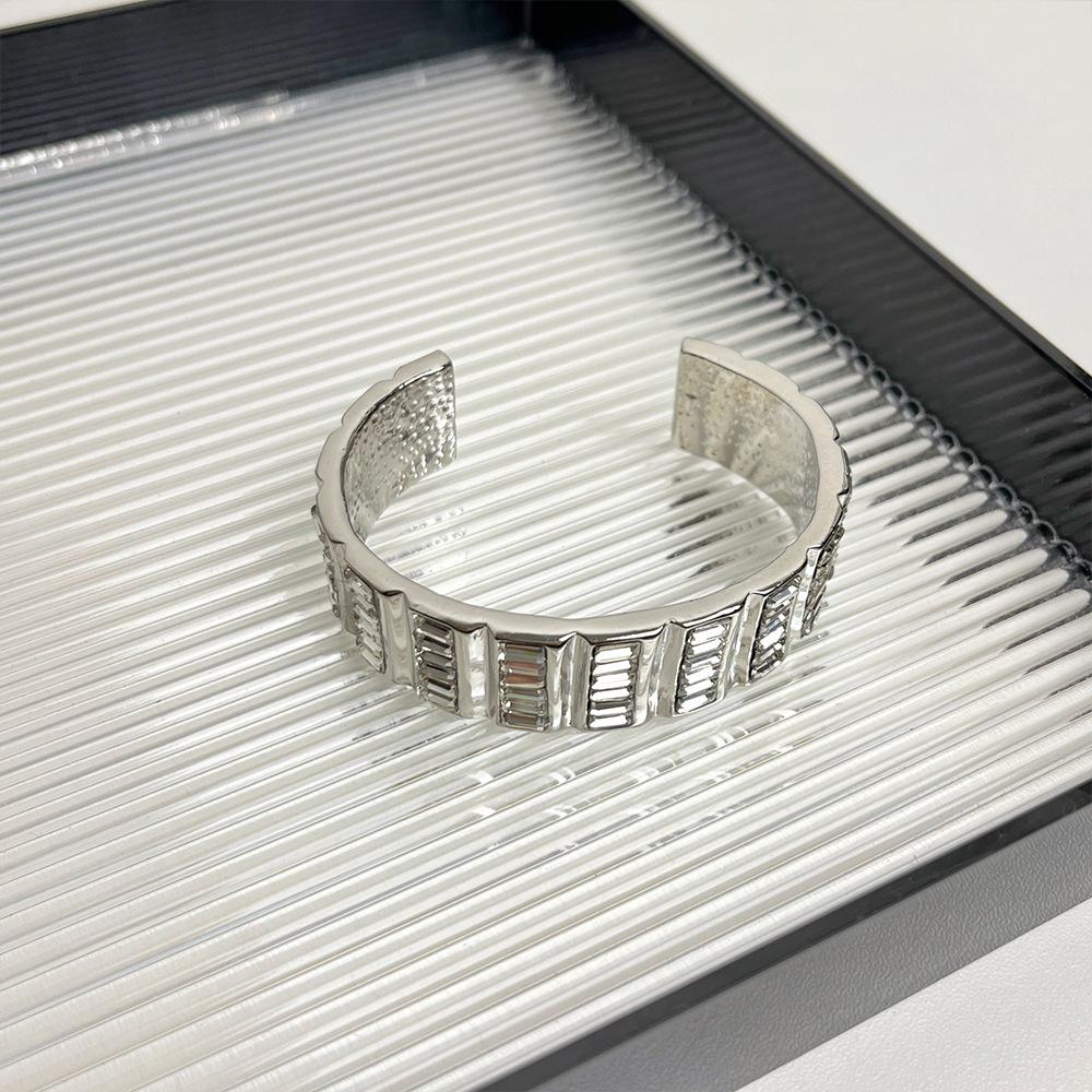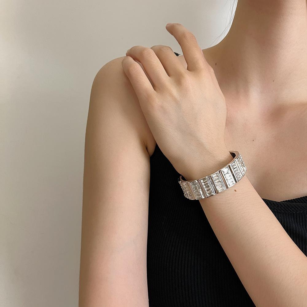 Pulsera Cuadrada Abierta Europea y Americana Ins con Incrustaciones de Diamantes Pulsera de Metal con Sentido de Diseño de Nicho para Mujer Pulsera Simple Elegante para Combinar con Todo