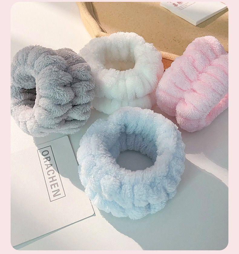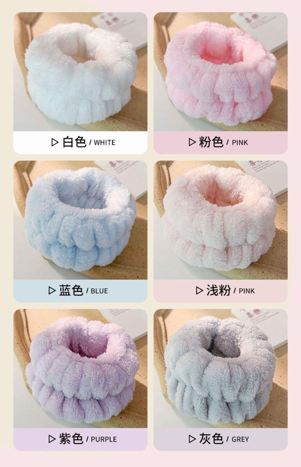 White plush absorbent wristband, Light powder plush absorbent wristband, Purple plush absorbent wristband, Pin...