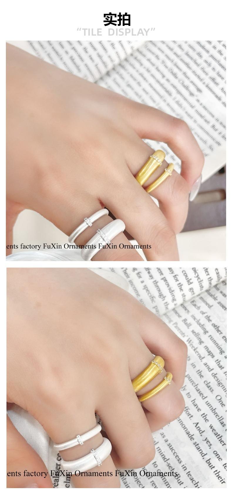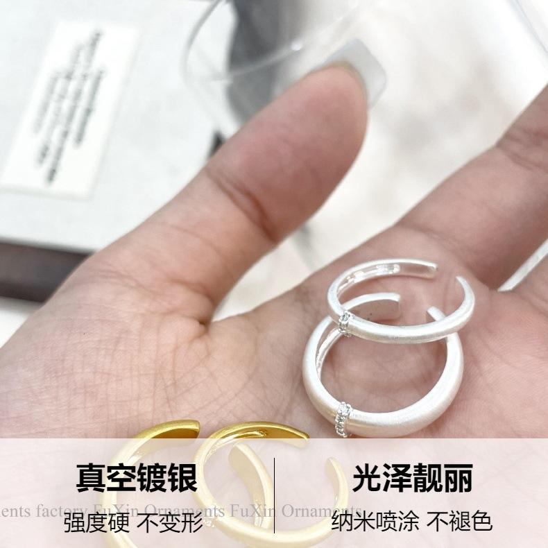 Anillo INS de Viento Frío con Trefilado para Mujer Diseño de Nicho Personalidad Sentido Avanzado Anillo de Abertura Ajustable Moda Personalidad