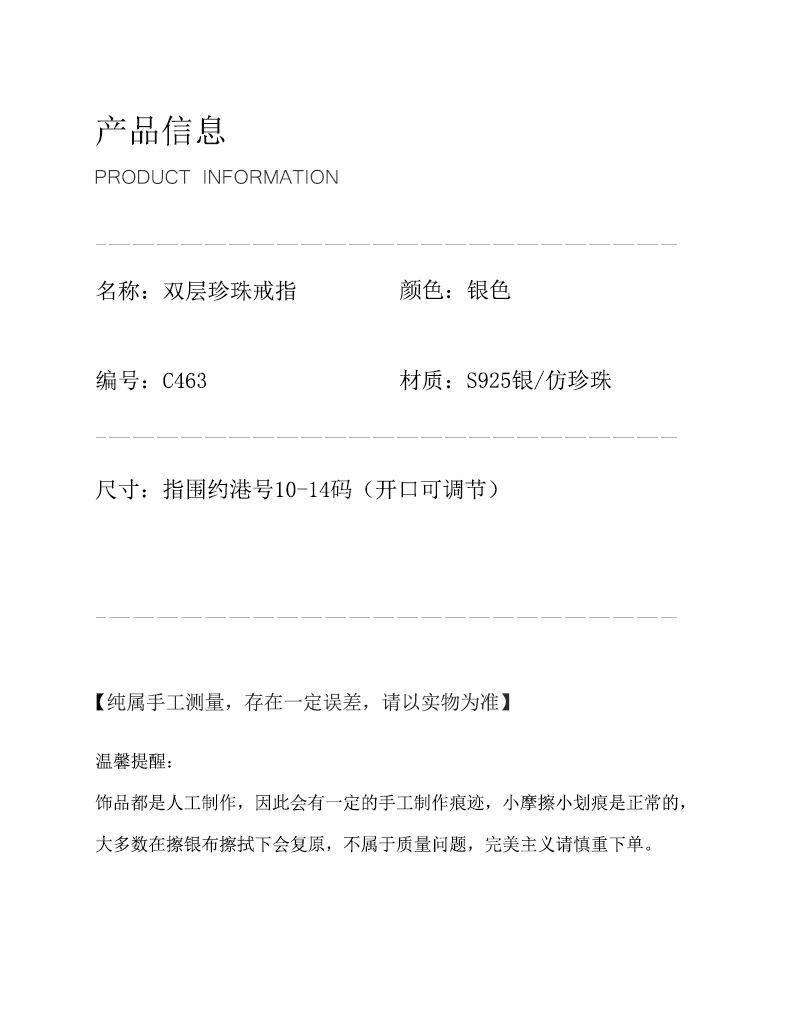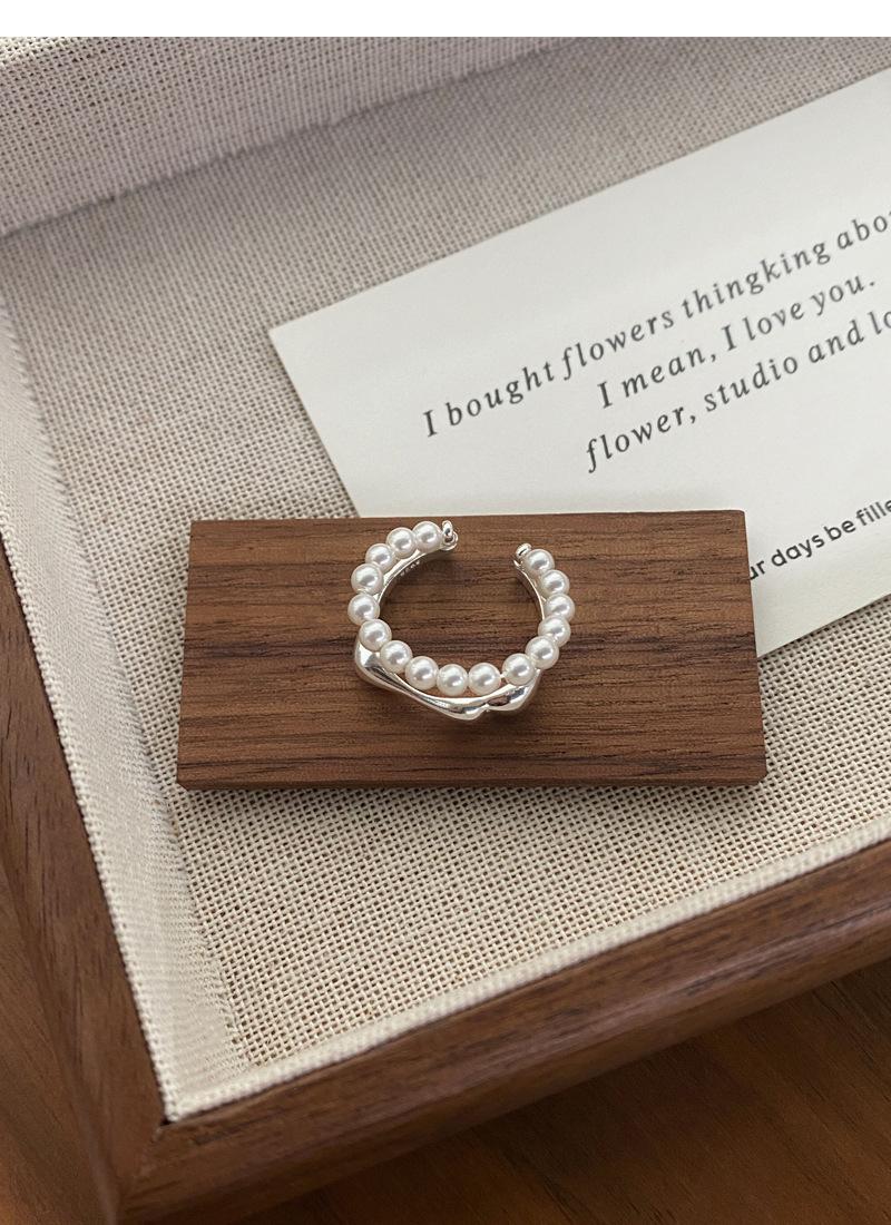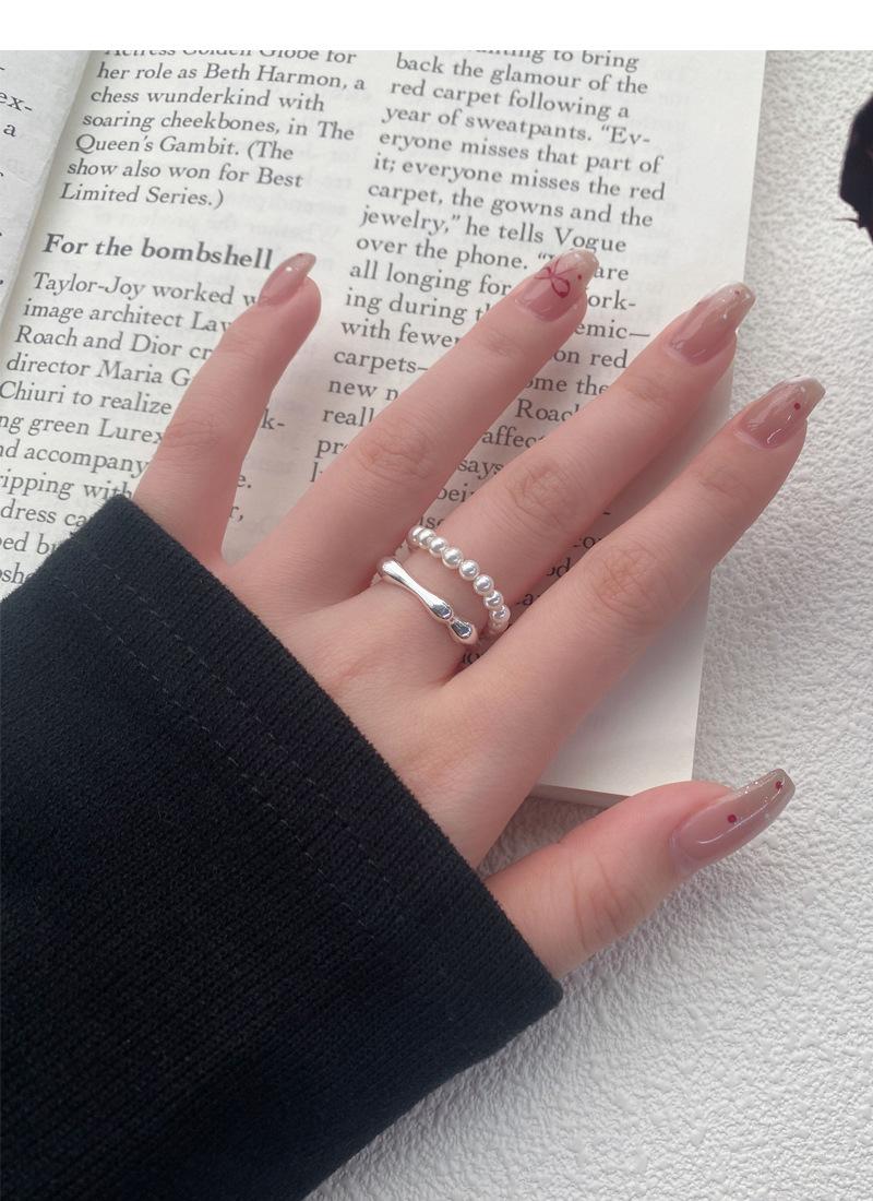 Anillo de perla de doble capa de plata esterlina S925 para mujer, diseño de nicho simple, sensación de temperamento frío, anillo abierto para dedo.