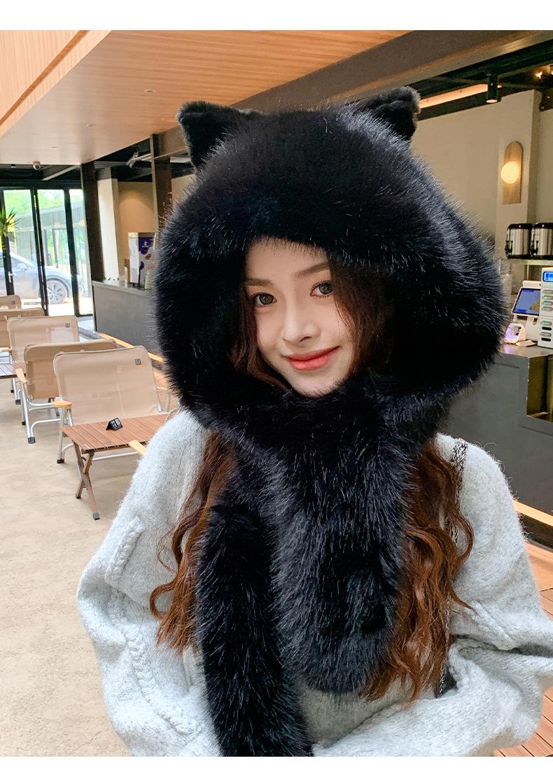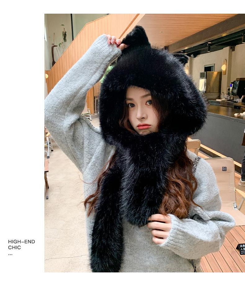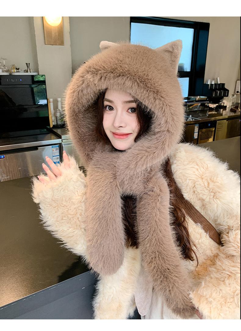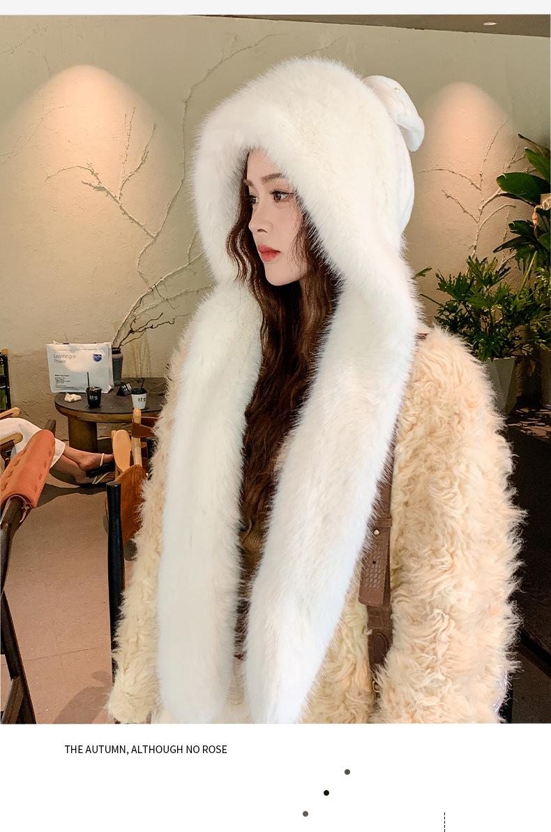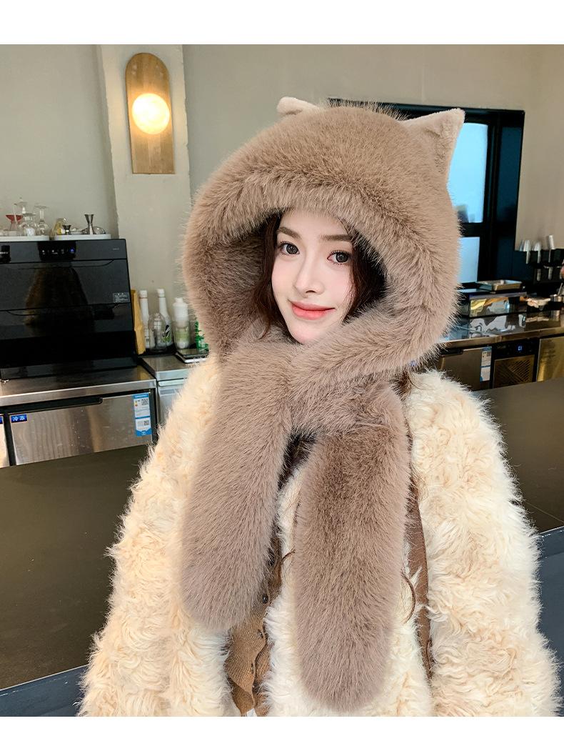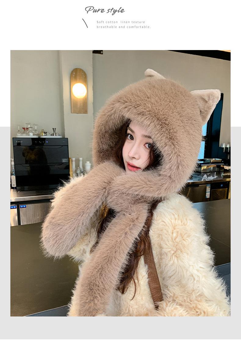 Gorro de Oso Cálido de Felpa Estilo Coreano Bufanda Conjunto de Dos Piezas Montar a Prueba de Viento Protección para los Oídos Sombrero Invierno Engrosado Combinación con Todo