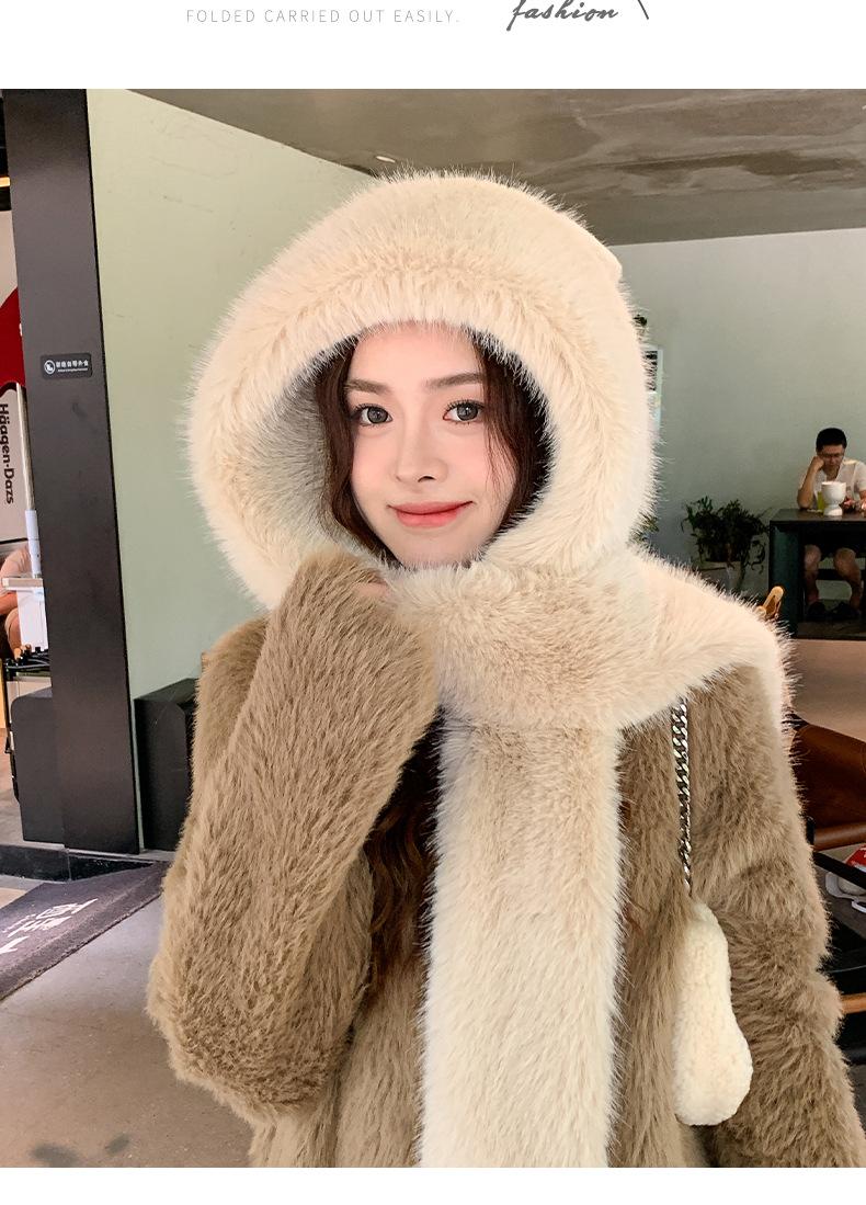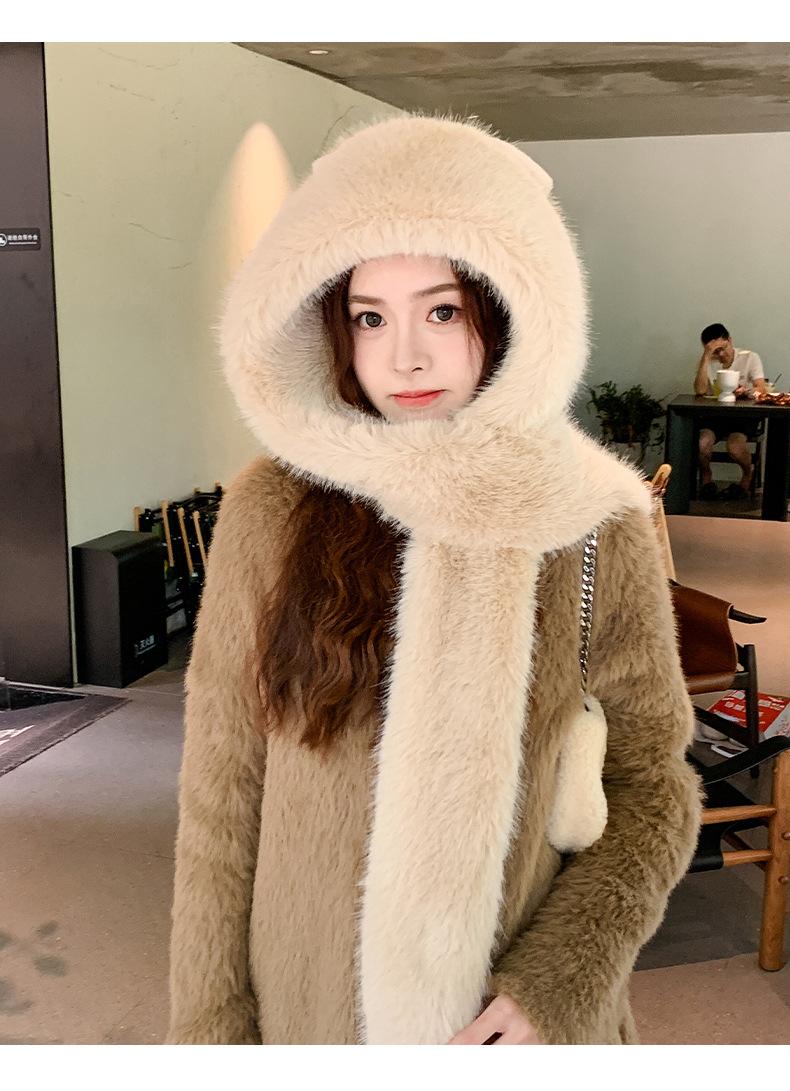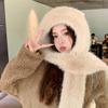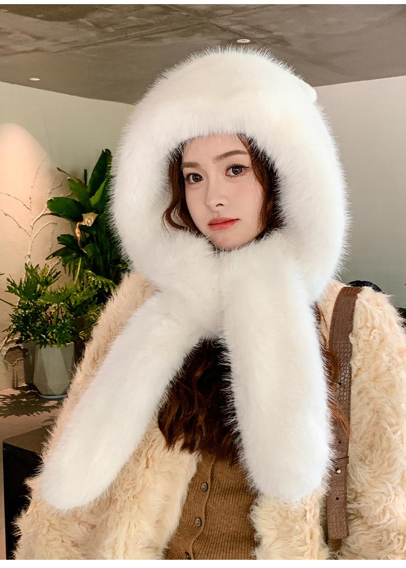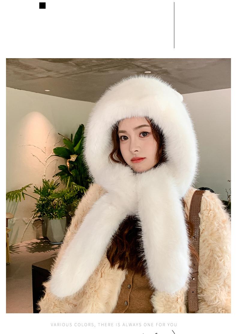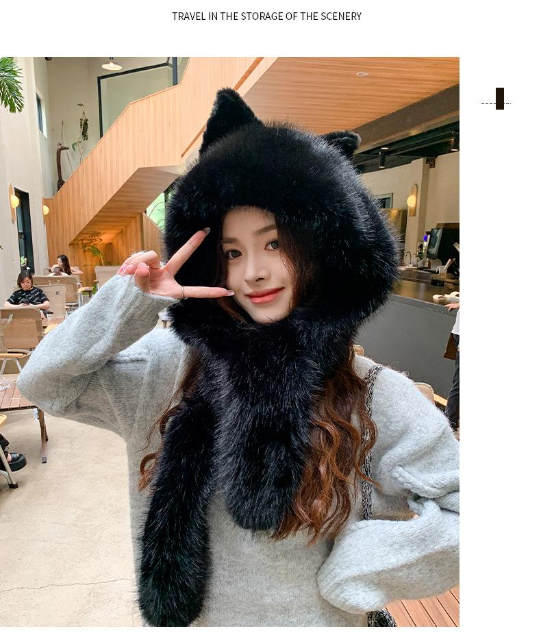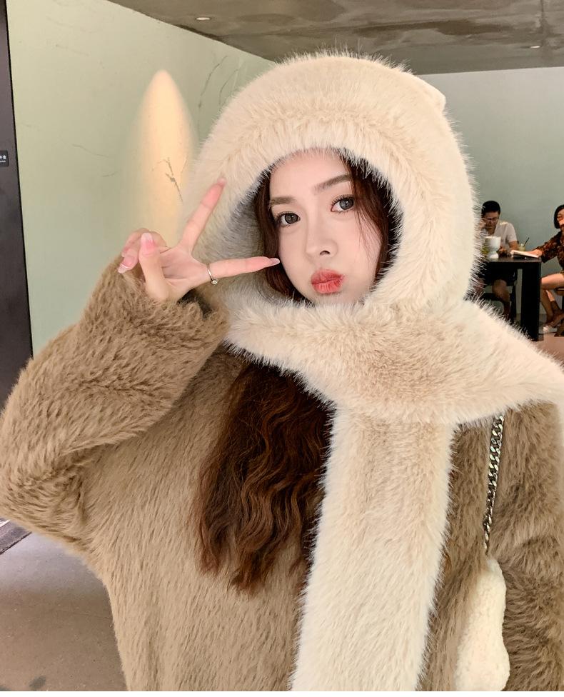 Gorro de Oso Cálido de Felpa Estilo Coreano Bufanda Conjunto de Dos Piezas Montar a Prueba de Viento Protección para los Oídos Sombrero Invierno Engrosado Combinación con Todo