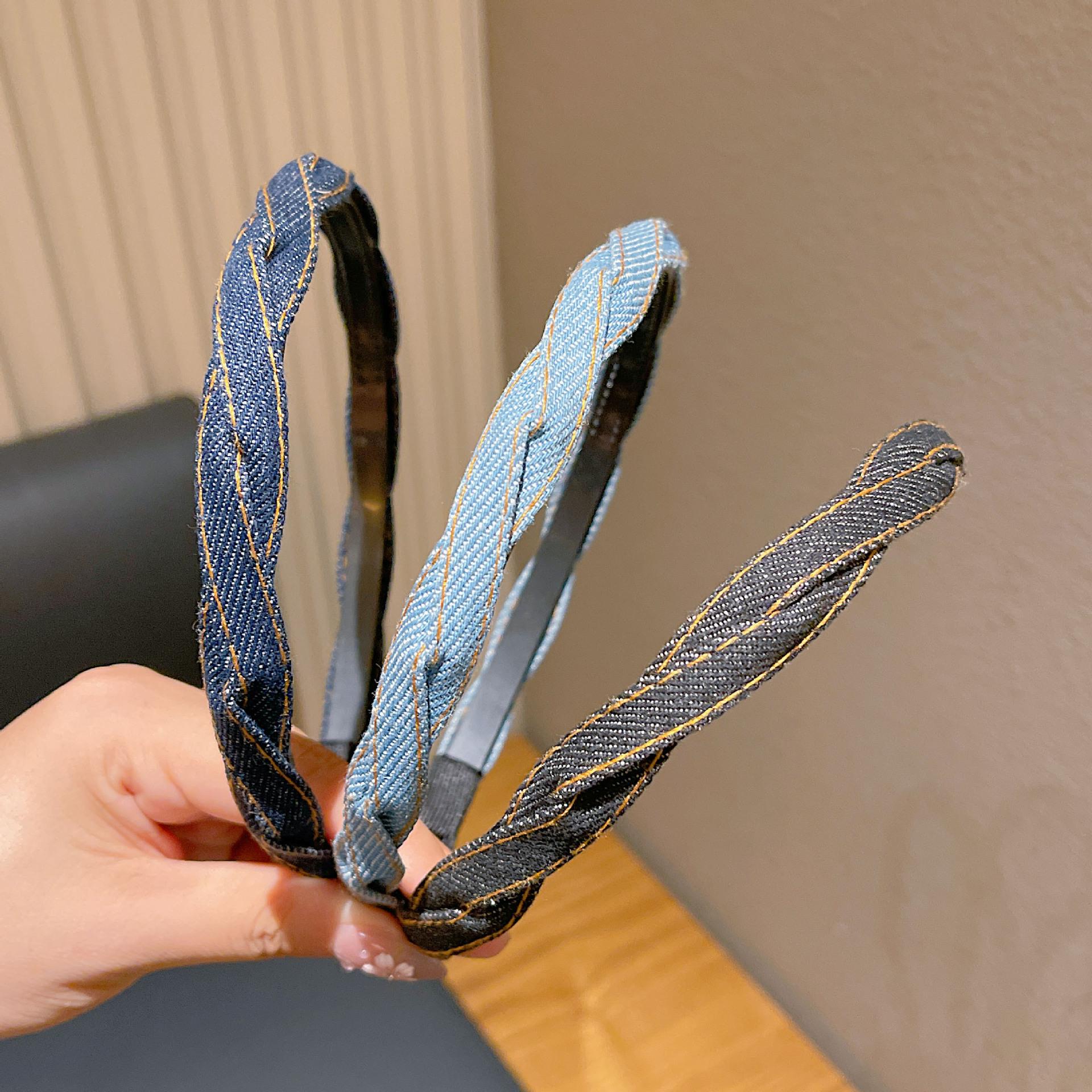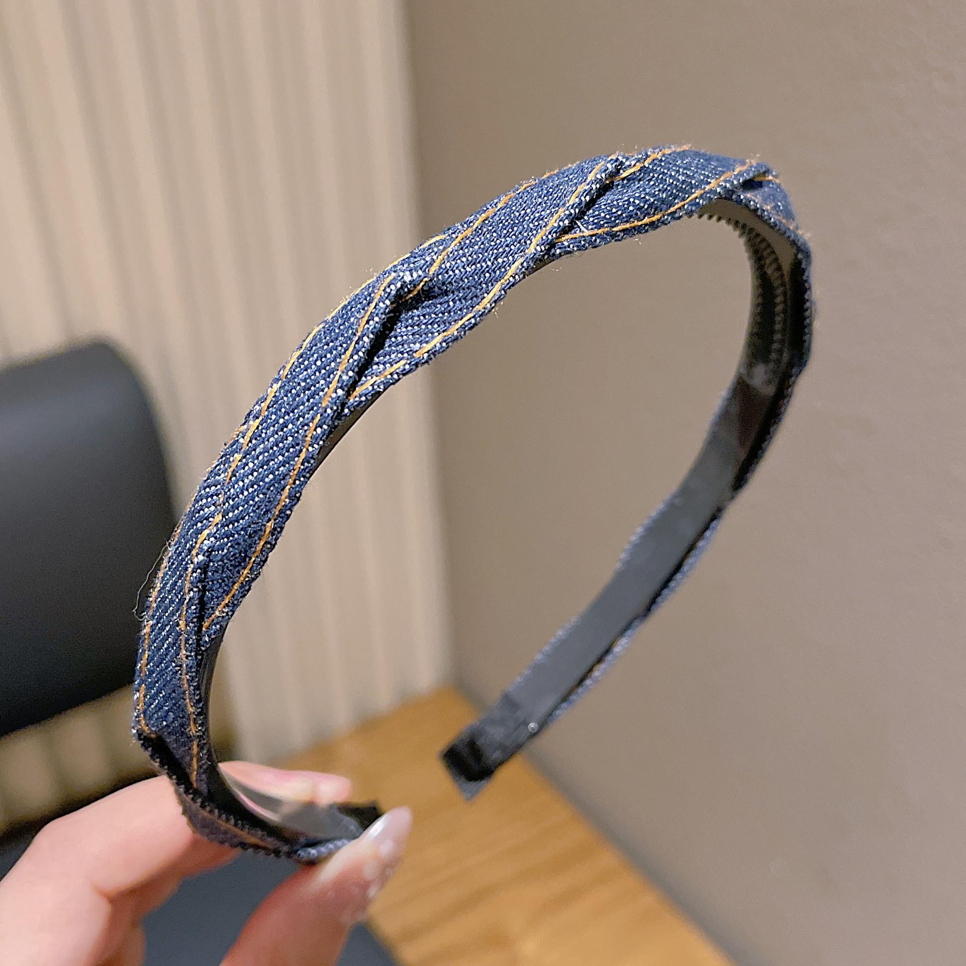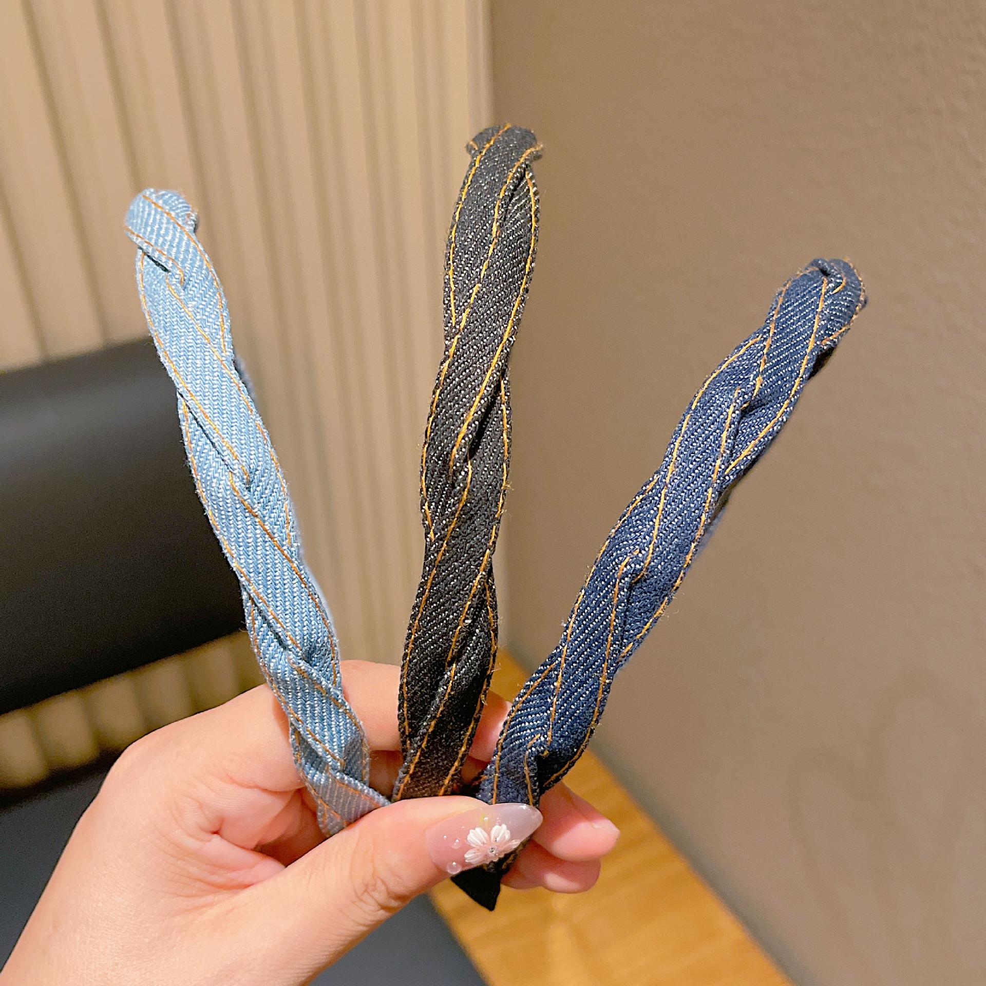 Diadema para el cabello 2024, estilo de celebridad de internet, temperamento coreano, tela vaquera sencilla, diadema torcida, antideslizante, lavable, con tarjeta de prensa