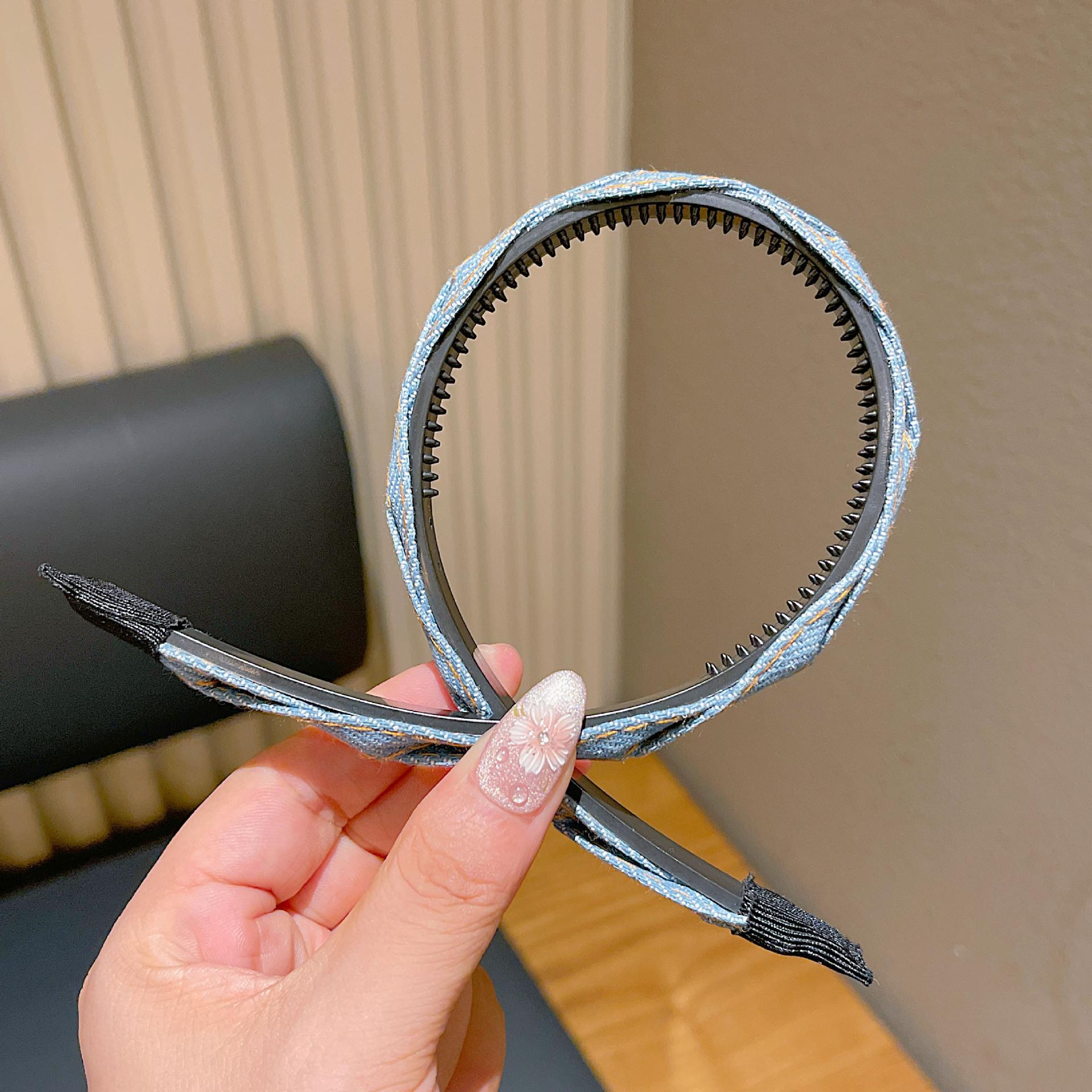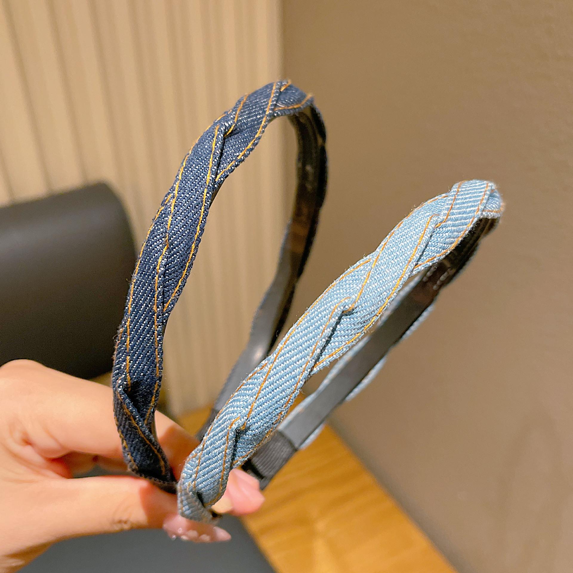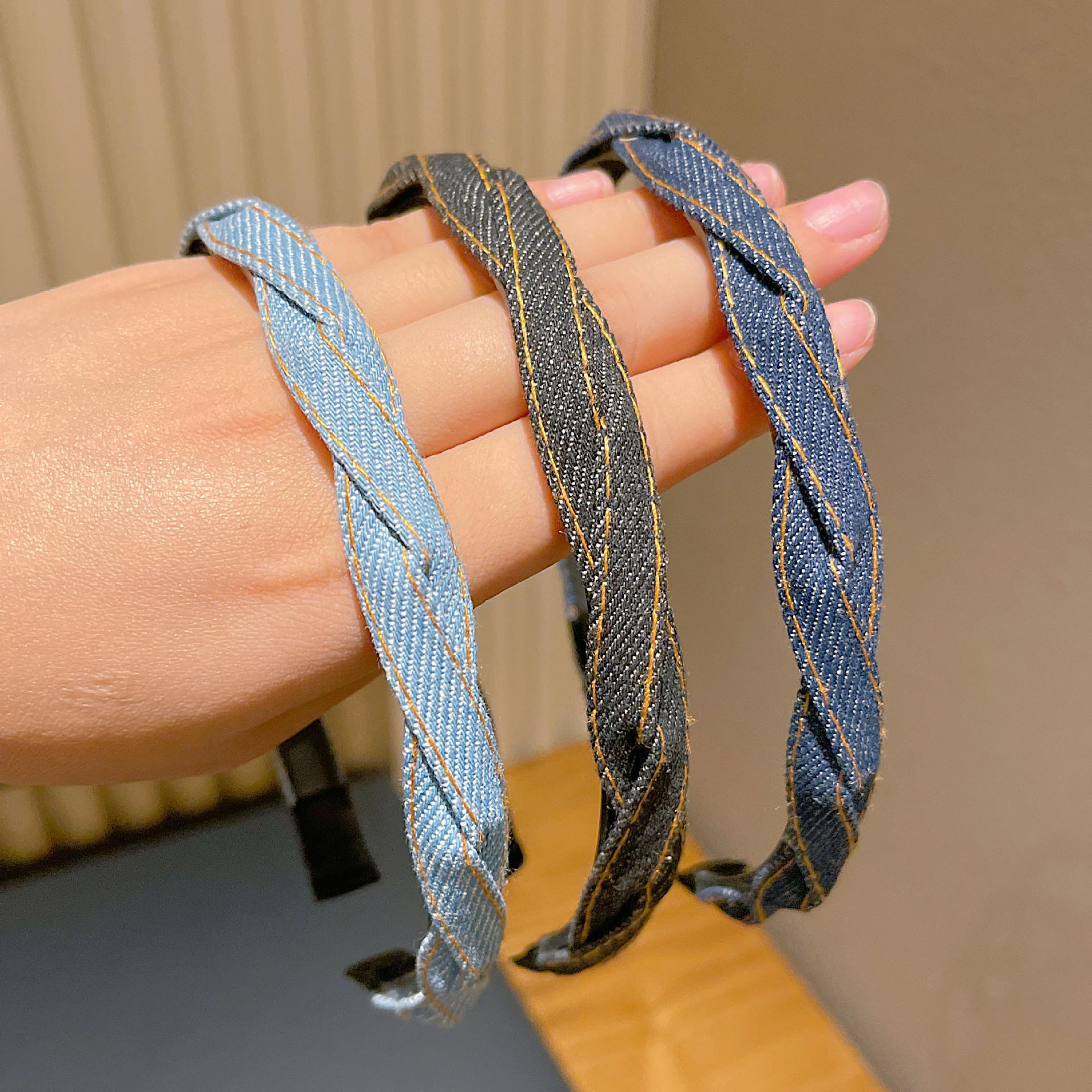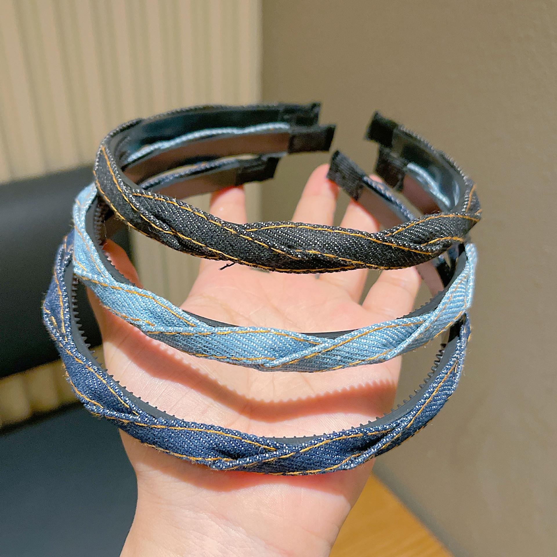 Diadema para el cabello 2024, estilo de celebridad de internet, temperamento coreano, tela vaquera sencilla, diadema torcida, antideslizante, lavable, con tarjeta de prensa