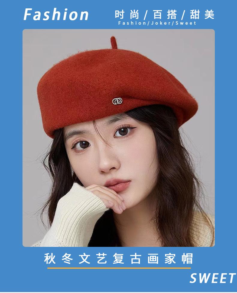 Boina pequeña de pintor retro artístico de otoño e invierno para mujer, nueva, ligera, de lujo, para actividades al aire libre y de gran sentido del humor.
