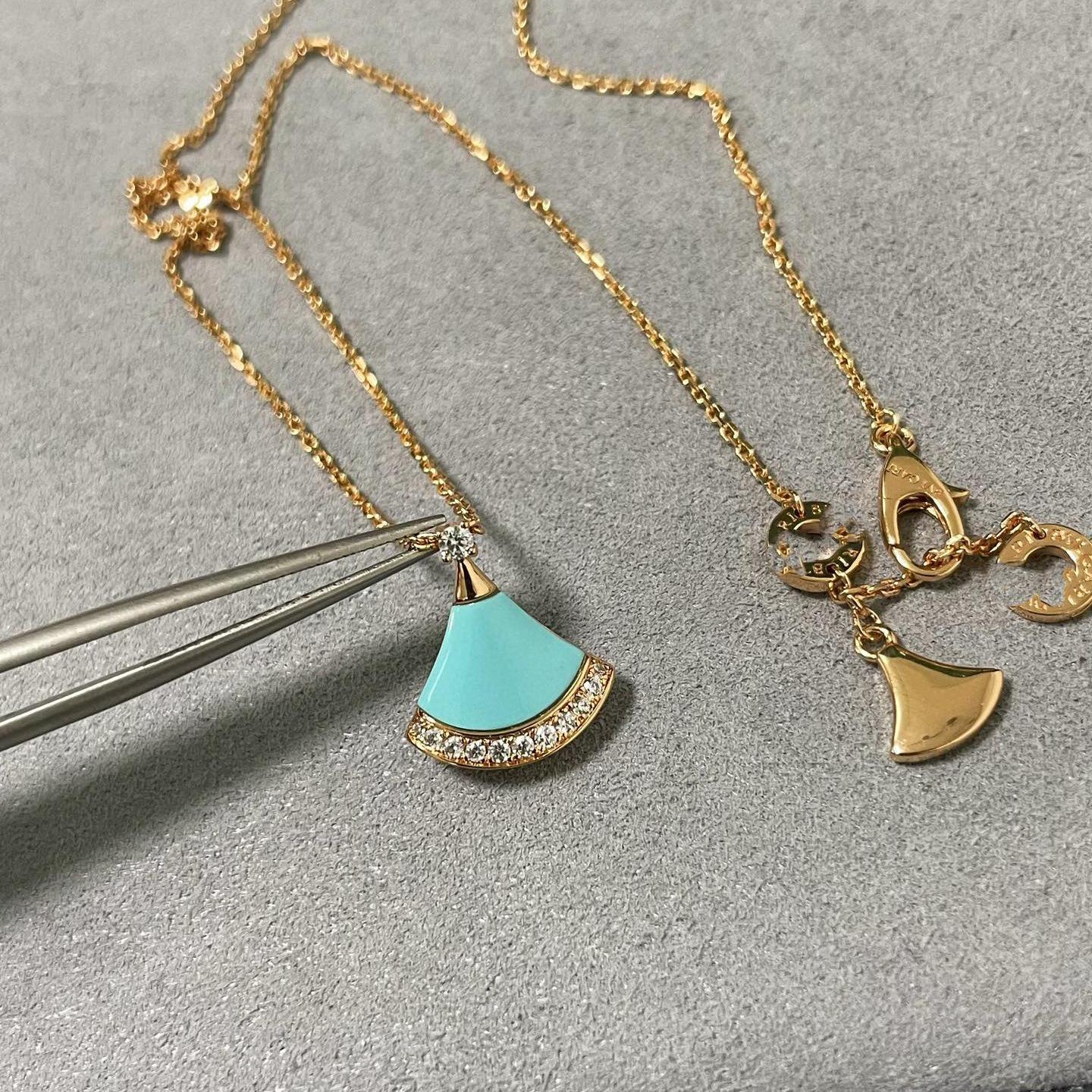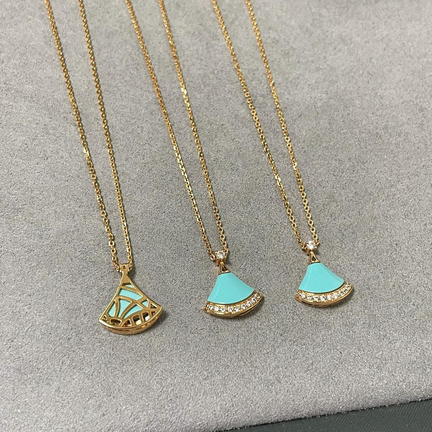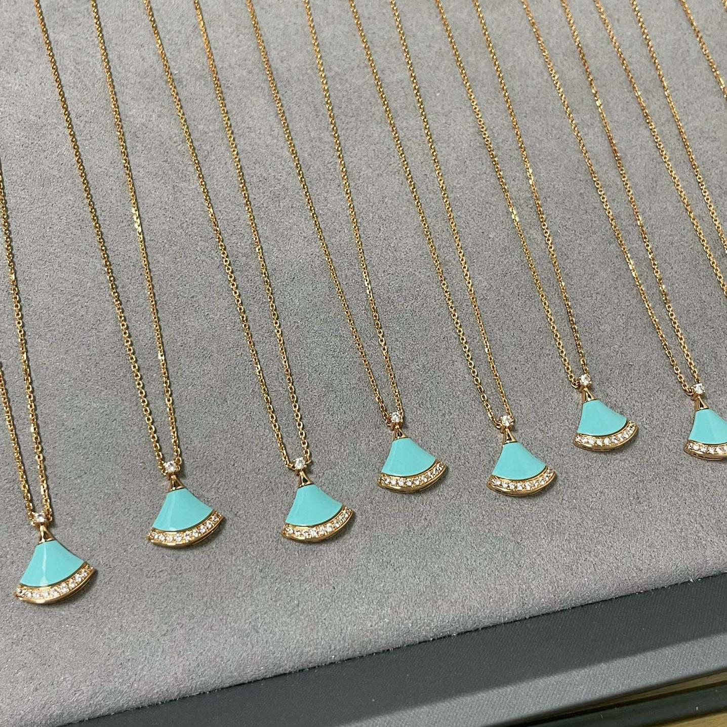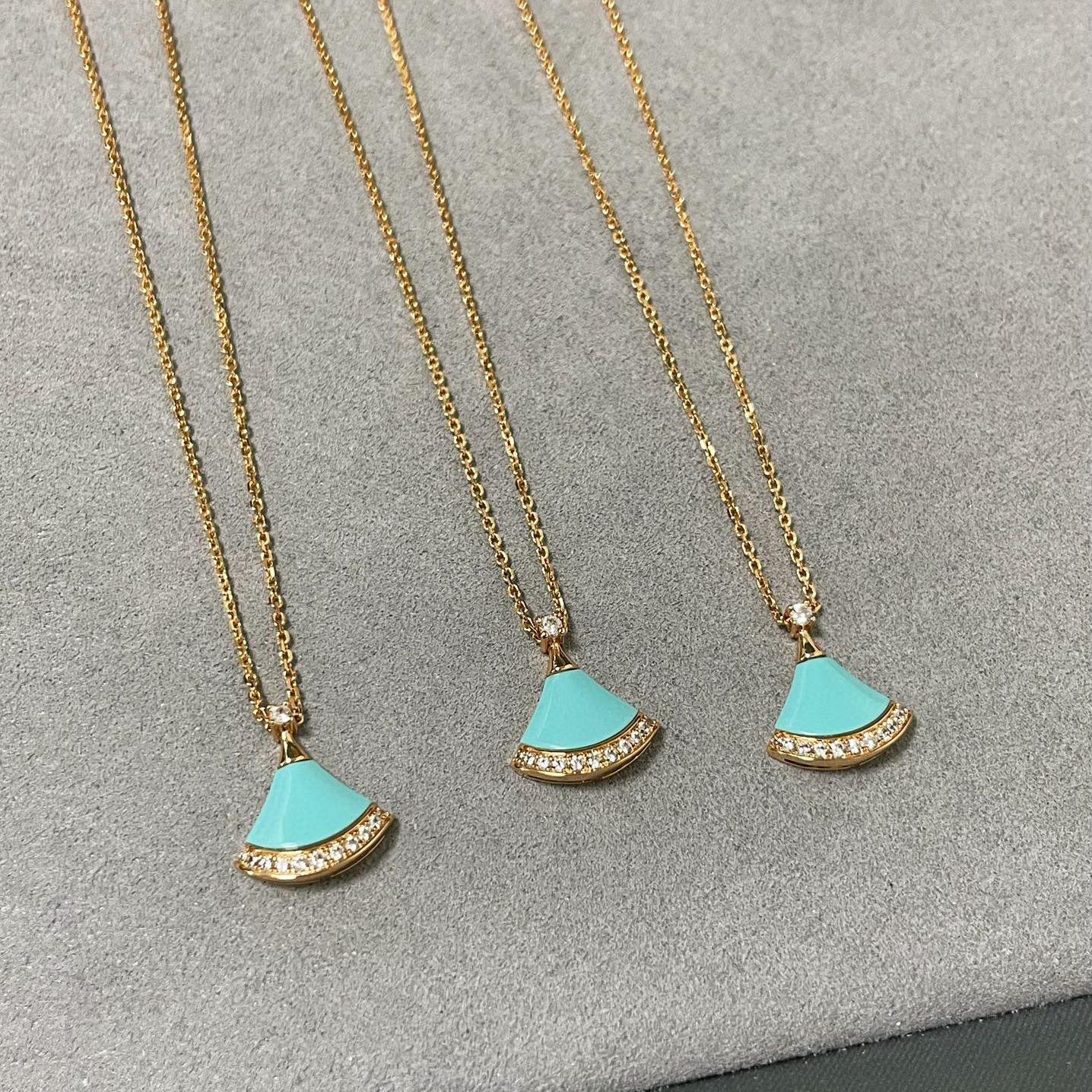 Collar Baojia Falda Pequeña en Forma de Abanico para Mujer Diamante de Alta Gama Turquesa Oro Rosa de Alta Gama Lujo Ligero Combinable Cadena Clavícula
