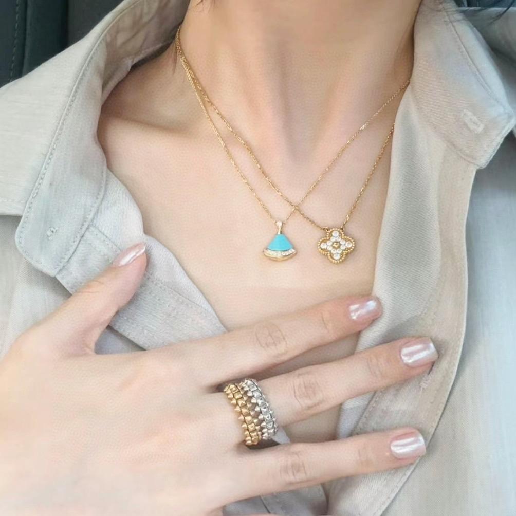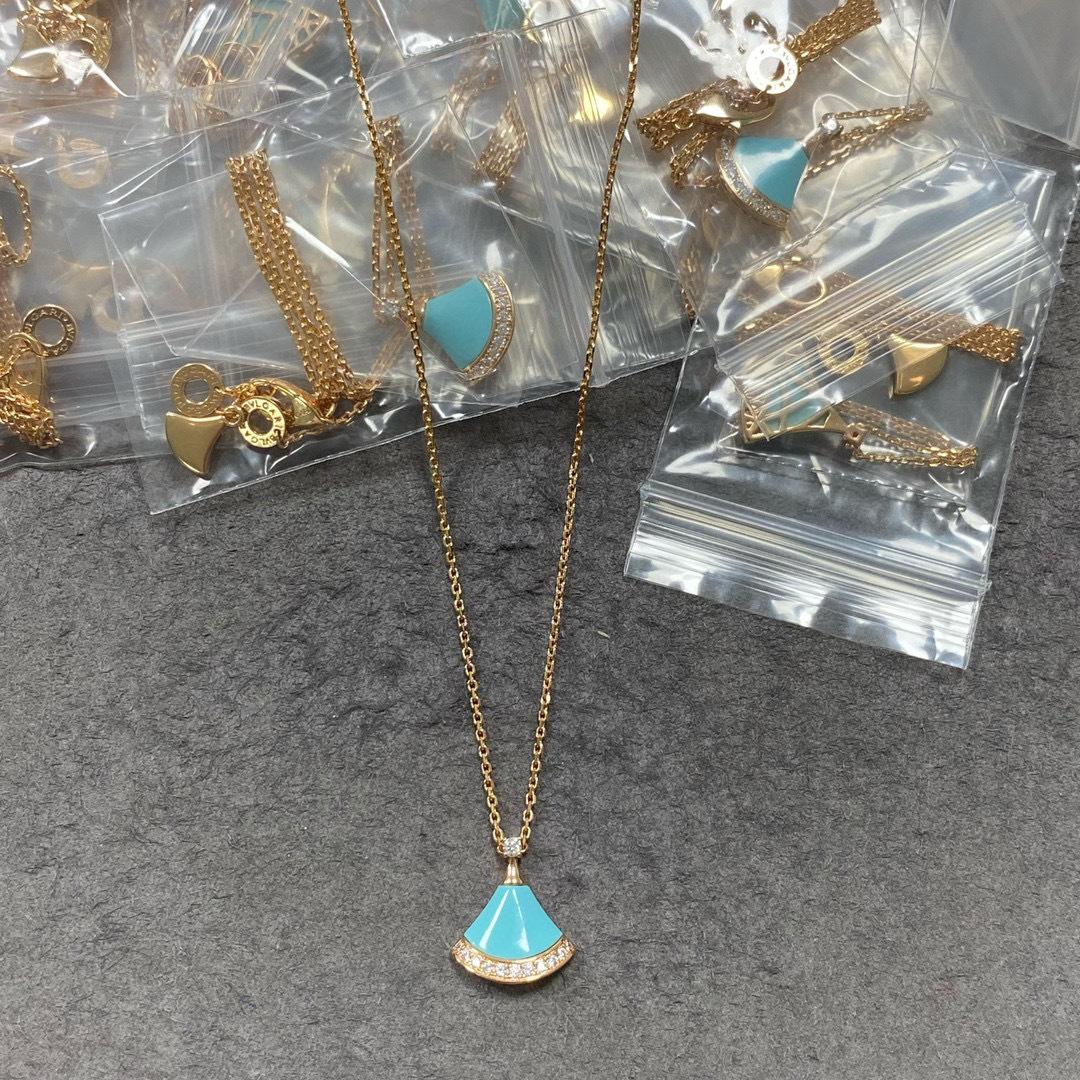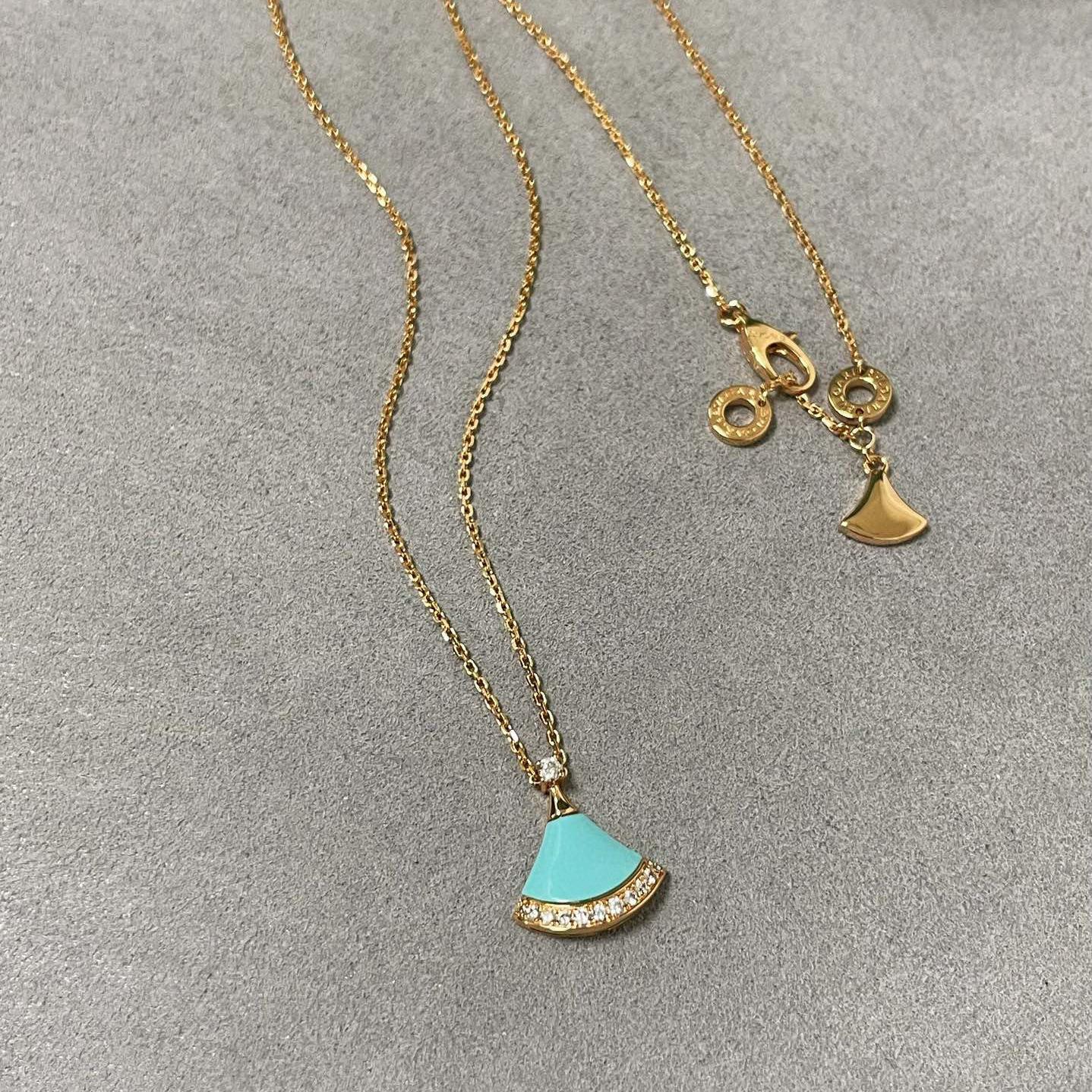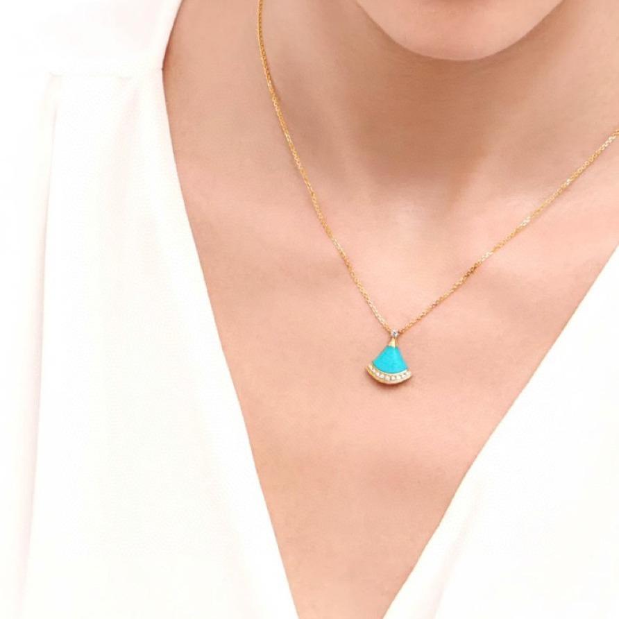 Collar Baojia Falda Pequeña en Forma de Abanico para Mujer Diamante de Alta Gama Turquesa Oro Rosa de Alta Gama Lujo Ligero Combinable Cadena Clavícula