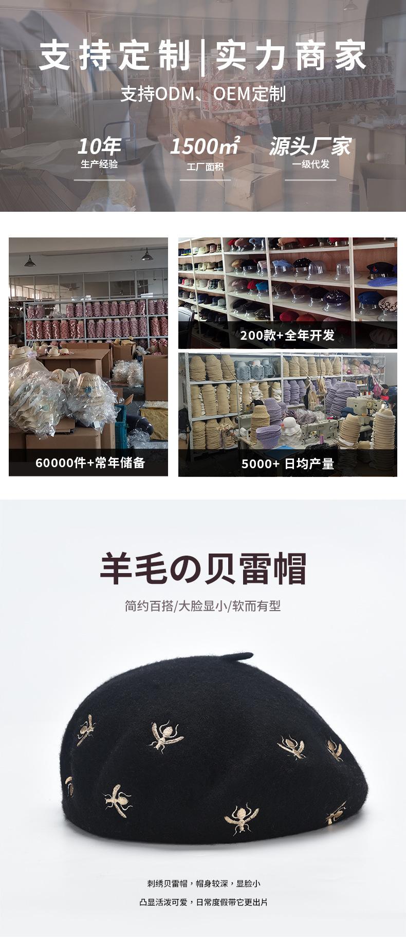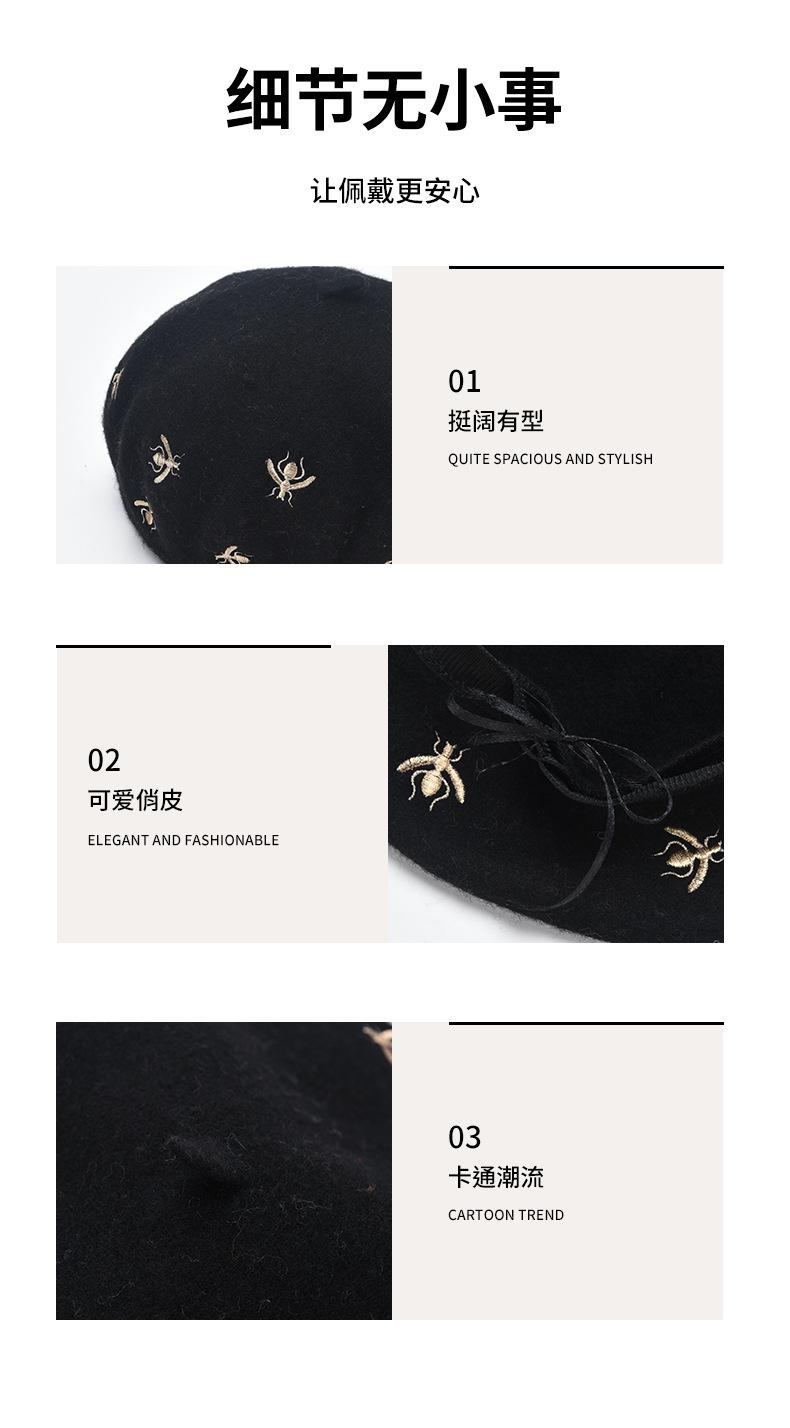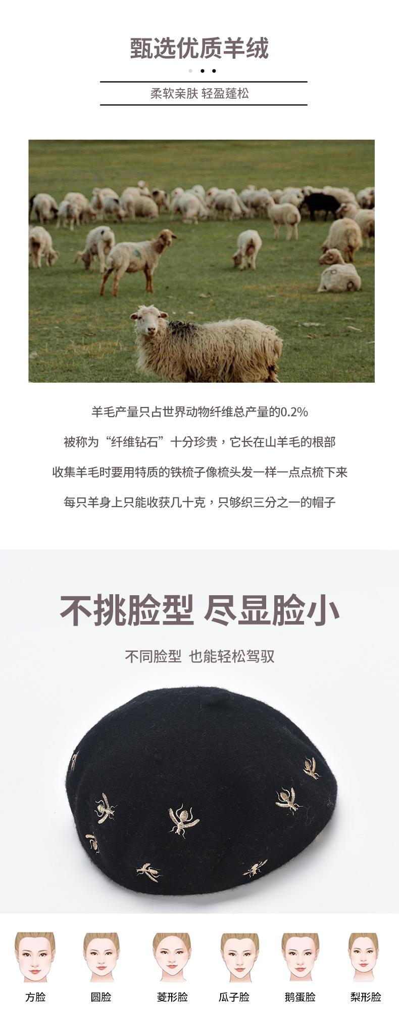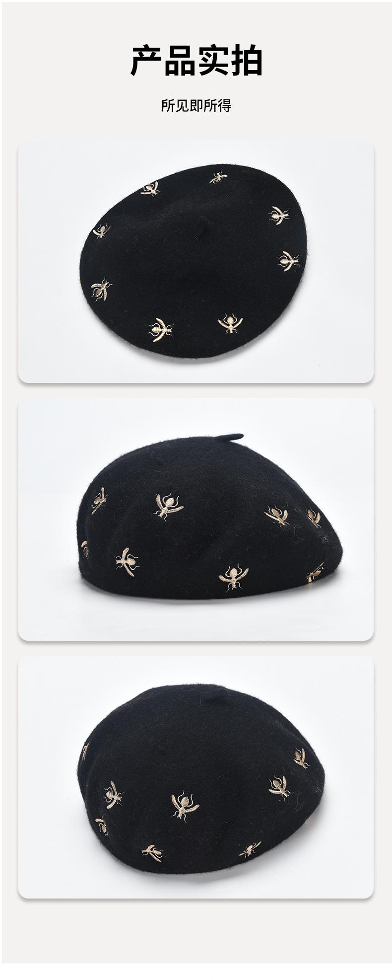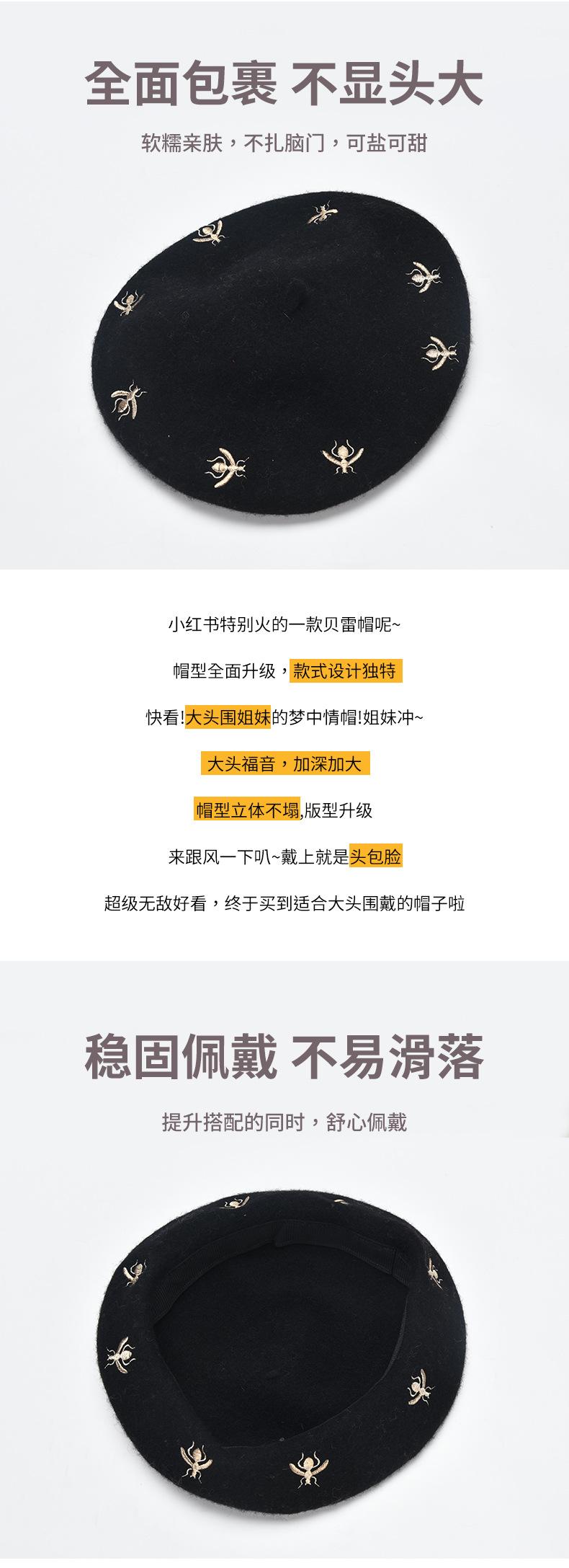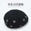 Boina bordada de lana para otoño e invierno, cálida, estilo coreano, británica, para pintor, combinable con todo, con cabeza grande y rostro visible, boina pequeña.