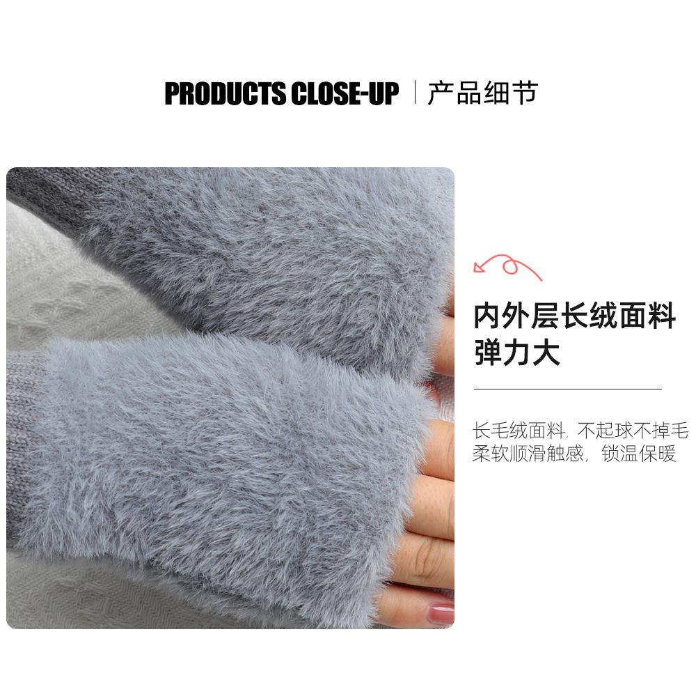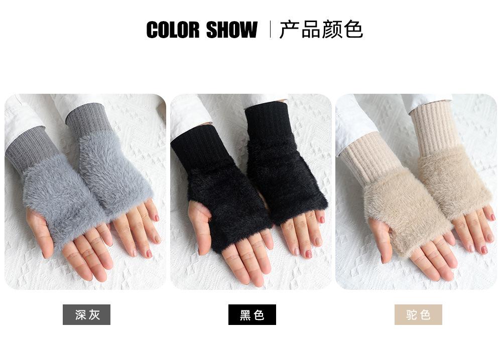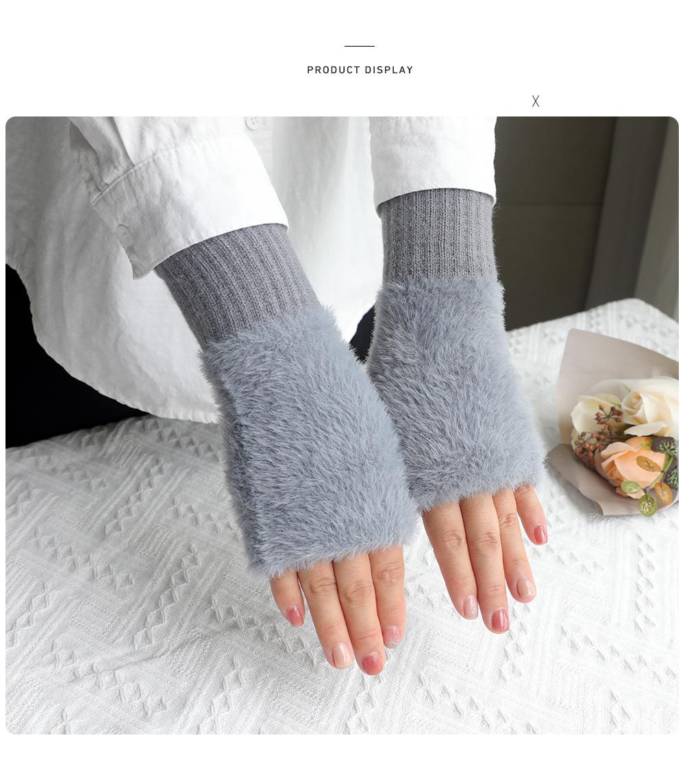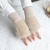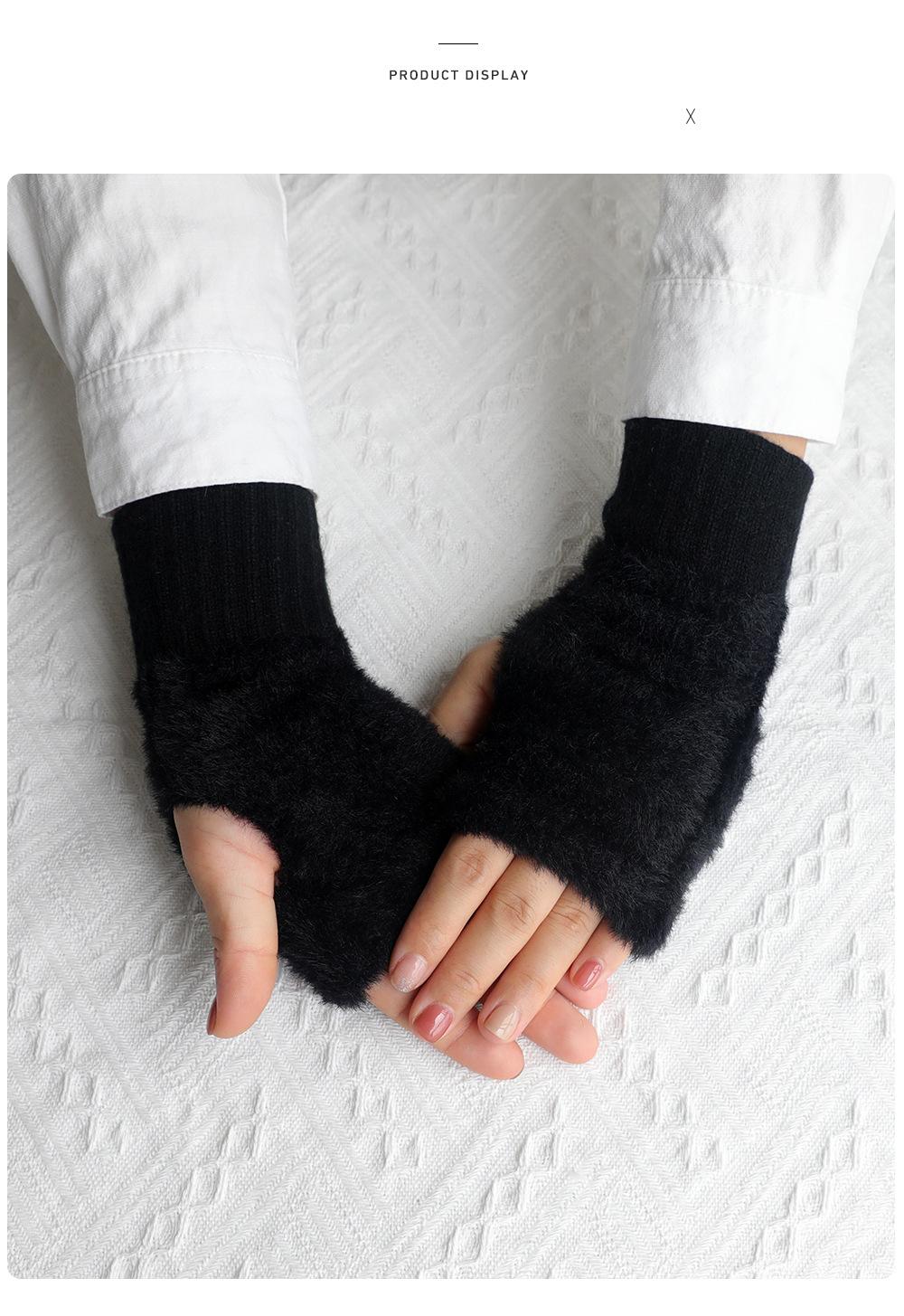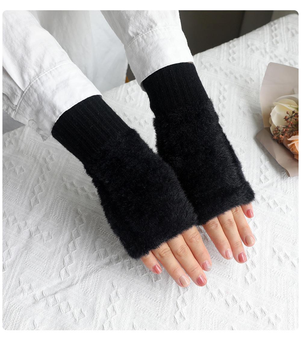 Guantes de medio dedo para mujer, de invierno, de felpa, cálidos, para estudiantes, para escribir, sin dedos, para mecanografía, tejidos, de medio dedo, guantes largos expuestos, con pulsera