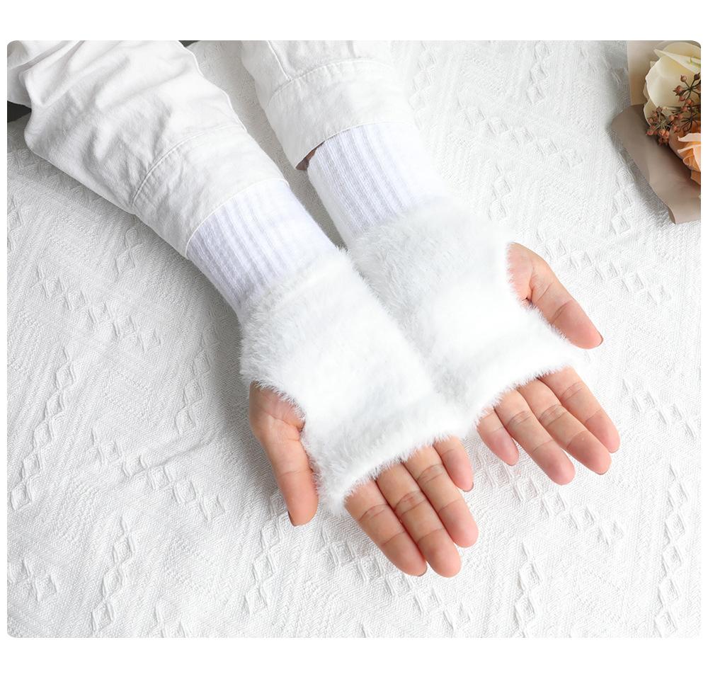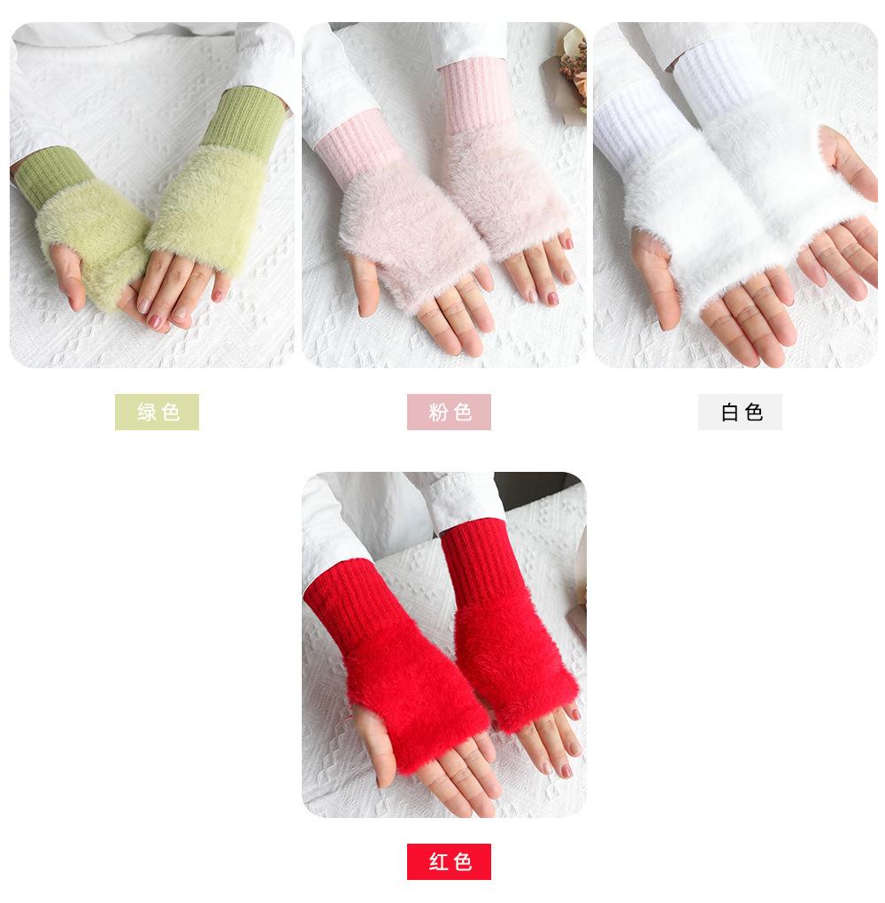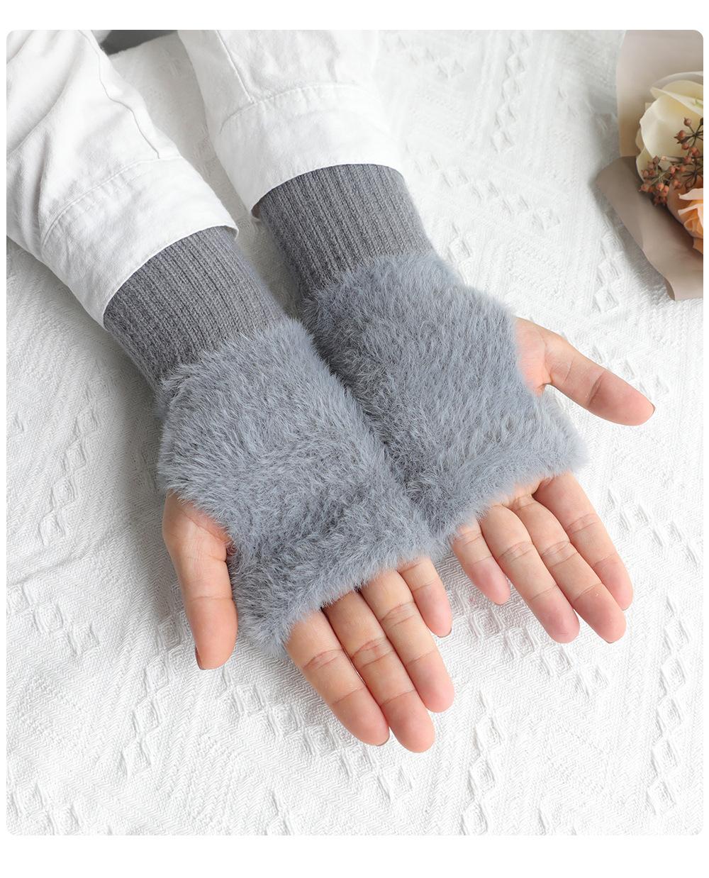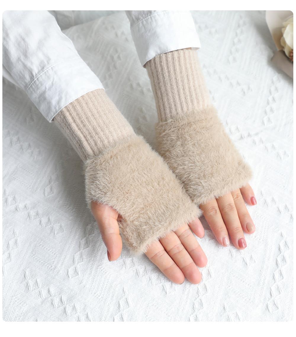 Guantes de medio dedo para mujer, de invierno, de felpa, cálidos, para estudiantes, para escribir, sin dedos, para mecanografía, tejidos, de medio dedo, guantes largos expuestos, con pulsera