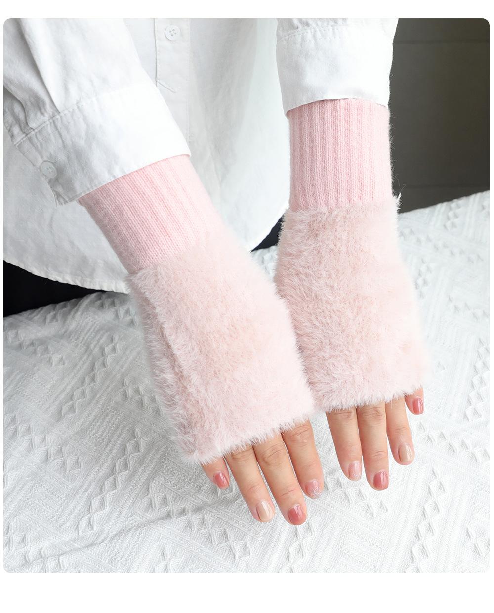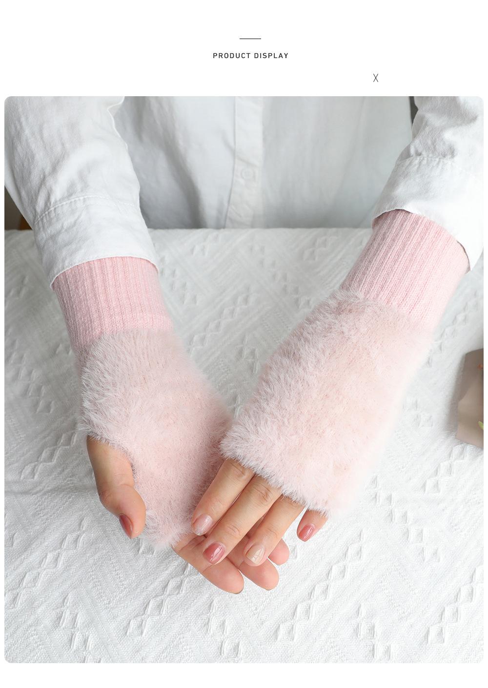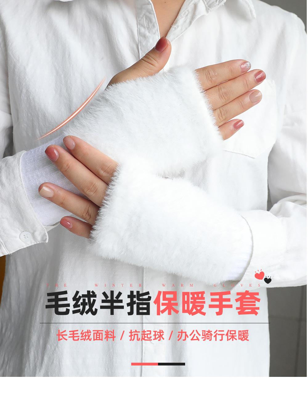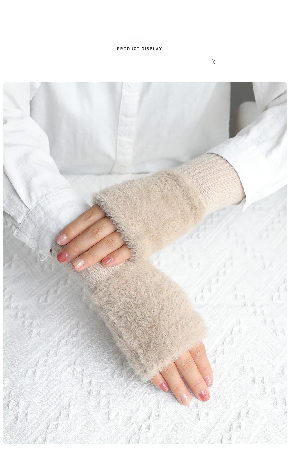 Guantes de medio dedo para mujer, de invierno, de felpa, cálidos, para estudiantes, para escribir, sin dedos, para mecanografía, tejidos, de medio dedo, guantes largos expuestos, con pulsera