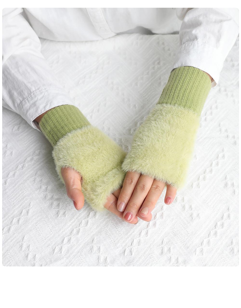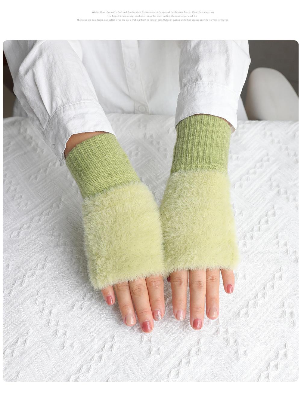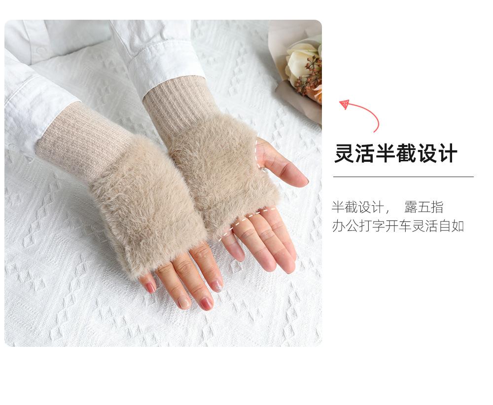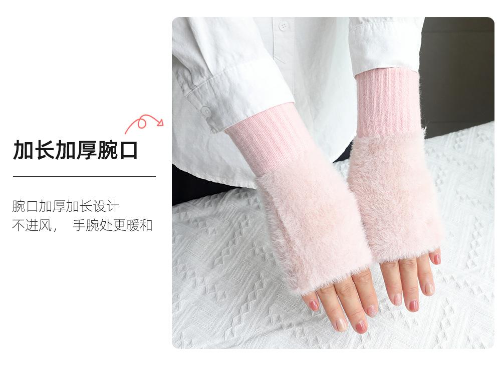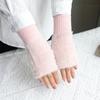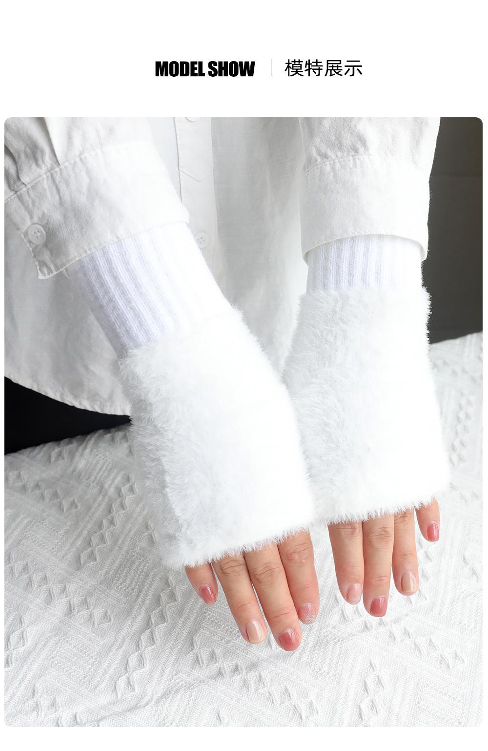 Guantes de medio dedo para mujer, de invierno, de felpa, cálidos, para estudiantes, para escribir, sin dedos, para mecanografía, tejidos, de medio dedo, guantes largos expuestos, con pulsera