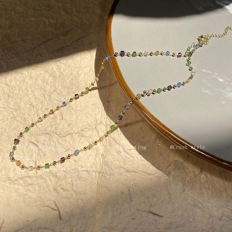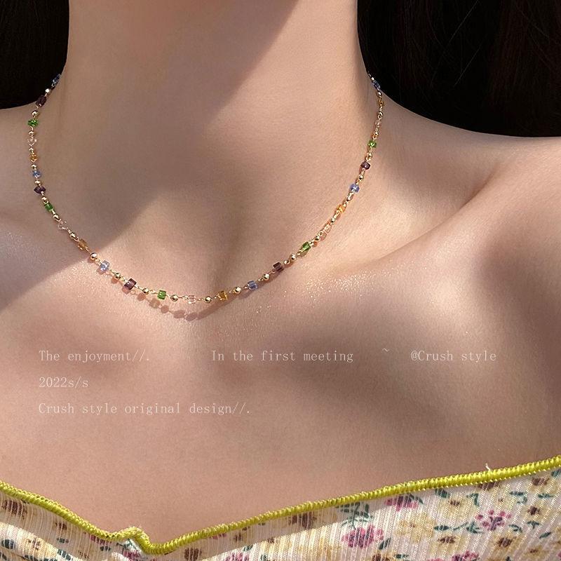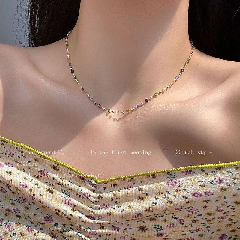 Collar de cuentas de cristal de nuevo color 2024, cadena de clavícula para mujer, diseño de minoría de verano, gargantilla sencilla
