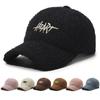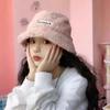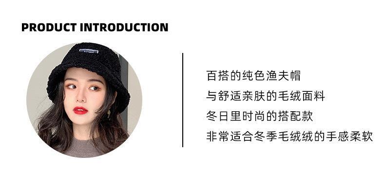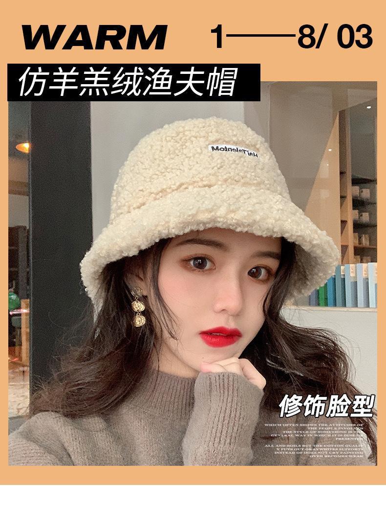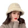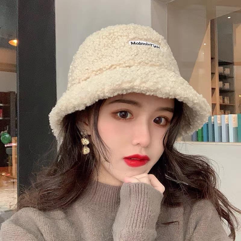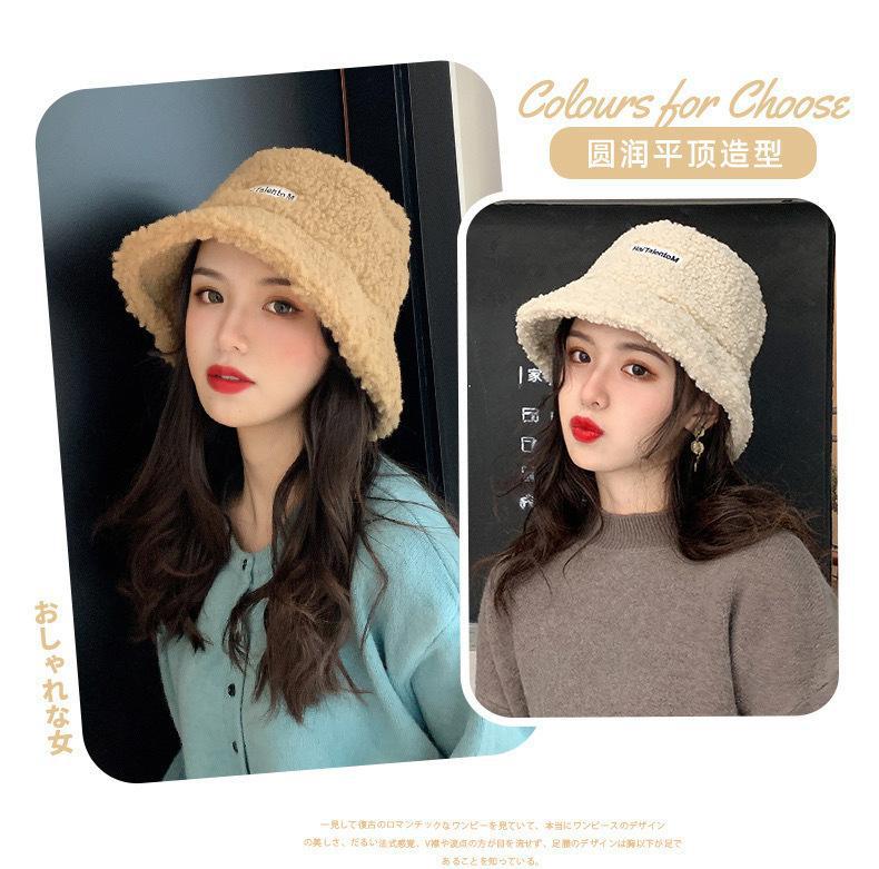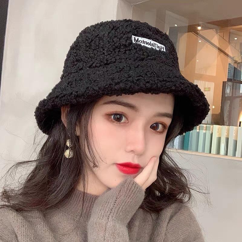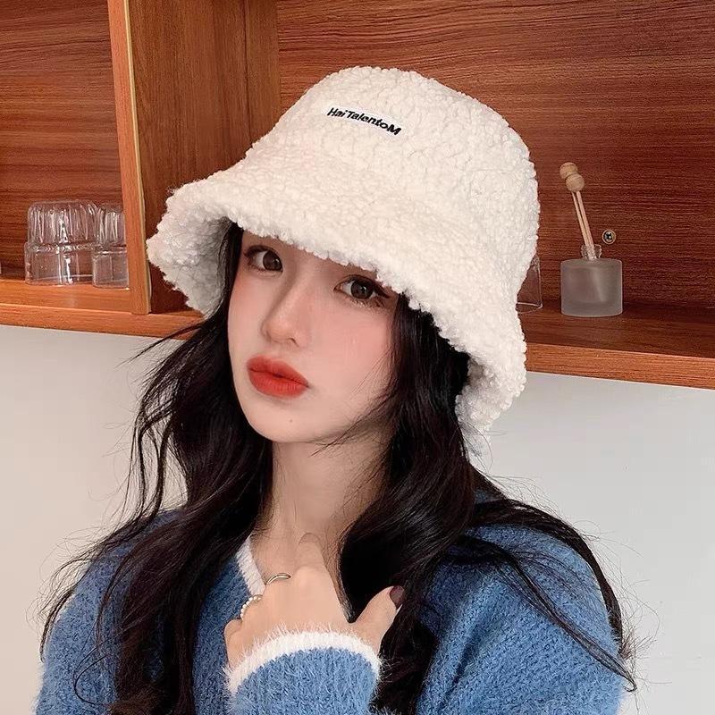 Sombrero de cubo cálido y versátil de lana de cordero estilo japonés para otoño e invierno con letra bordada, moda coreana, sombrero cloché de felpa