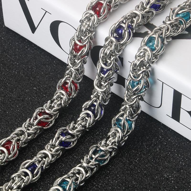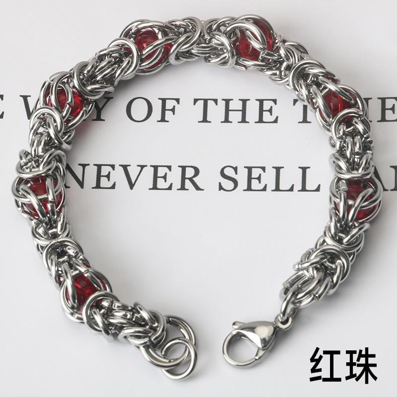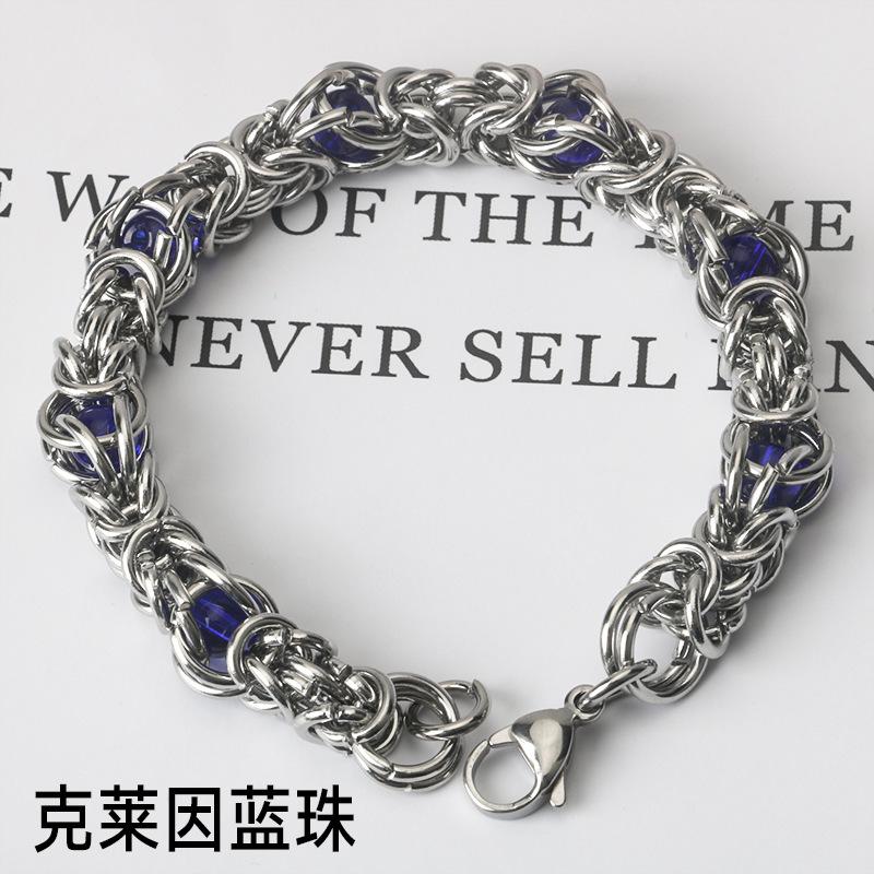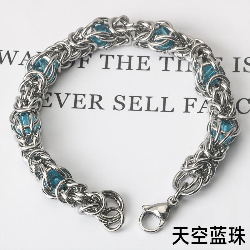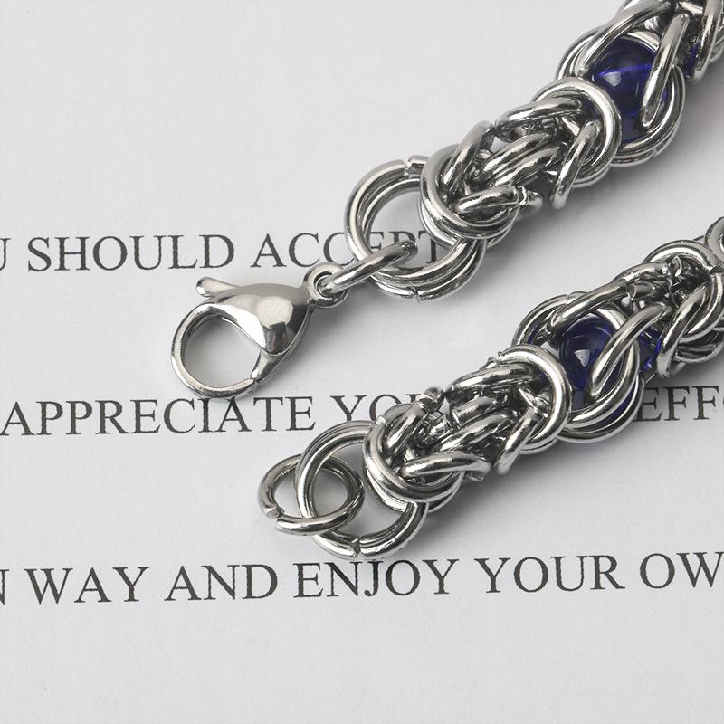 Pulsera de Acero Inoxidable de Lujo Ligero Moderna Cool Moda Alto Diseño Hecha a Mano con Cuentas Costura Acero Titanio para Hombre y Mujer