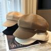 Boina de lengua de pato estilo coreano negra para mujer, para primavera y otoño, informal, para exteriores, con cara pequeña, estilo francés, retro, estilo británico, sombrero octogonal.