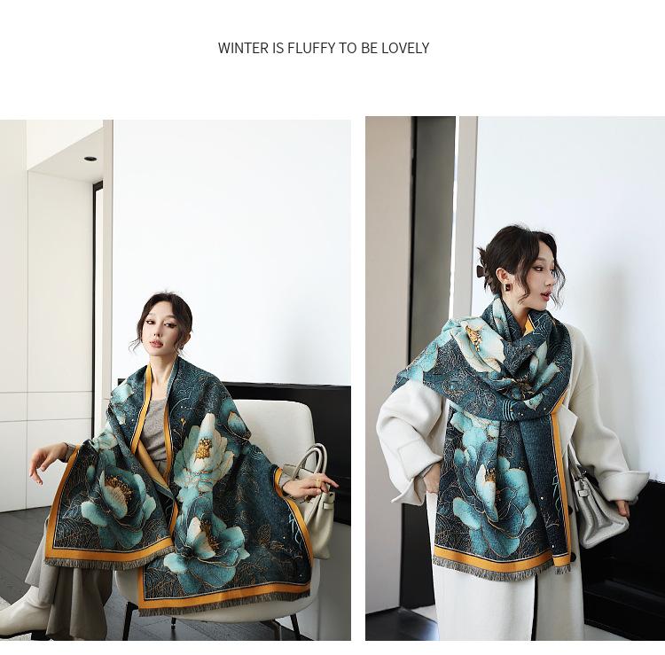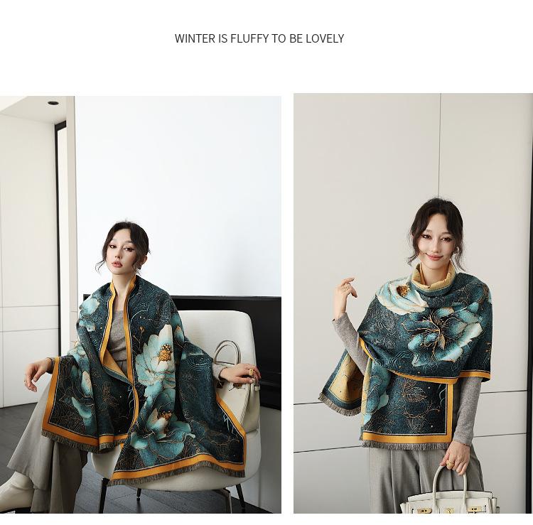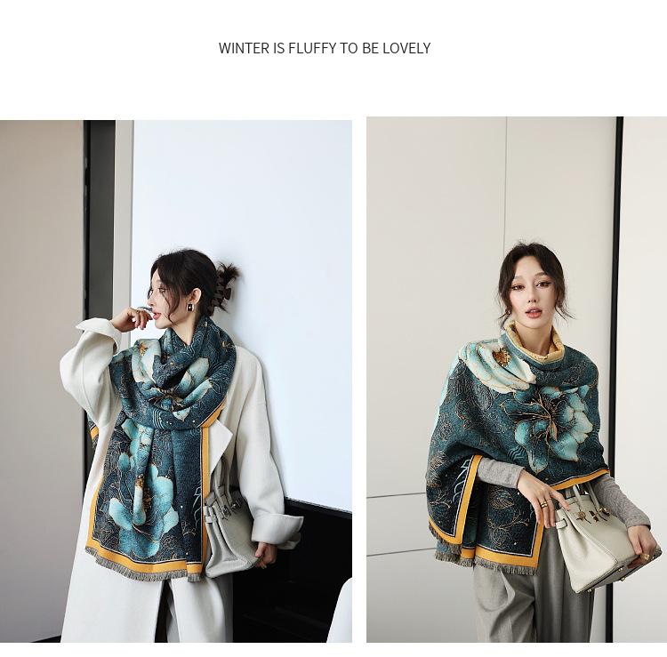 Bufanda de cachemira de nueva moda para otoño e invierno, gruesa, para mujer, combina con todo, cálida, fría, de doble cara, chal de aire acondicionado