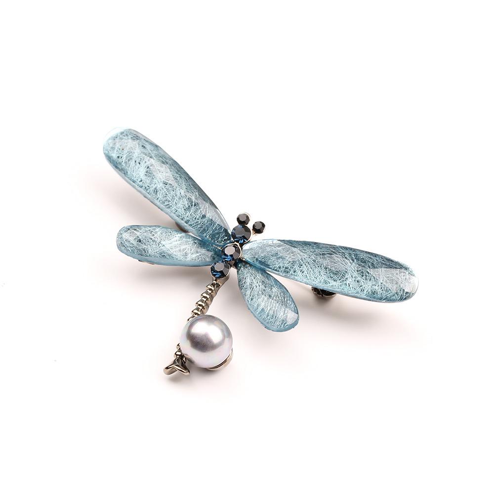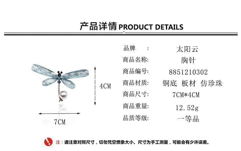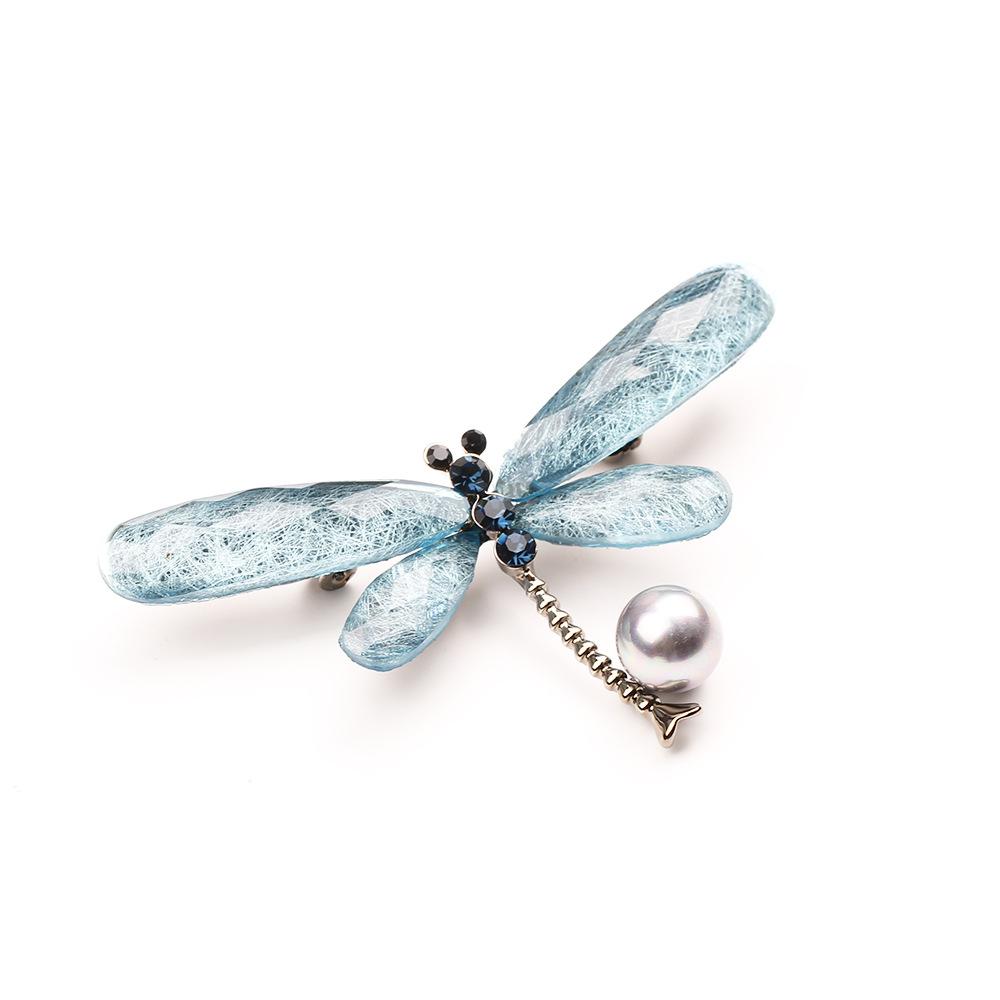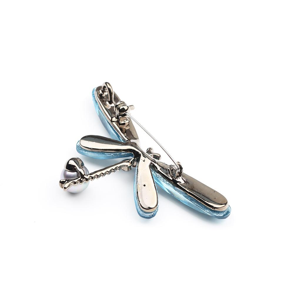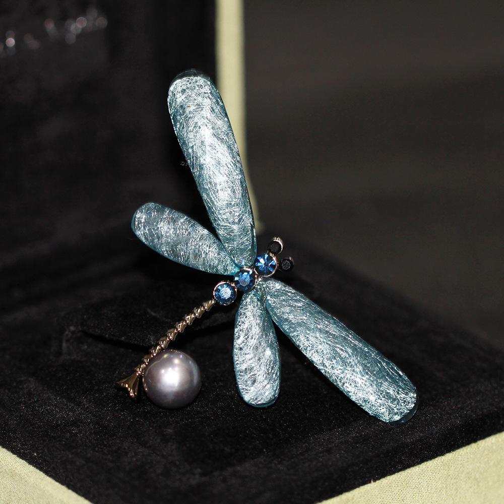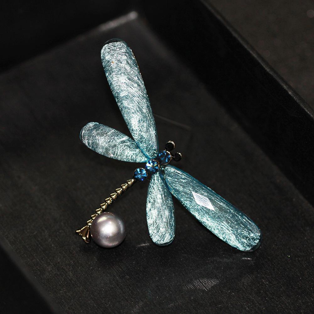 Broche clásico de libélula con placa azul Joker, temperamento, chapado en oro, broche de insecto con perla de imitación, elegante ramillete antiluz.