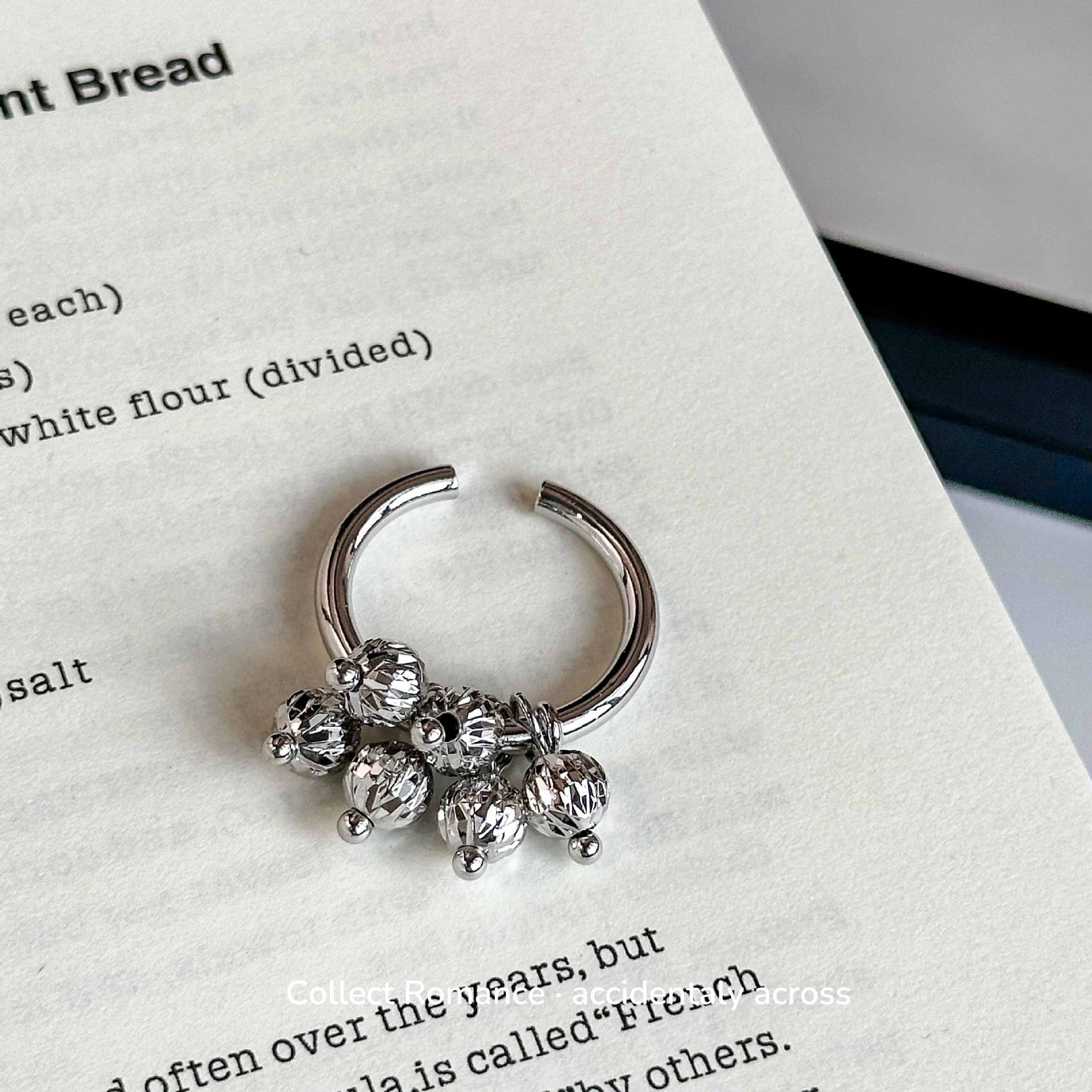 Anillo colgante redondo de diseño retro francés, diseño de nicho, anillo para dedo índice con cuentas, estilo coreano, 2024