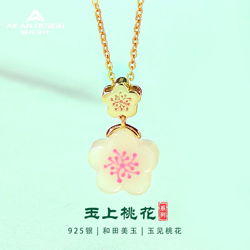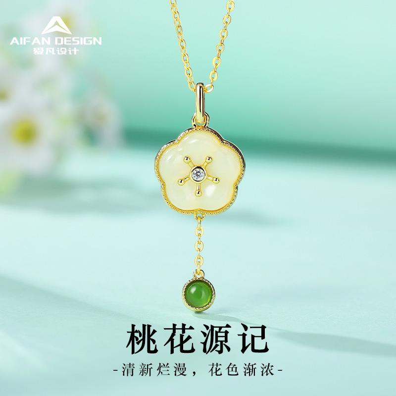 Nuevo estilo jade flor de durazno jade Hetian collar femenino primavera y verano pequeño fresco plata esterlina s925 de venta caliente jade joyería de mano al por mayor