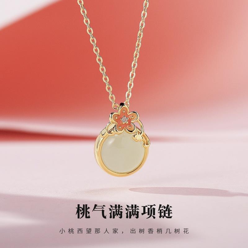Collar de plata esterlina s925 de moda lleno de colgante de jade melocotón y nefrita verano fresco y dulce collar de flor de melocotón al por mayor