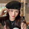 Boina estilo coreano para mujer, de verano, fina, negra, diseño nicho, estilo retro británico, con ondas grandes, sombrero capullo, a la moda.