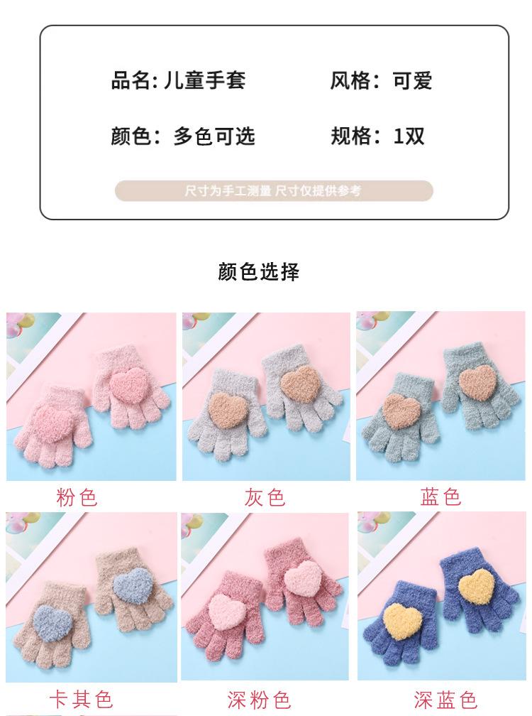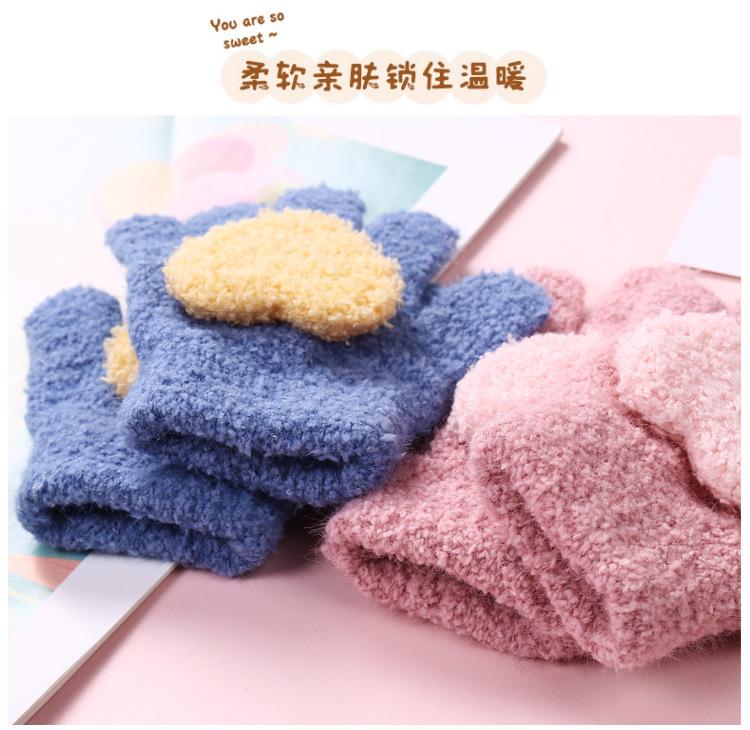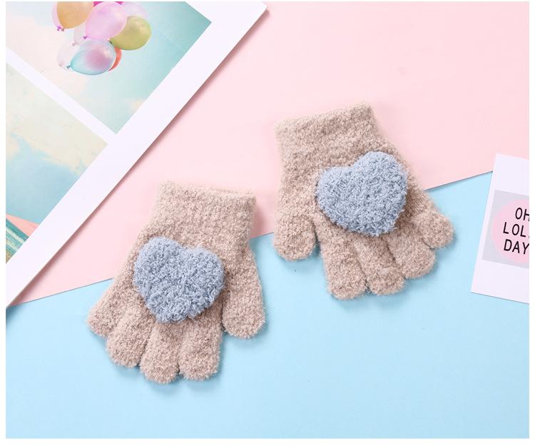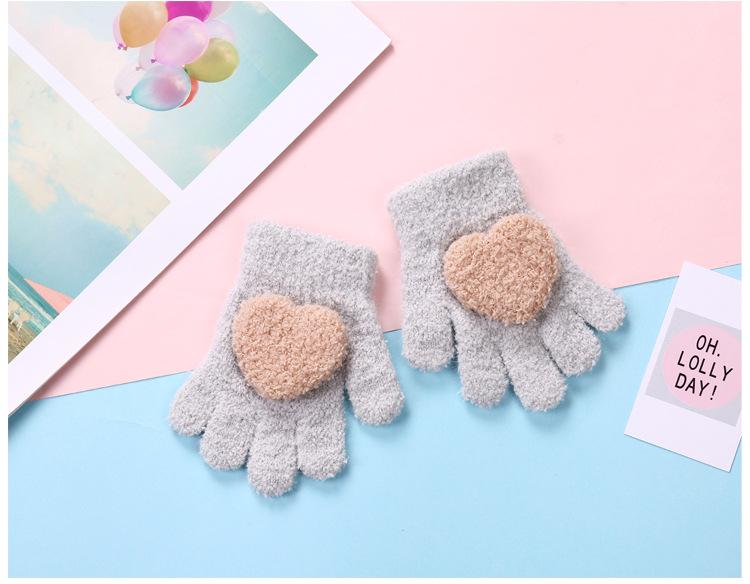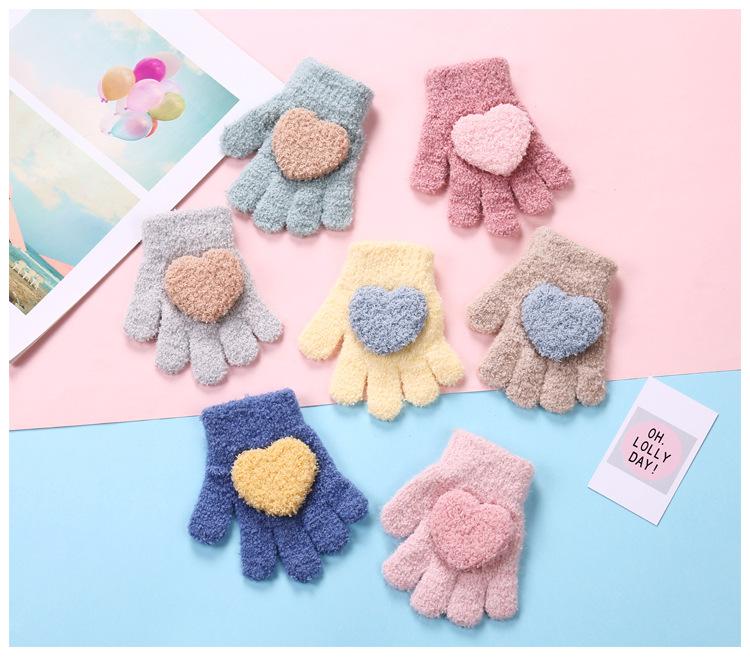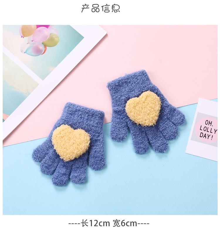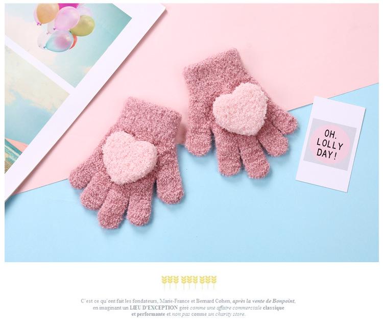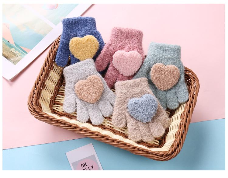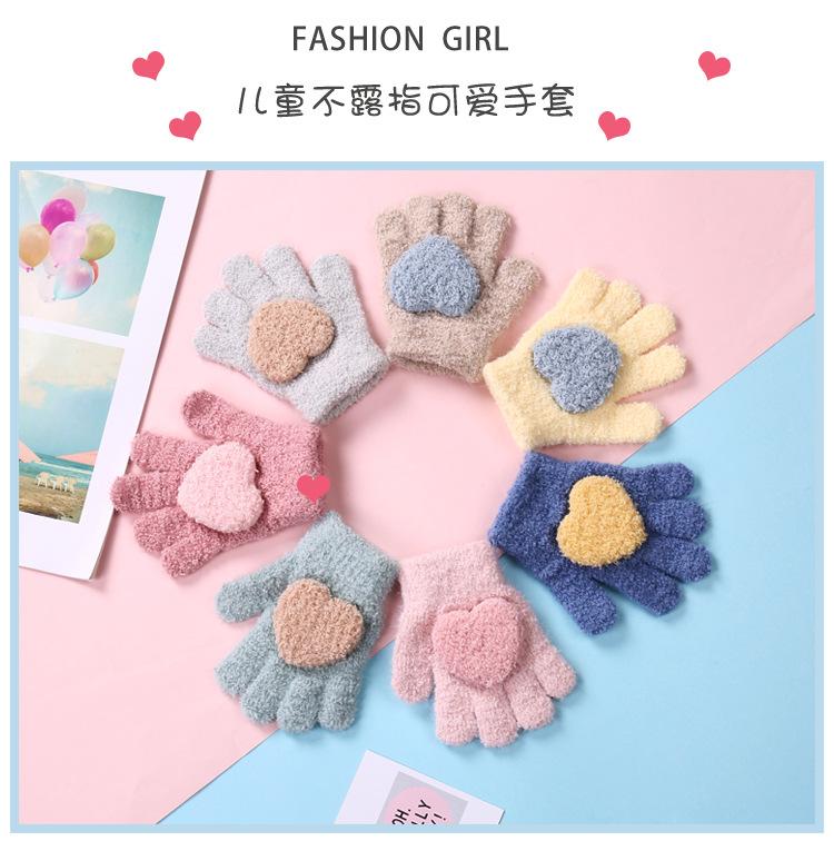 Guantes para niños otoño e invierno nuevos amor cálidos guantes de dedo niña fuera a prueba de viento cálidos guantes de cinco dedos forrados de vellón