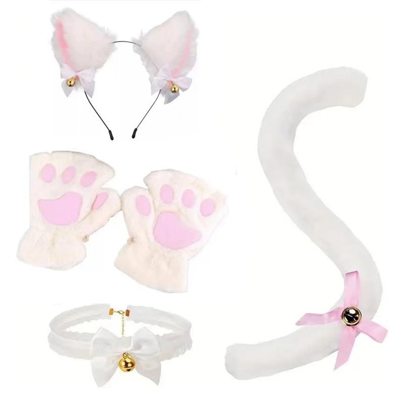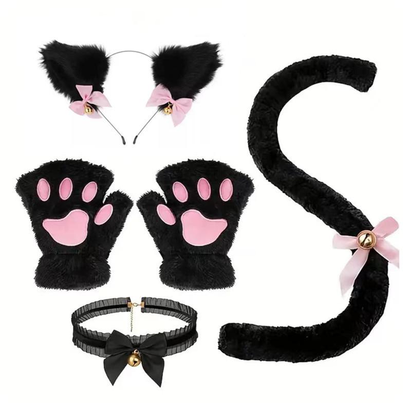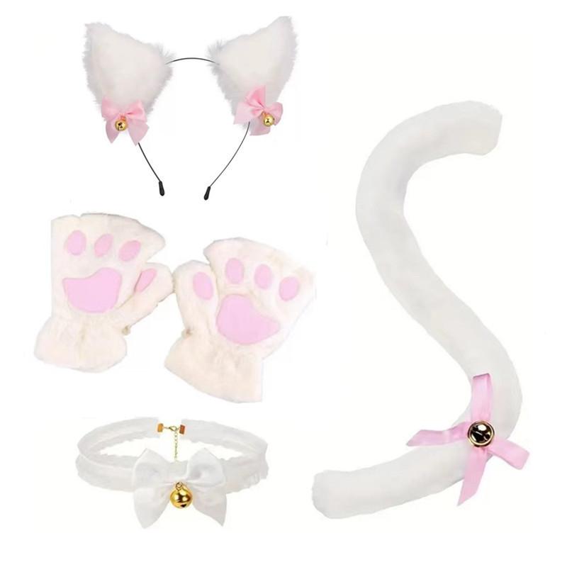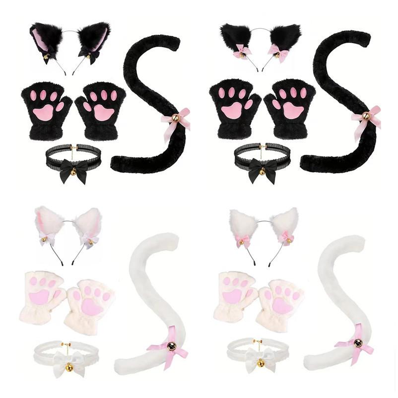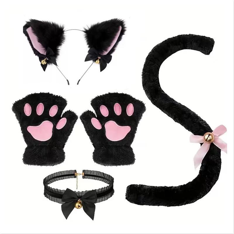 Traje de Halloween Accesorios Cos Orejas de Gato Collar Guantes Pata de Gato Cola Traje Festival Fiesta Atmósfera Atrezzo