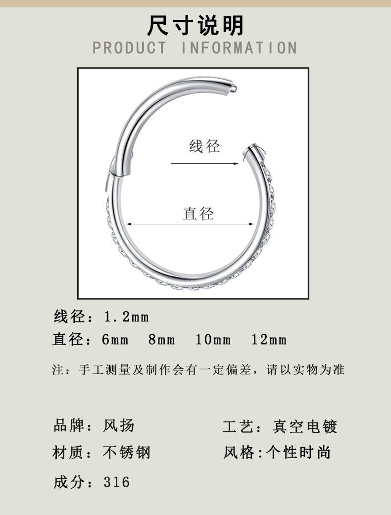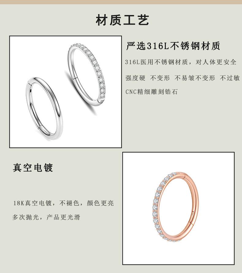 Aretes de Acero Inoxidable 316 Spot Transfronterizo Redondos con Zirconia Lateral Estilo Ins Joyería para Perforación Corporal Aretes