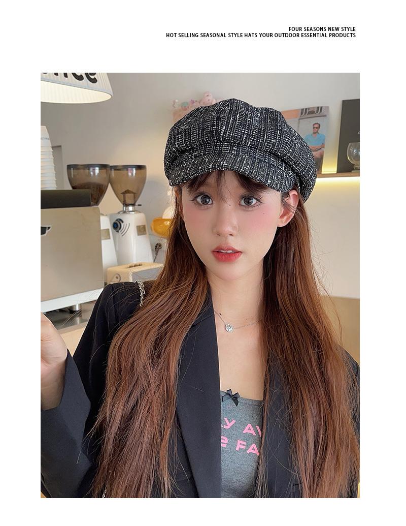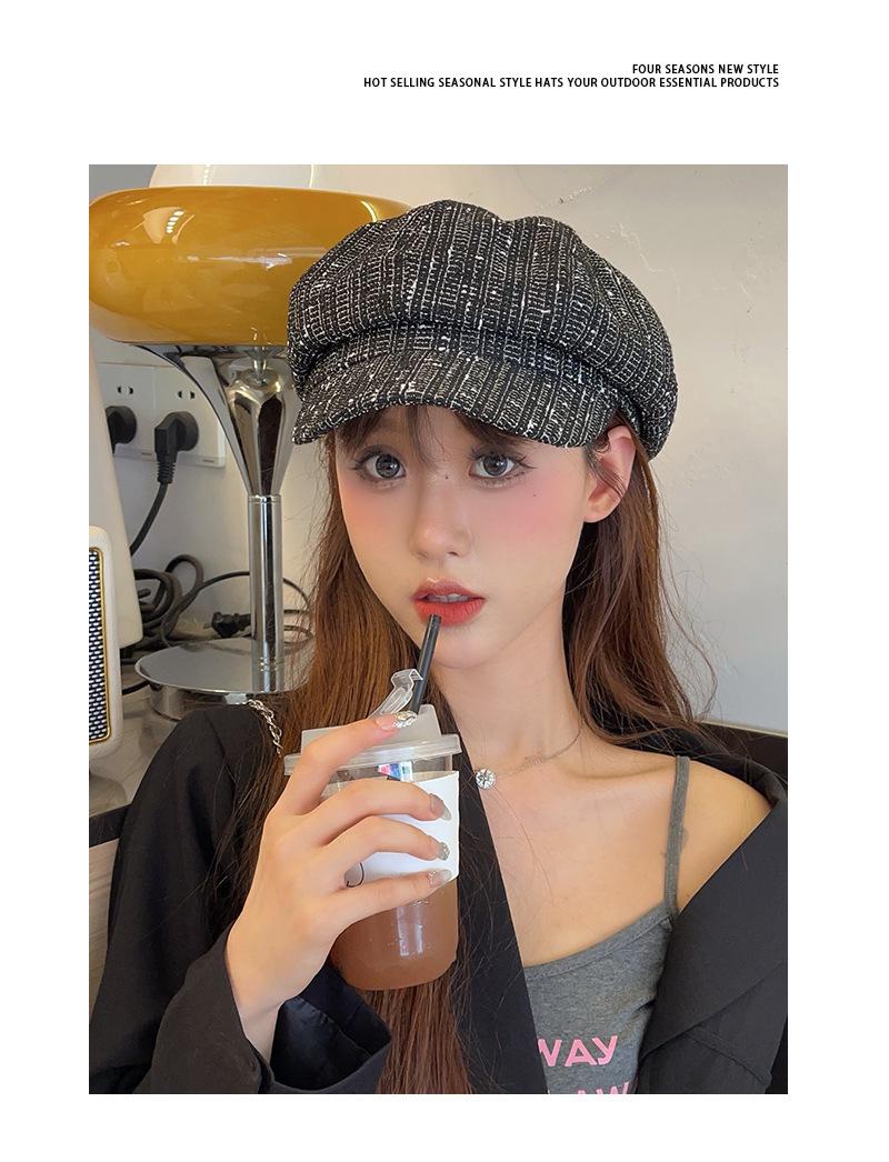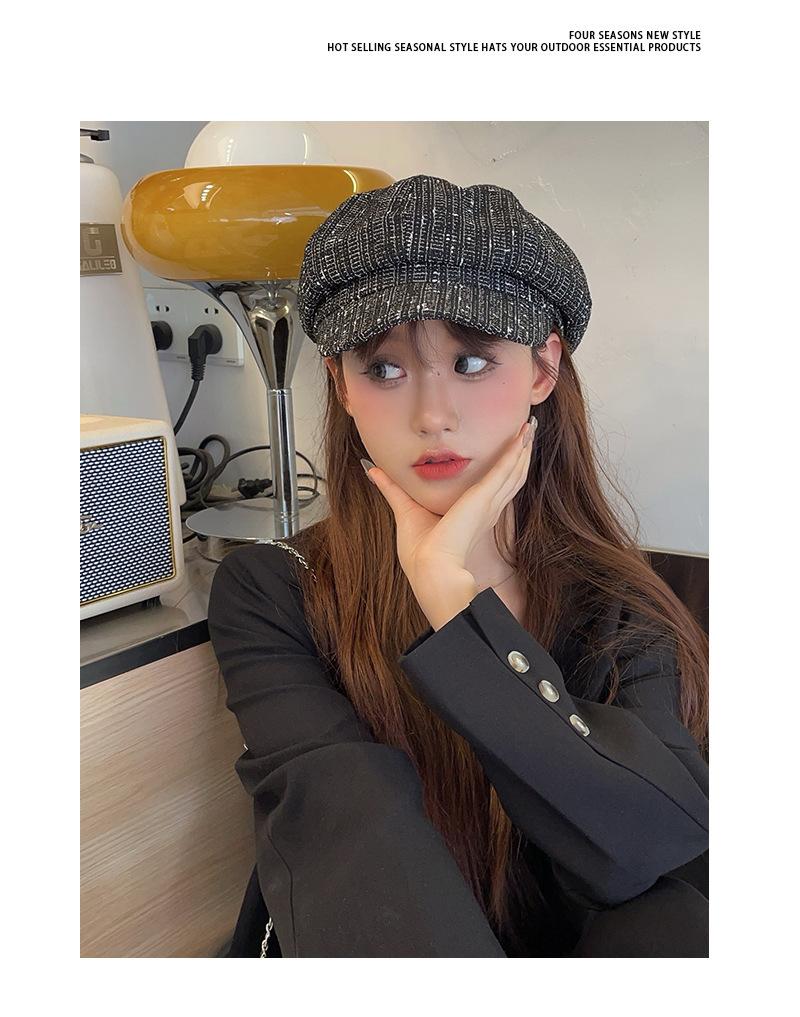 Sombrero octogonal estilo Chanel para mujer otoño e invierno retro combinable sombrero de pintor sombrero de repartidor de noticias moda británica ala corta sombrero versión coreana para mujer