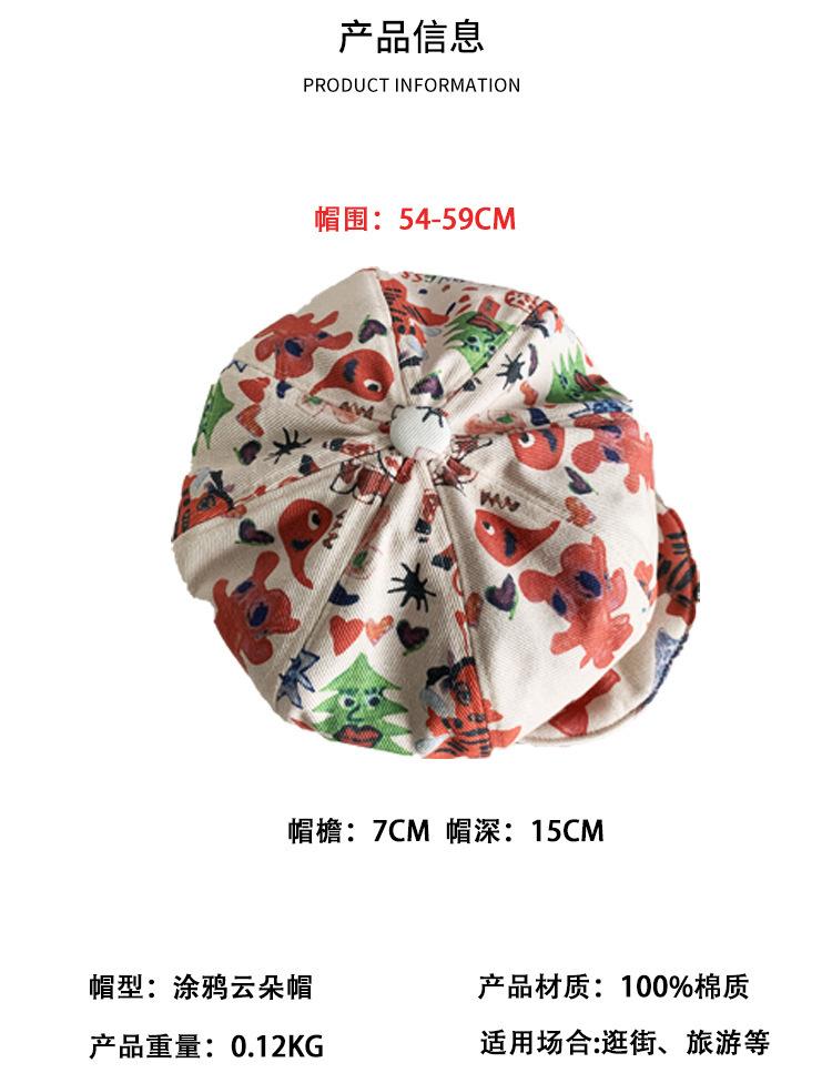Gorra de béisbol estilo japonés linda con graffiti, elegante, nicho, de alta gama, infantil, divertida, de ala corta, a la moda, versátil, boina para mujer